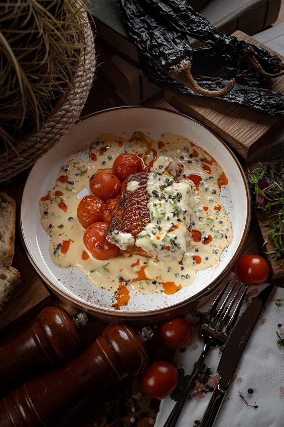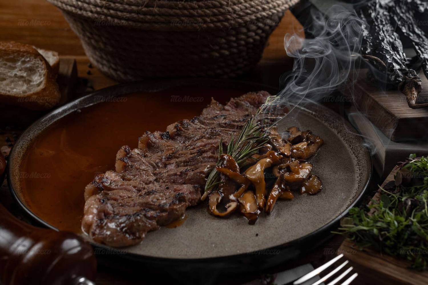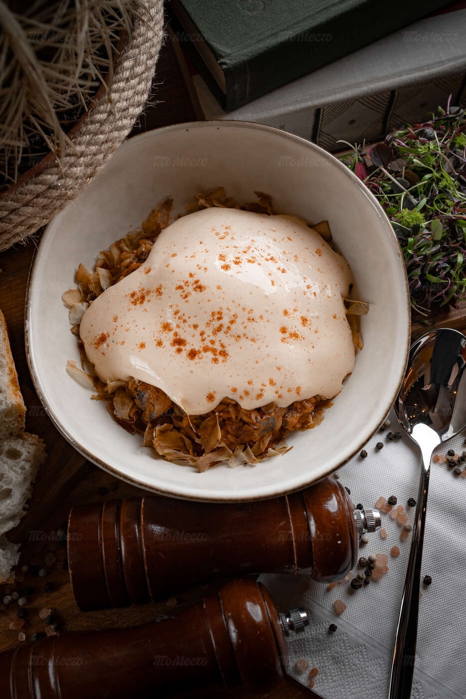 Еда и напитки. В качестве закуски можно попробовать тартар из говядины с соусом тоннато и халапеньо. Среди основных блюд выделяются нежные говяжьи щечки со сливочной перловкой и вишневым чипотле или солидный бургер с котлетой из мраморной говядины. Даже классический драник здесь подают с беконом и соусом из вяленых томатов. Бар предлагает напитки, которые удачно оттеняют пряные блюда: от освежающих лимонадов до крепких дистиллятов.