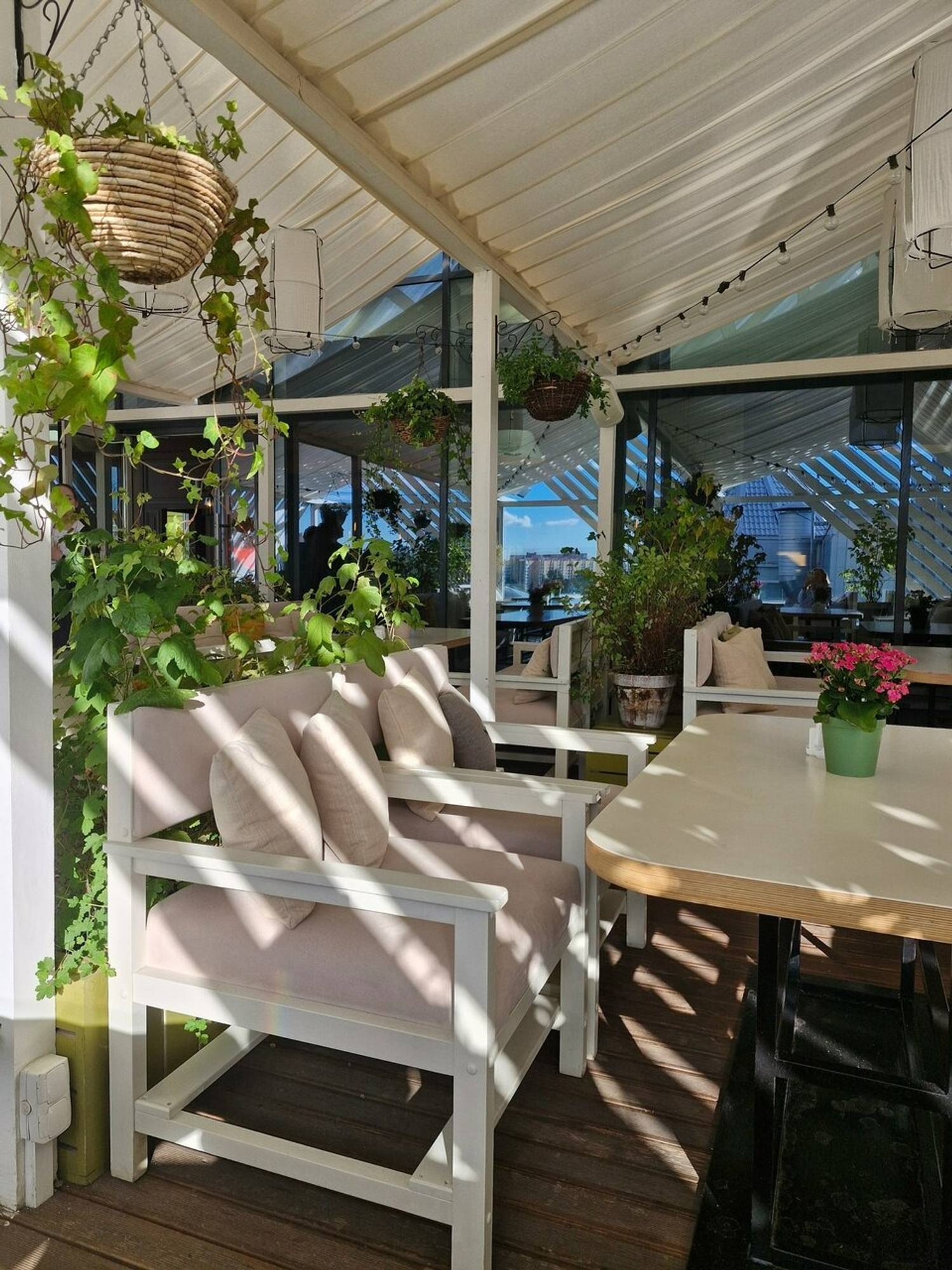 Еда и напитки. Меню от бренд-шефа Изо Дзандзавы с блюдами Кавказа: мини-хинкали с креветкой и судаком в соусе том ям, лобио Харкалия, хачапури Лазурад, чебурек с телятиной, харчо с бараниной. Также есть европейские позиции: пицца с морепродуктами и лососем и сливочным соусом, бефстроганов и паста помидорини.