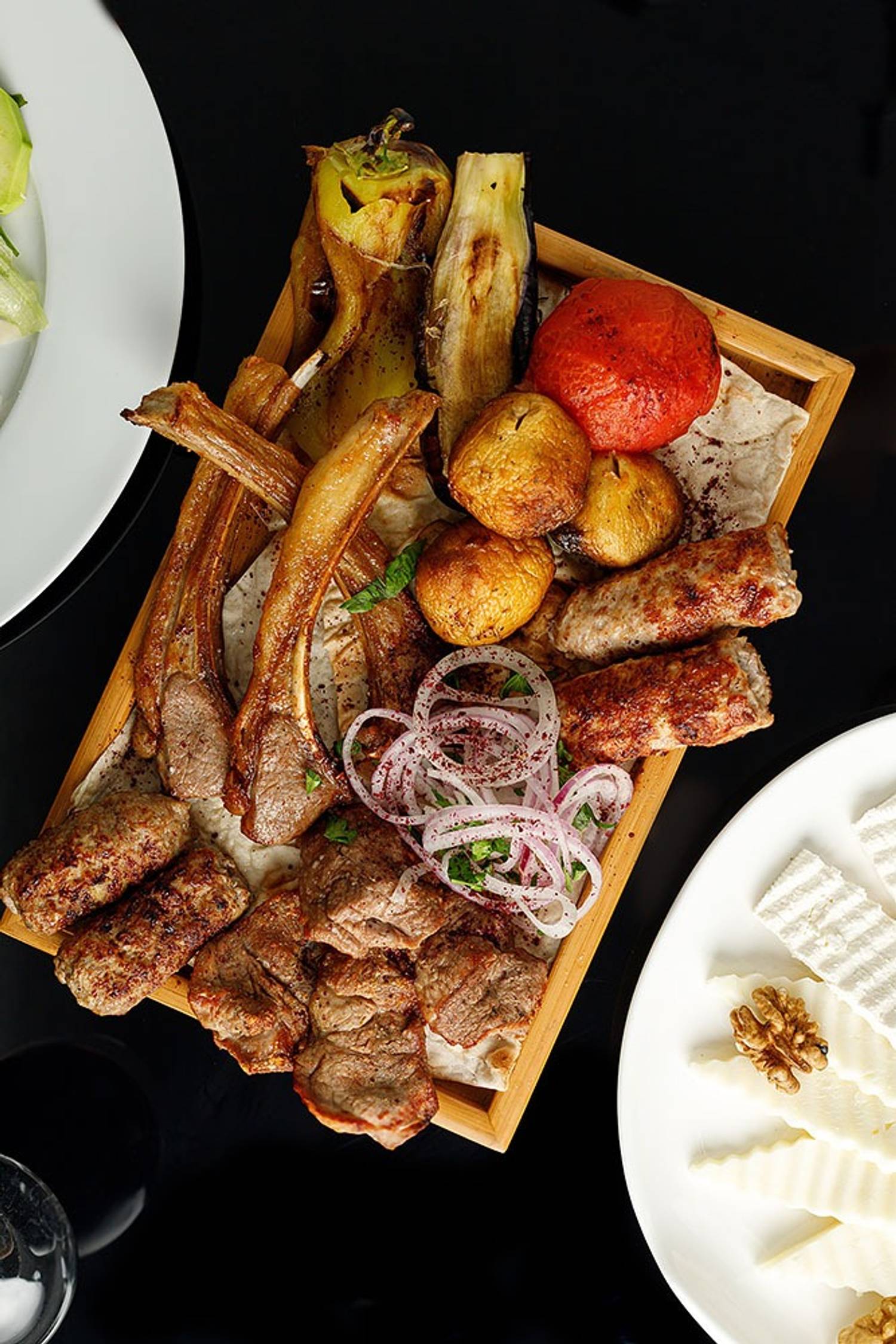 Еда и напитки. В меню лучшие восточные традиции. Здесь можно заказать ассорти кутабов с мясом и даже тыквой, суп из чечевицы по-турецки, манты с говядиной, осетинский пирог с картофелем и сыром. Особое место занимают блюда с мангала: люля-кебаб и шашлыки из различных видов мяса, которые готовят с использованием традиционных восточных специй. Для детей готовят оливье, куриный рулет и пиццу с ветчиной и грибами. Здесь собрали широкую карту вин с разных уголков страны, а также крепкий алкоголь.
