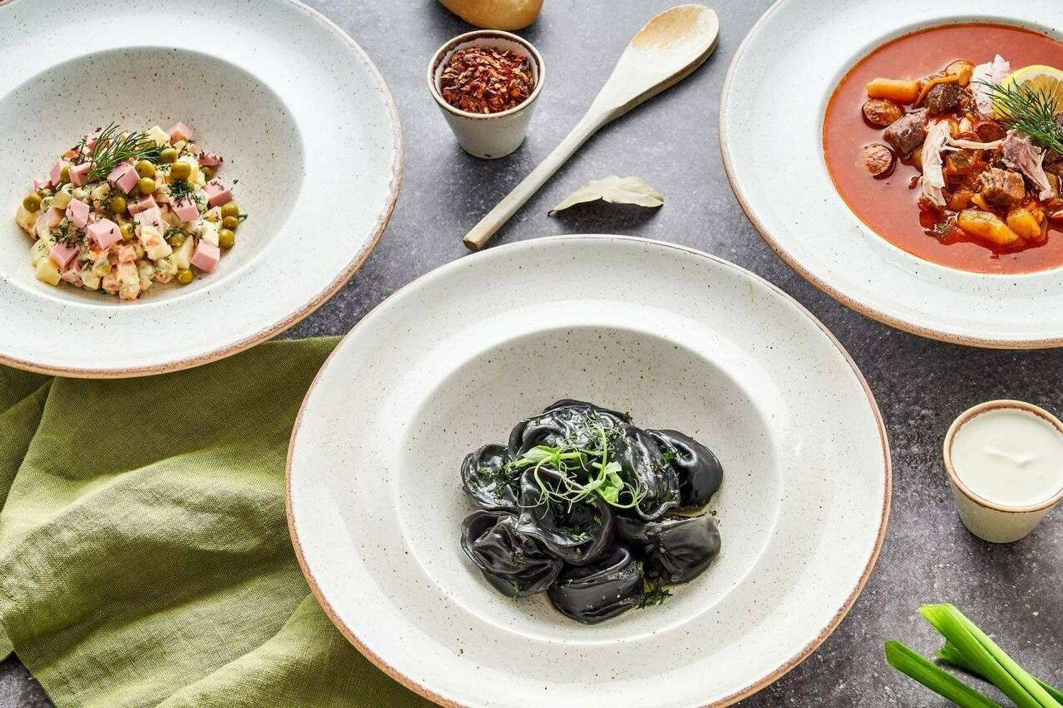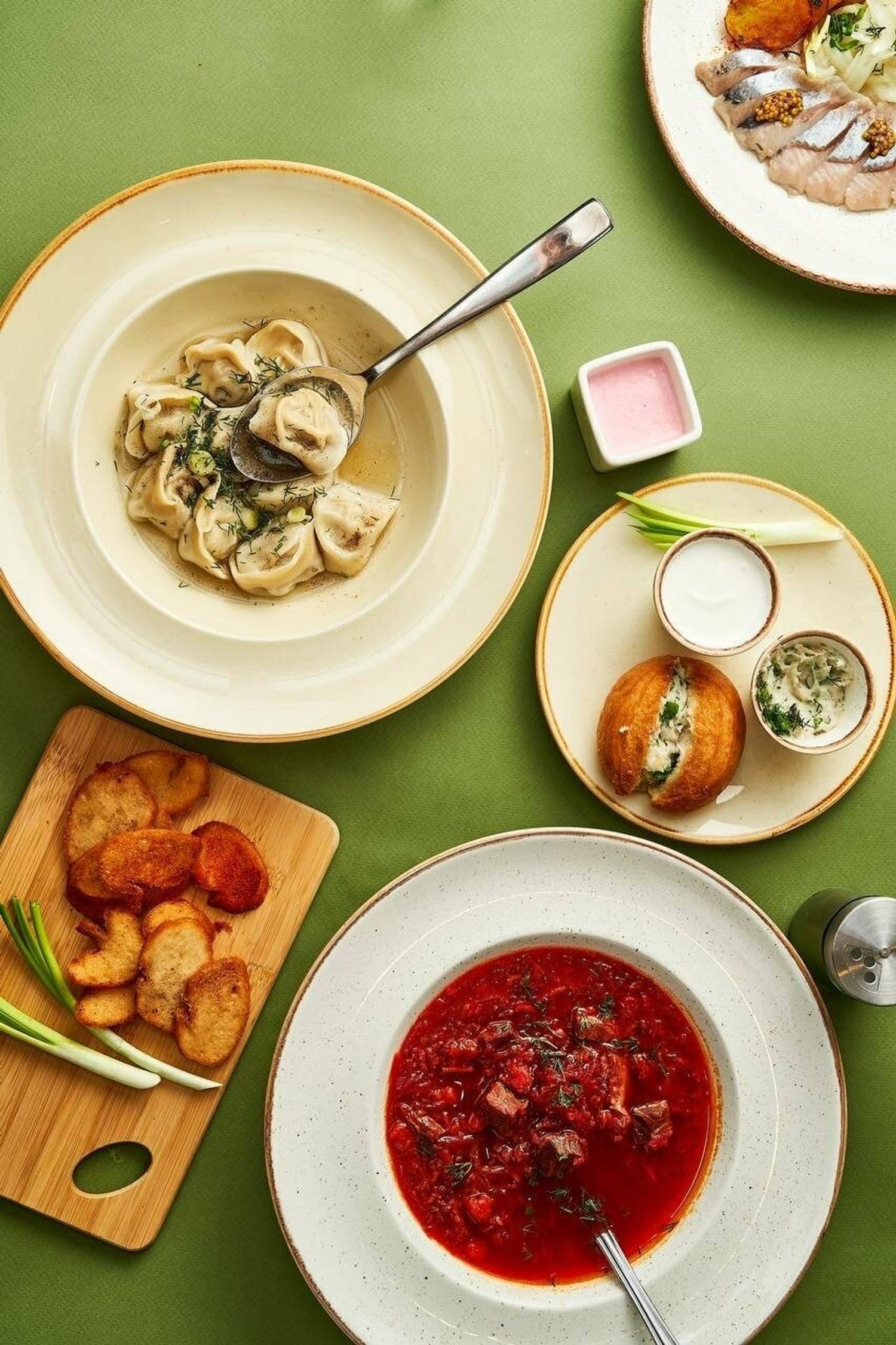 Еда и напитки. Основу меню составляют пельмени, которые отличаются не только начинкой, но и цветом теста, что придает блюду еще более аппетитный вид. Ассортимент охватывает классические мясные начинки из свинины и говядины, а также оригинальные варианты, например, с щукой или брынзой и зеленью. Также готовят и вареники с с квашеной капустой, вишней. На обед можно заказать борщ со сметаной и смальцем, оливье с цыпленком и куриный шницель с грибным соусом. В качестве напитков предлагают морсы, компоты, чай и лимонады, которые отлично дополняют сытное блюдо.