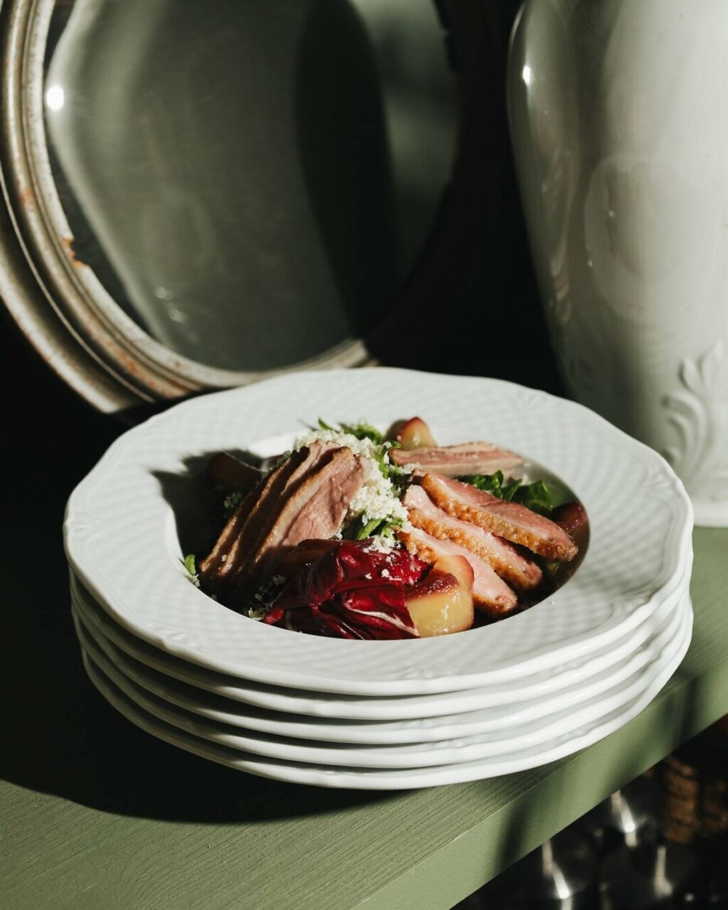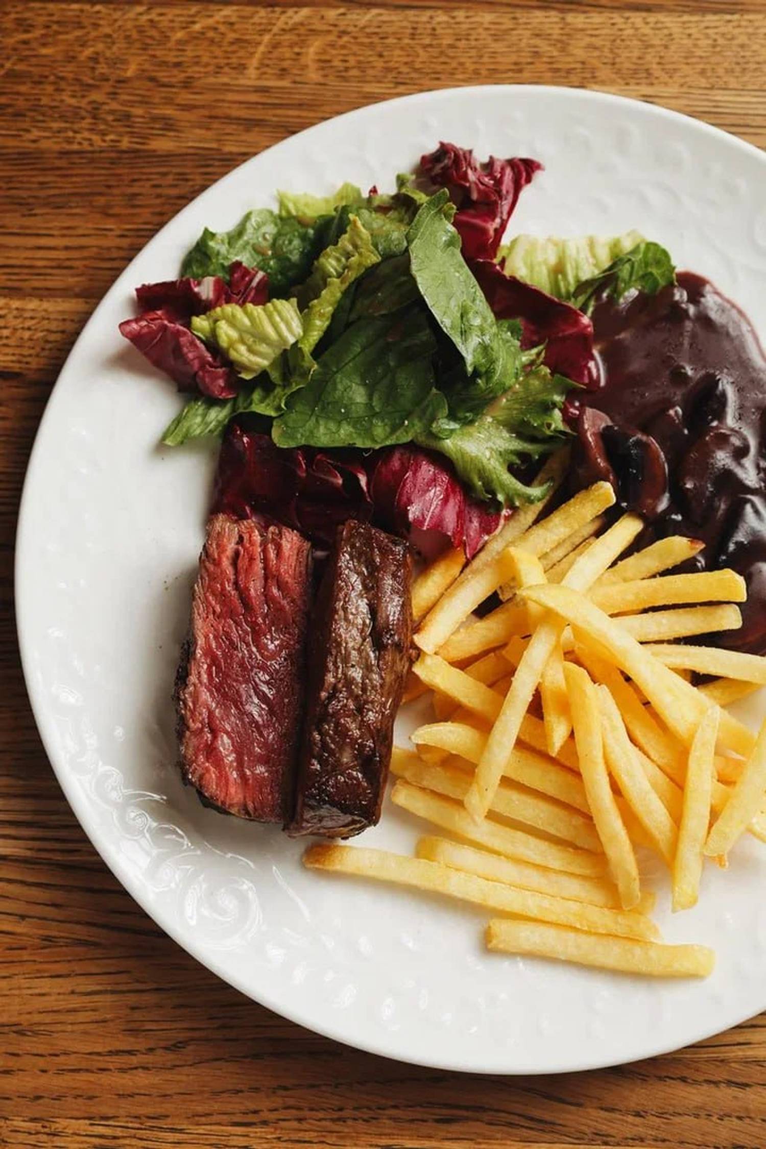 Еда и напитки. Меню строится на классике французской кухни, где важную роль играют соусы и техника приготовления. Среди блюд выделяются нисуаз, салат с уткой и грушей в вине, треска с трюфельным соусом и беф бургиньон. По утрам здесь подают завтраки: от французского омлета с крабом и тартина с икрой до сытных каш и круассанов. Вино, как и музыкальная программа, подобрано с большим вниманием к разнообразию и качеству.