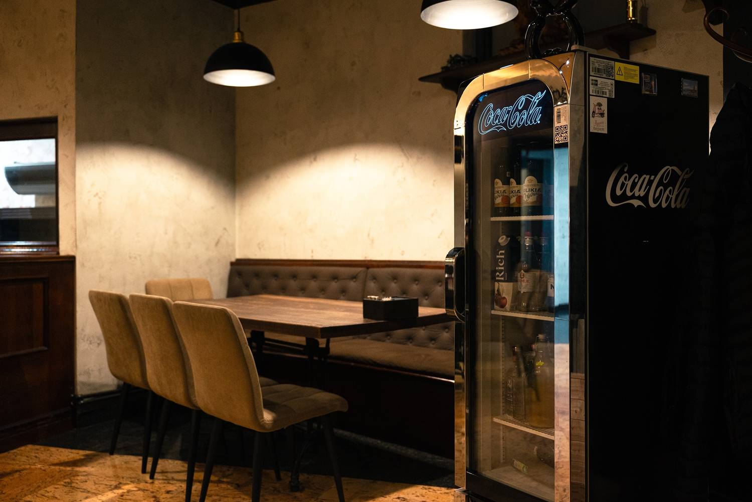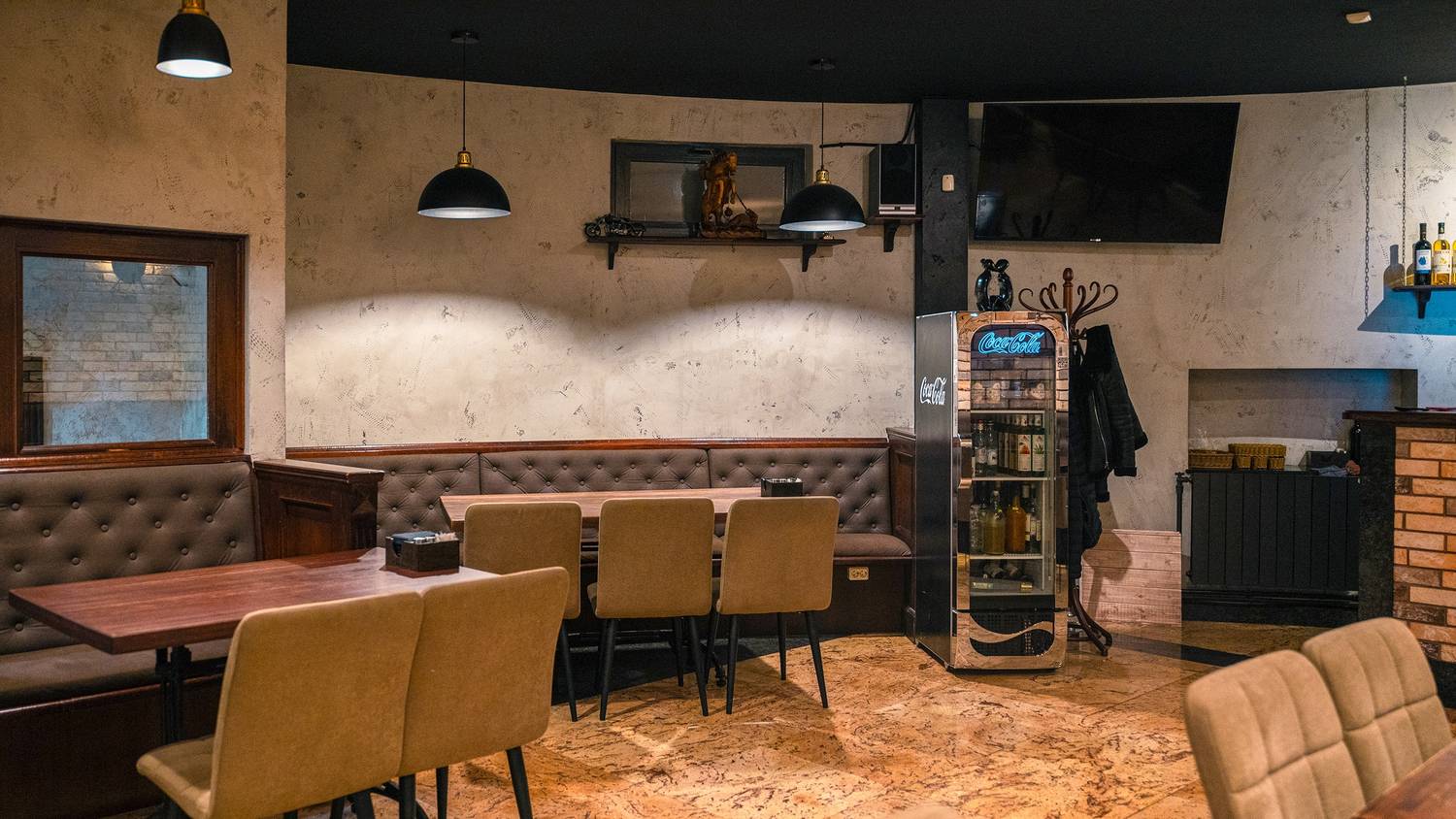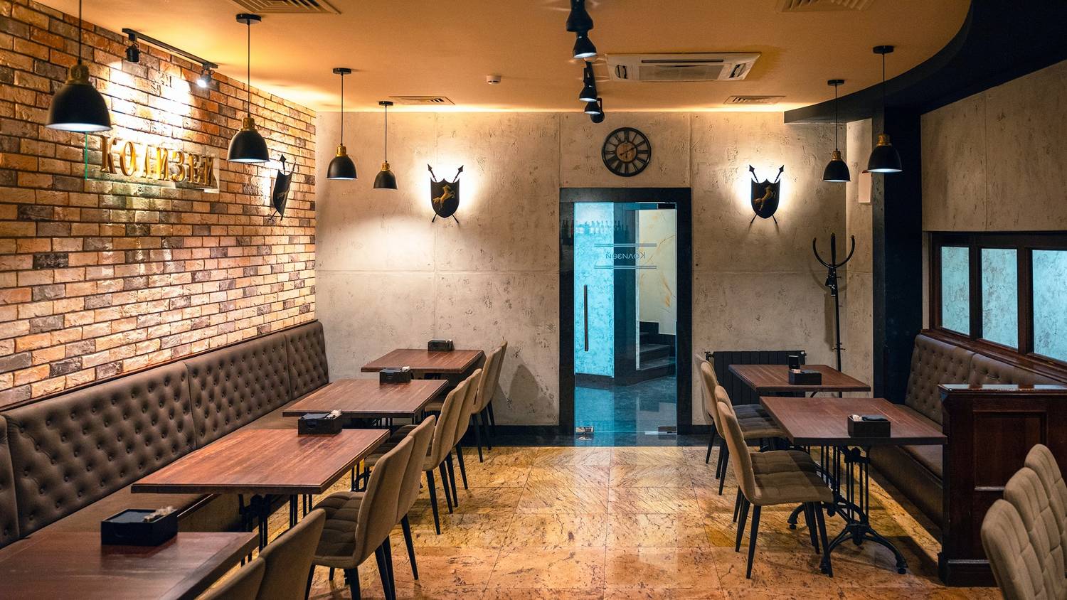 Атмосфера. В ресторане царит дух теплого и шумного застолья, где каждый гость чувствует себя желанным. Пространство разделено на два зала: светлый и торжественный основной зал с колоннами и настенной росписью, имитирующей настоящий колизей, и более камерный зал для семейных праздников. Отдельно стоящее здание, современное звуковое и световое оборудование, а также бесплатное караоке делают это место идеальным для банкетов и шумных мероприятий.