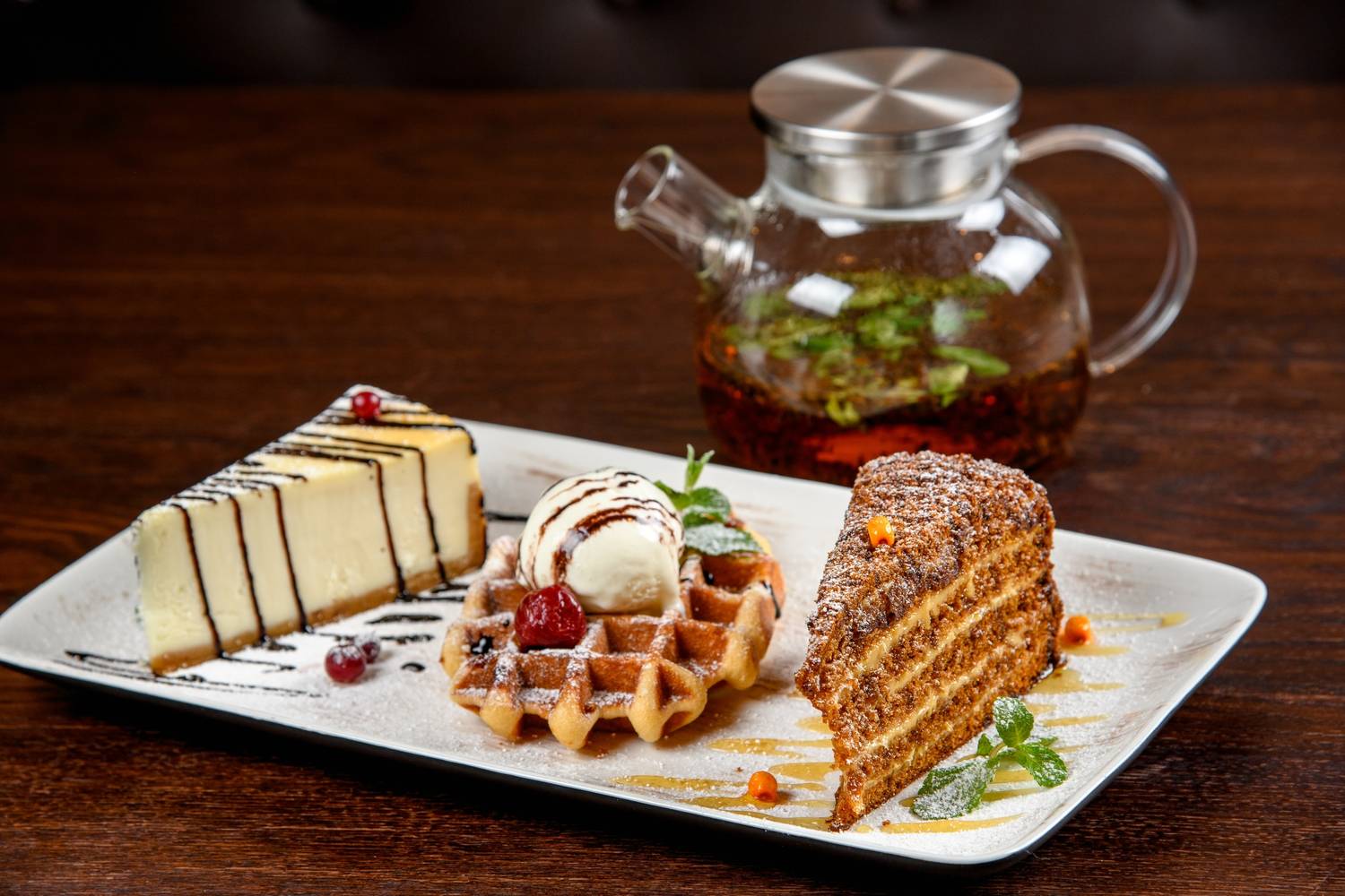 Еда и напитки. Меню делится на два направления. Кавказскую линию представляют хачапури на мангале, долма, чахохбили и разнообразные шашлыки из баранины, свинины и курицы. Европейский раздел собрал в себе стейки, пасту, пиццу и супы вроде солянки или грибного крем-супа. Особое внимание уделяется напиткам: в барной карте собраны армянские вина из граната и айвы, коньяки завода «Иджеван» и крепкие настойки.
