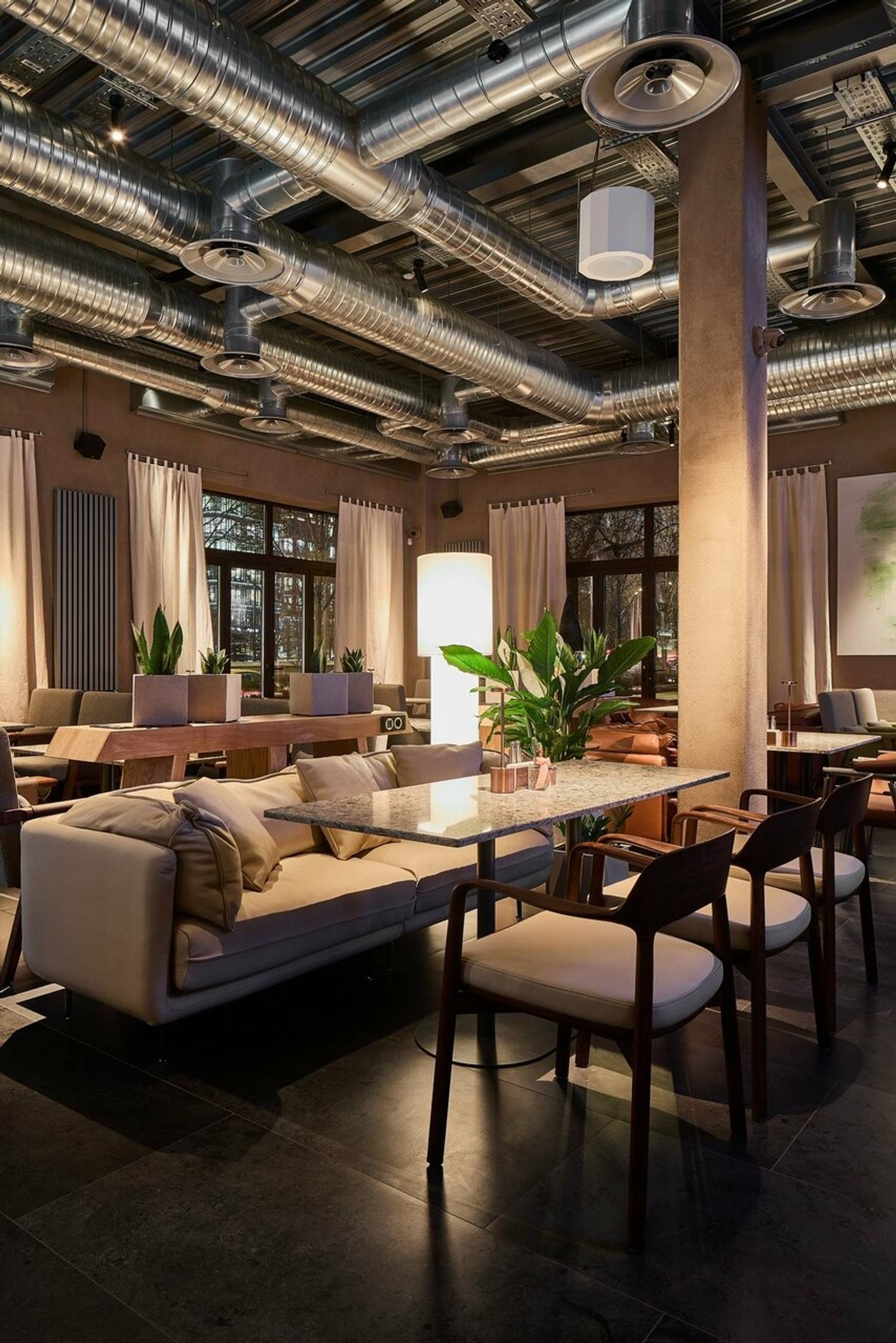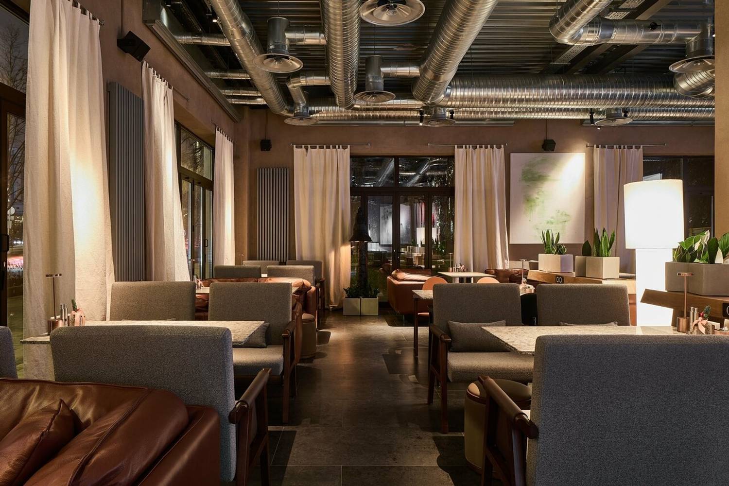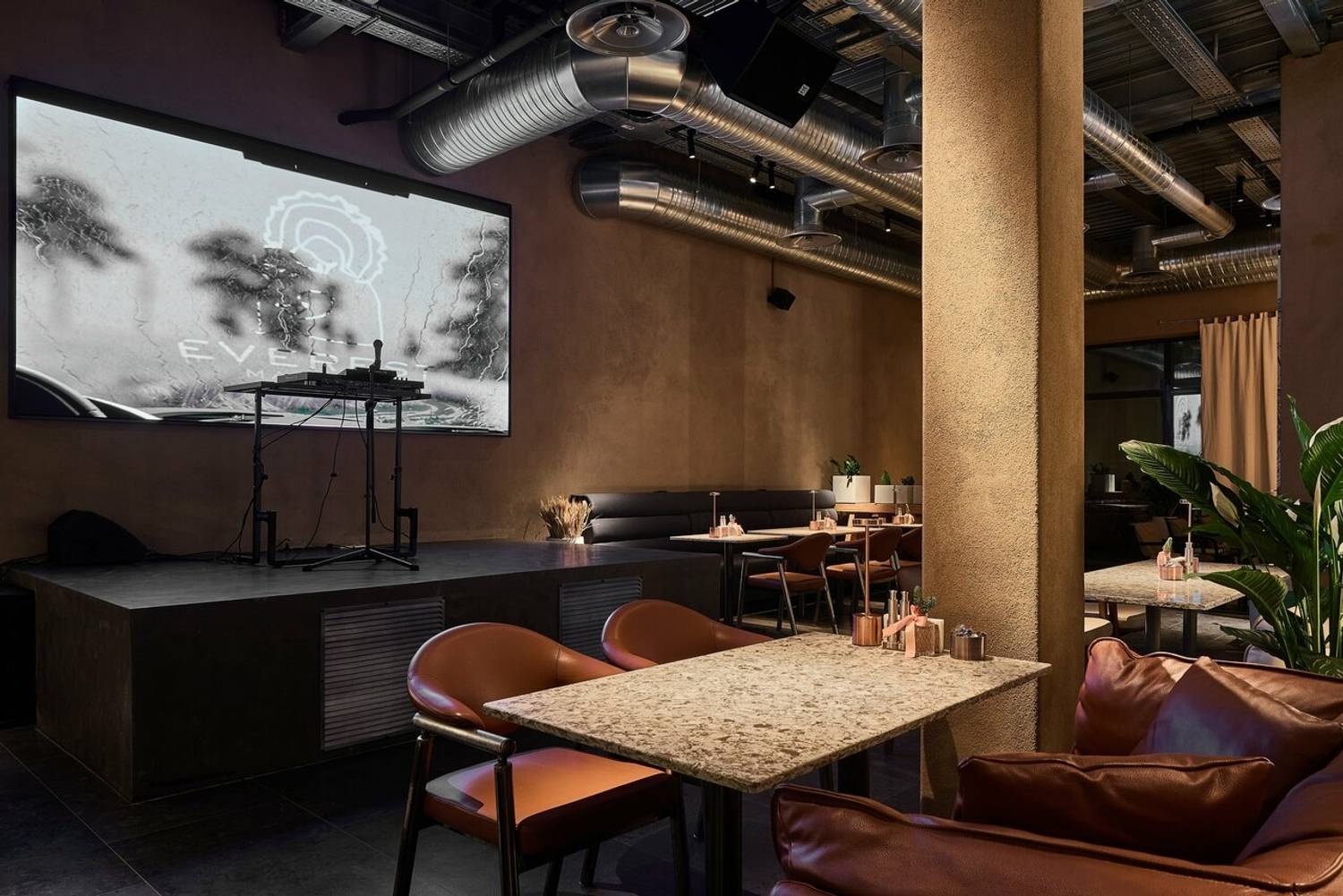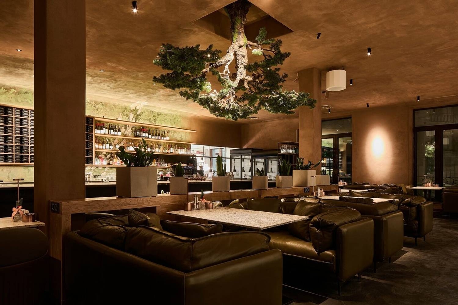 Атмосфера. Пространство погружает в атмосферу статусного, но расслабленного отдыха, где детали интерьера отсылают к мощи природы и истории. Первый этаж, стилизованный под трактир, предназначен для всех гостей, а на втором этаже расположены камерные залы с каминами и VIP-комнаты с отдельными входами. Центральным элементом является живое дерево, растущее из потолка. Ароматный кальян, атмосферная музыка и киновечера создают идеальную среду для того, чтобы отдохнуть от городской суеты.