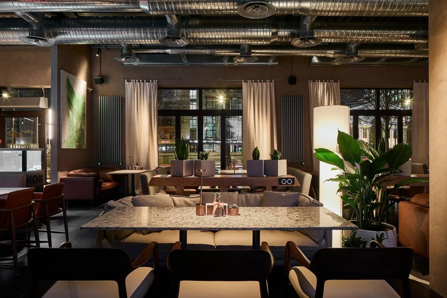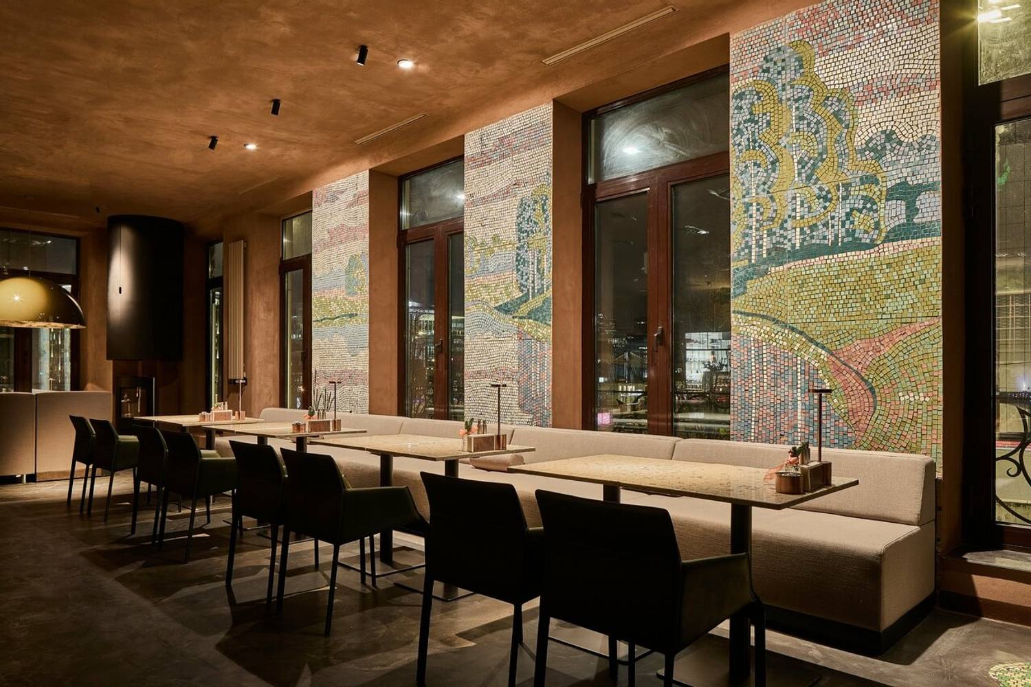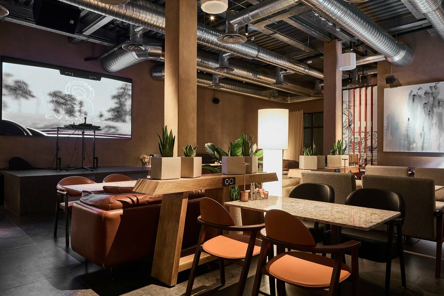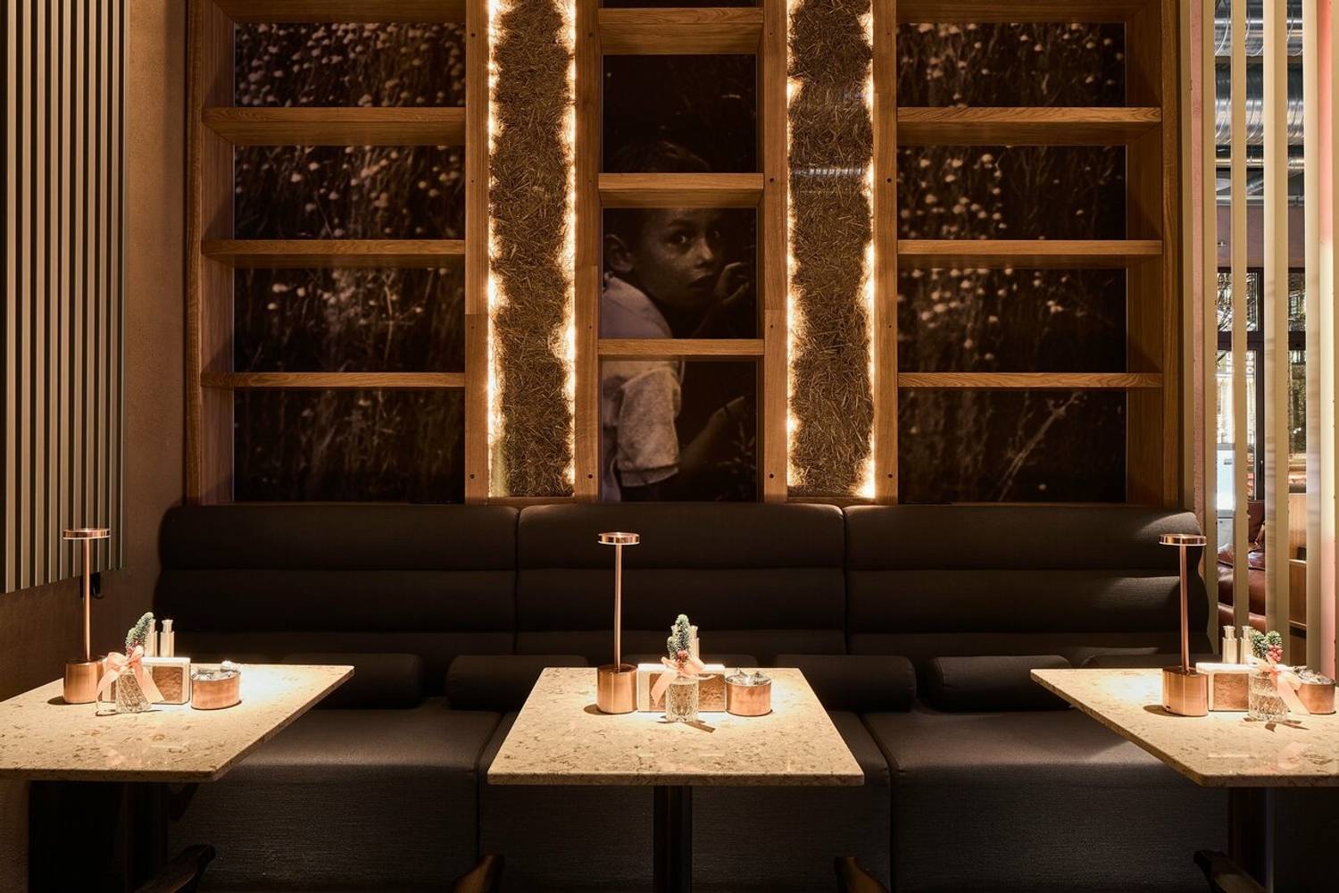 Атмосфера. Пространство погружает в атмосферу статусного, но расслабленного отдыха, где детали интерьера отсылают к мощи природы и истории. Первый этаж, стилизованный под трактир, предназначен для всех гостей, а на втором этаже расположены камерные залы с каминами и VIP-комнаты с отдельными входами. Центральным элементом является живое дерево, растущее из потолка. Ароматный кальян, атмосферная музыка и киновечера создают идеальную среду для того, чтобы отдохнуть от городской суеты.