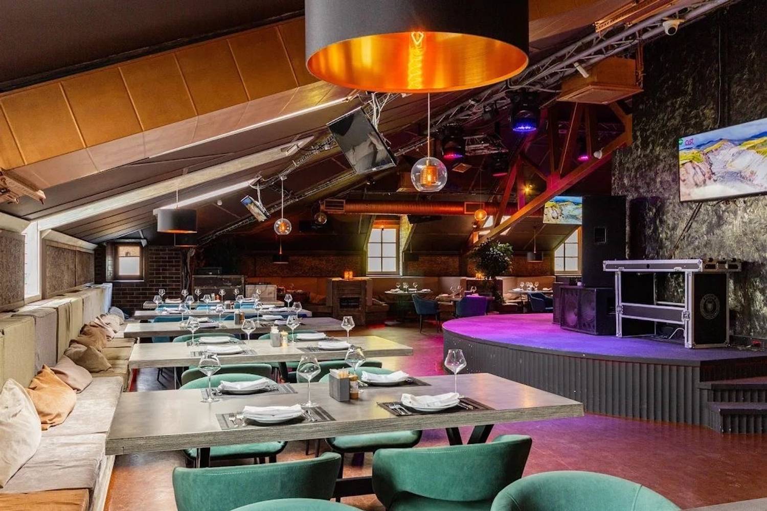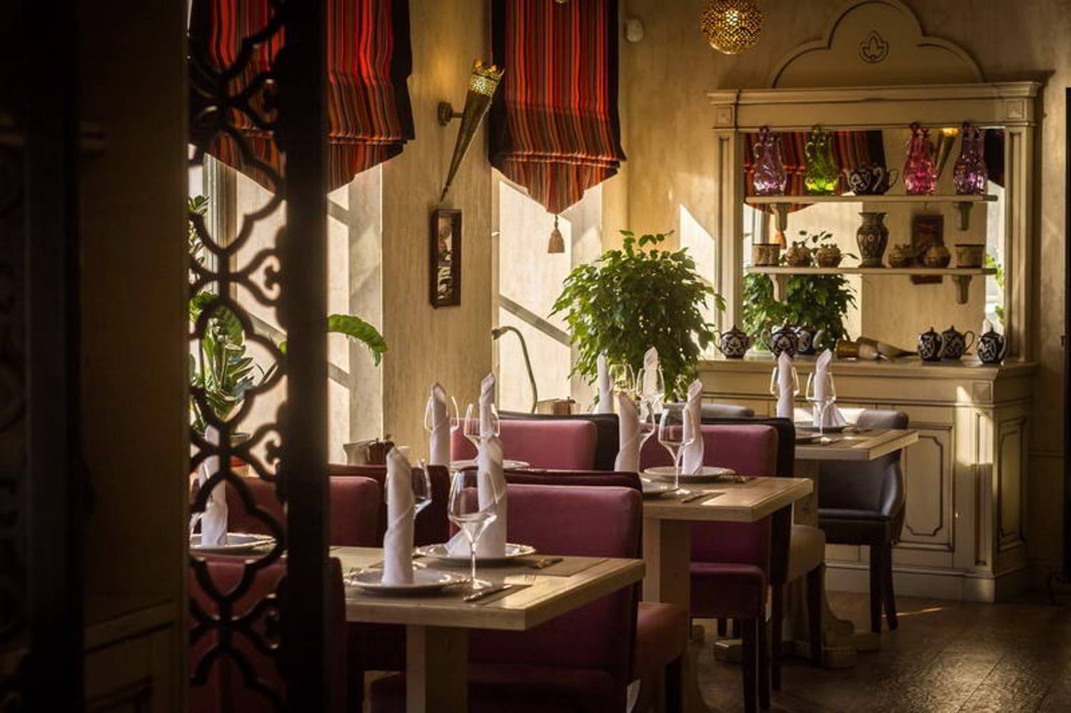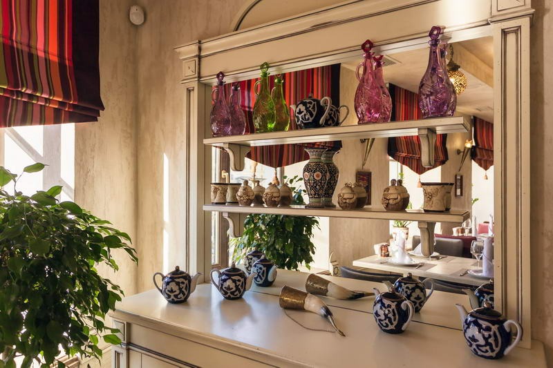 Атмосфера. На первом этаже царит восточный колорит с пестрыми коврами, ажурными коваными перегородками и росписями с горными пейзажами. Второй этаж — это светлый банкетный зал в классическом стиле с лепниной, витыми люстрами и массивными портьерами. На третьем гостей ждет современный лофт с караоке-зоной и VIP-комнатой. Для детей работает игровая с аниматорами.