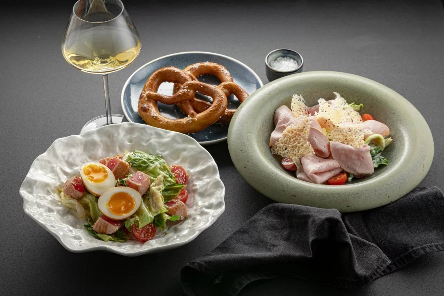 Еда и напитки. Меню строится вокруг немецких мотивов и блюд на огне: от свиной рульки и баварских колбасок до стейков, шашлыка и устриц. Также представлены пицца, бургеры и морепродукты. Отдельного внимания заслуживает барная карта, включающая около сотни позиций пива, подборку вин, шнапсы и авторские коктейли. Команда сомелье помогает подобрать напиток к блюду. Ежедневно, кроме выходных, действует специальное меню завтраков.