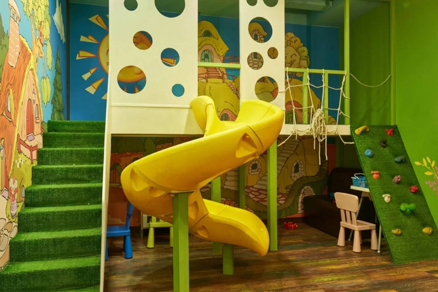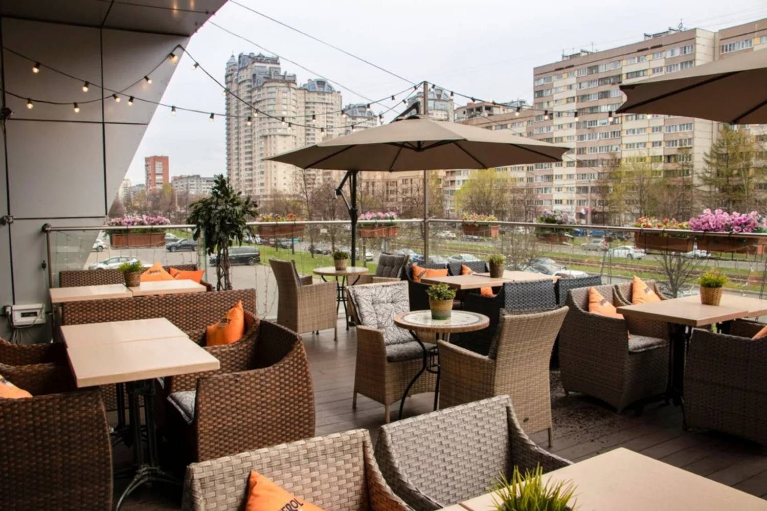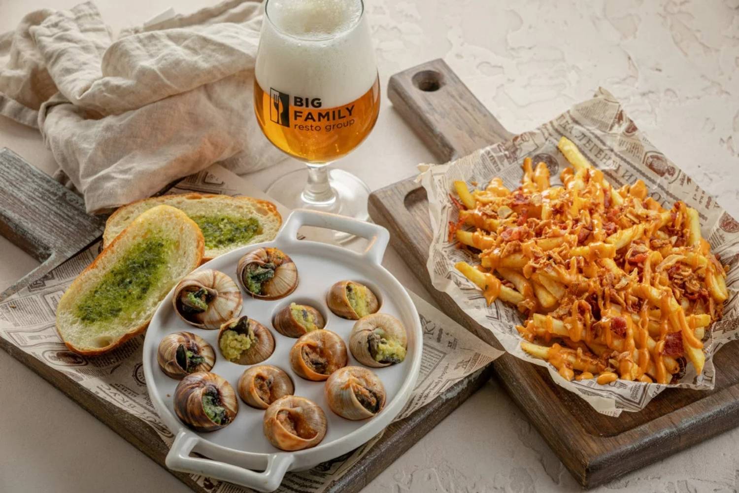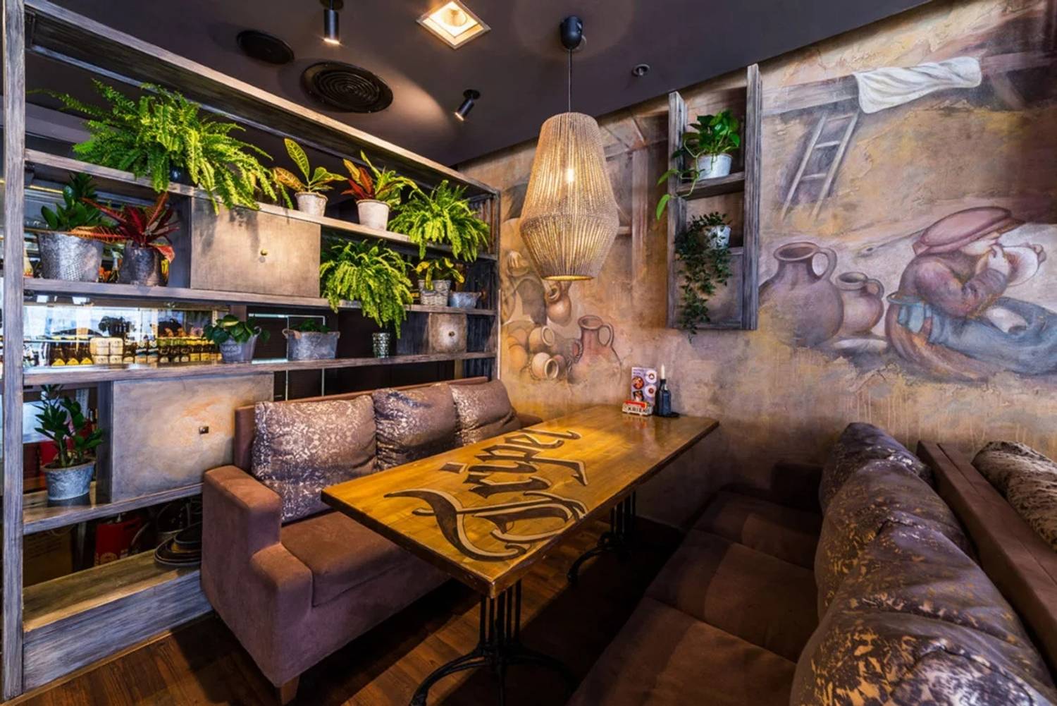 Атмосфера. Пространство создает ощущение современности и уюта. Интерьер в стиле лофт со светло-серой и бежевой палитрой, деревянными столами, мягкими диванами, живыми растениями и декоративными элементами в духе художника Брейгеля настраивает на спокойный лад. Двухуровневый зал с контактной барной стойкой, плазменными панелями для трансляций и летней террасой подходит для разных сценариев: от семейного обеда в детской комнате с няней до банкетов или встречи друзей за бокалом крафтового пива.