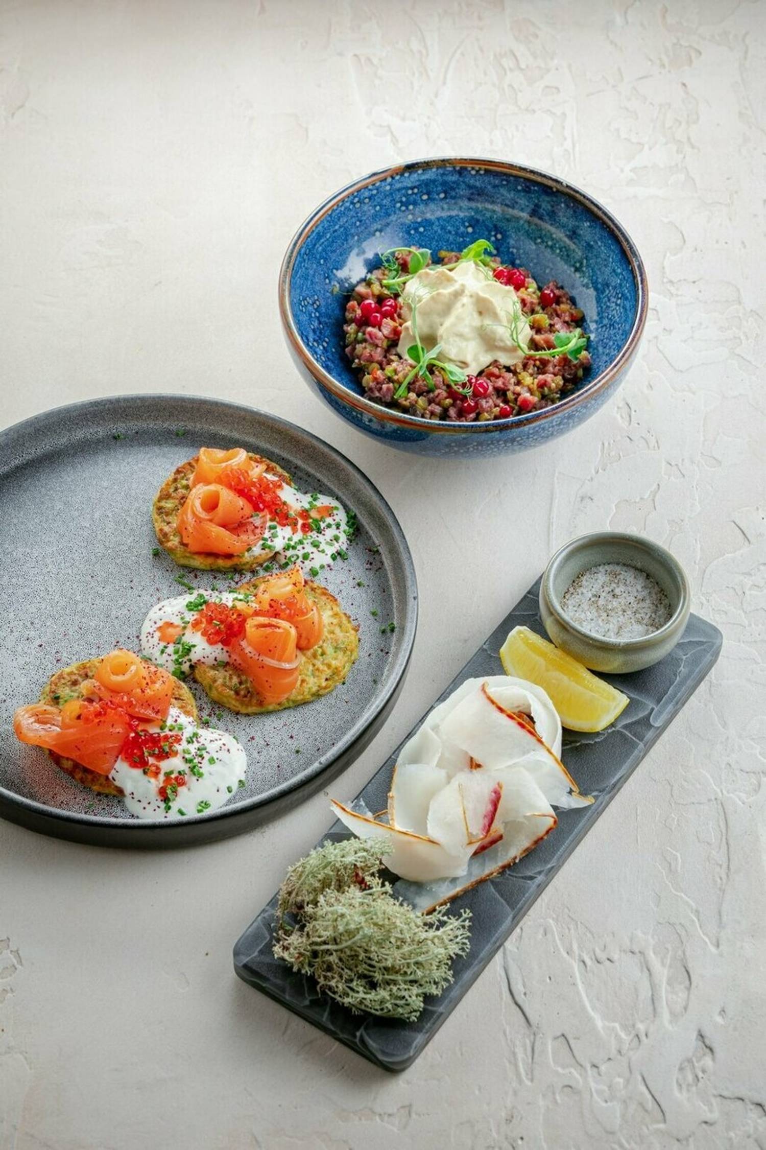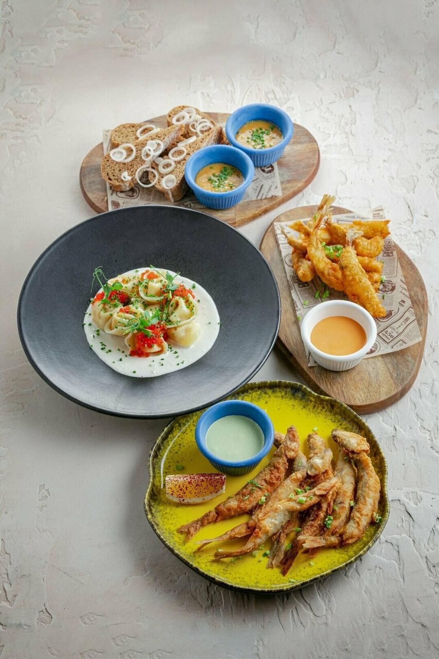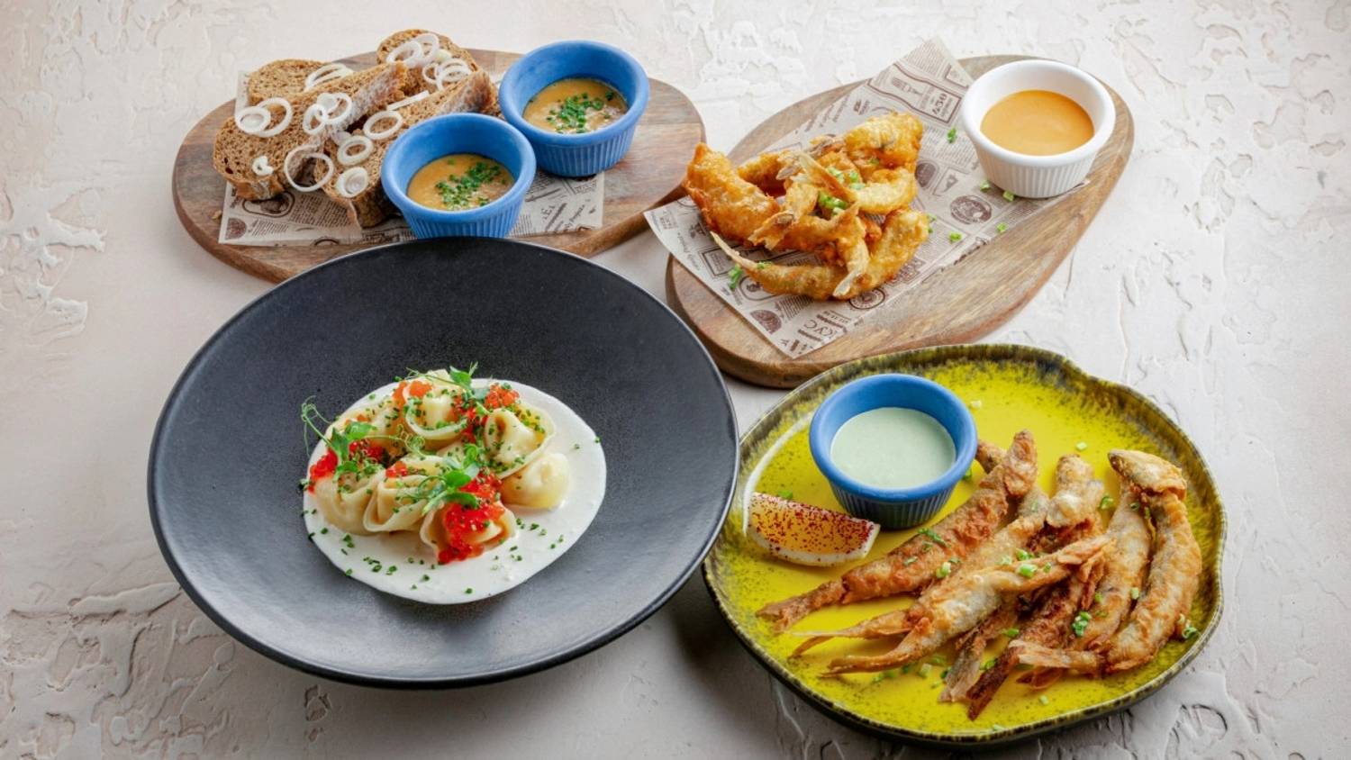 Еда и напитки. Меню представляет собой авторскую интерпретацию русской классики: здесь готовят домашние пельмени и вареники, голубцы, котлеты, уху из трески и жареную корюшку, используя исключительно фермерские продукты. Круглый год здесь можно попробовать блюда из корюшки: классическую жареную с соусом из сметаны и хрена, икру с тостами. Из закусок предлагают джерки, три вида домашнего сала, сырно-картофельные драники с форелью и икрой. На десерт — орешки со сгущенкой, ром-баба со сливочным кремом и свежими ягодами, штрудель с ревенем и ванильным мороженым. Пивная карта включает около 100 сортов крафтового пива из России, Европы и Великобритании: от охмеленных IPA до фруктовых элей и плотных портеров. Дополняют выбор вина по бокалам, классические и авторские коктейли.