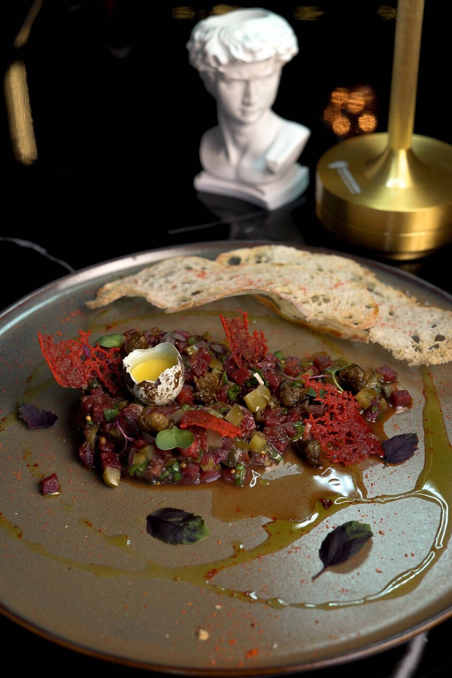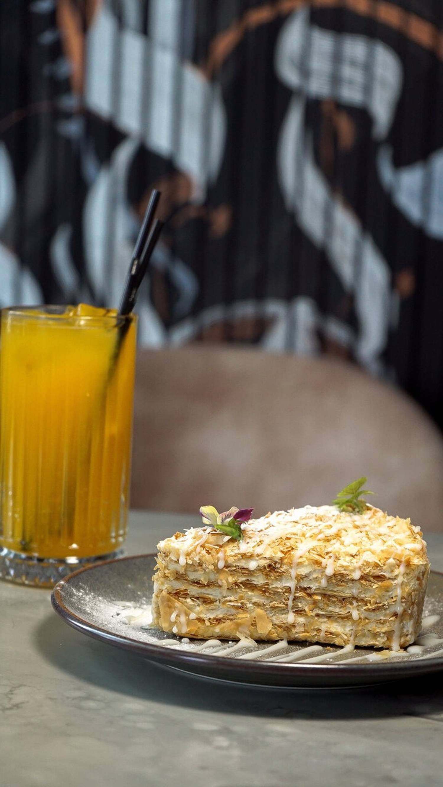 Еда и напитки. Основной акцент сделан на кальянной карте: здесь используют качественные табаки и современные смеси, предлагая широкий выбор вкусов от классических до экзотических. Параллельно работает бар с разнообразными напитками, которые можно заказать в дополнение к кальяну. Меню еды представлено позициями, которые хорошо сочетаются с форматом лаунжа и не отвлекают от основного процесса отдыха. Из закусок тут подают креветки в белом вине с чесноком, брускетту с лесными грибами, тартар из телятины и запеченные мидии. На основное готовят тортильони с креветками и вялеными томатами и вариант с курицей, черри и творожным сыром, поке с лососем. Есть и стритфуд позиции вроде бургеров: с говядиной, курицей и фирменный с картофельными дольками. Отдельное внимание стоит уделить гриль-разделу, в котором собрали филе индейки с рисом, филе миньон с овощами и ребра BBQ. На десерт предлагают классику в виде тирамису, наполеона и шоколадного фондана.