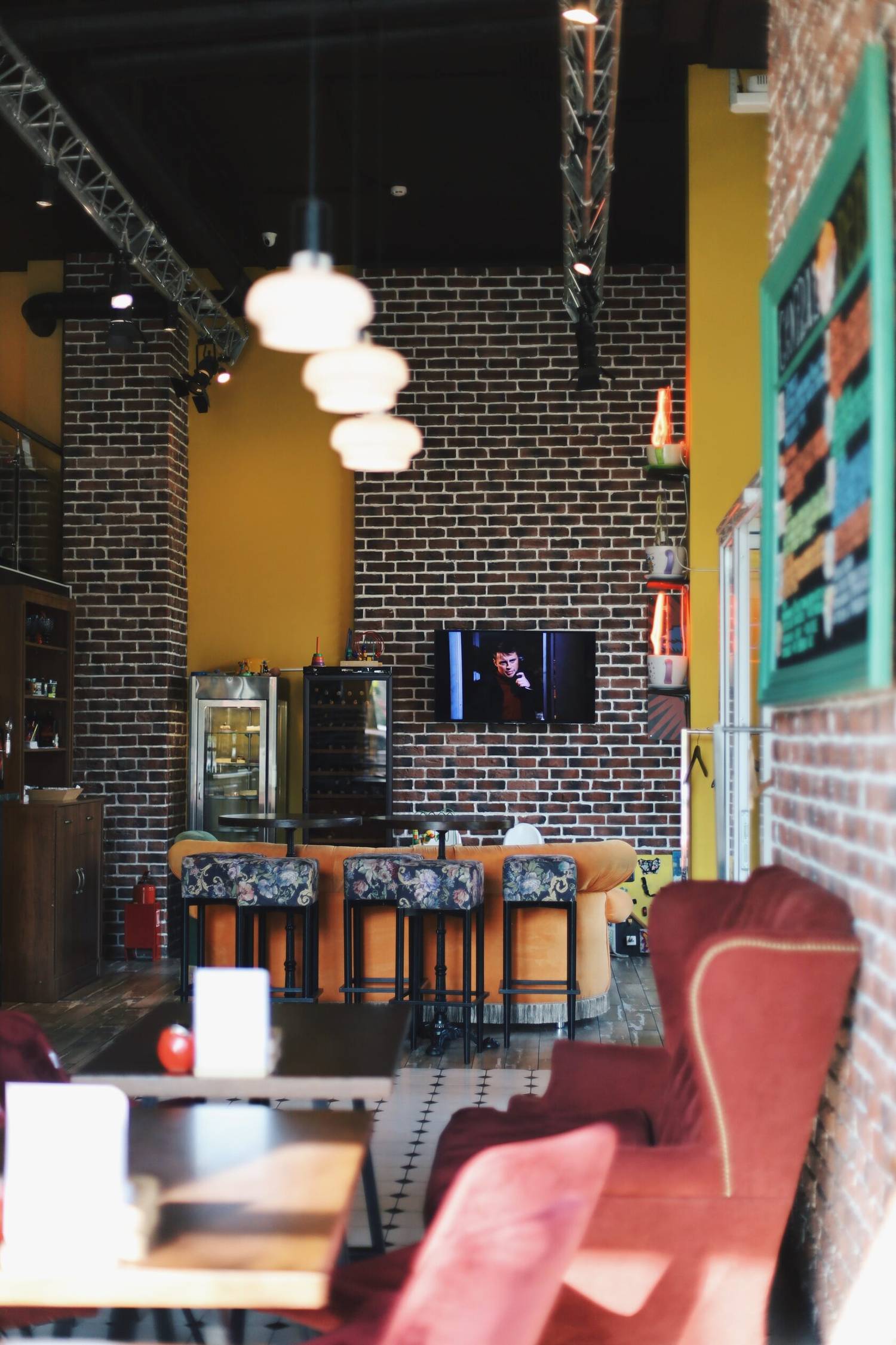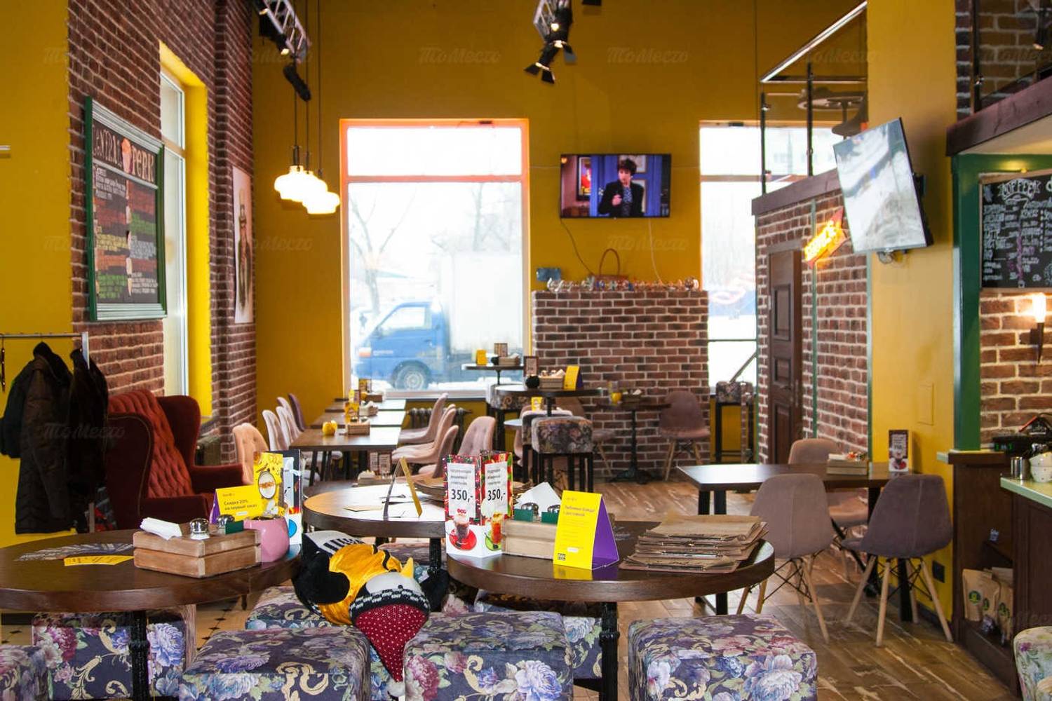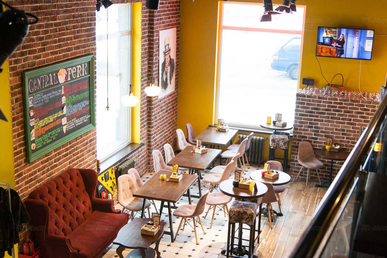 Атмосфера. Интерьер с узнаваемым оранжевым диваном, кирпичной кладкой и деталями, знакомыми каждому фанату шоу: картонные фигуры героев, статуя собаки. пингвины. Здесь можно почувствовать себя частью компании Росс и Рейчел, главное — сесть за столиком с видом на зал в стиле из ключевых сцен сериала.