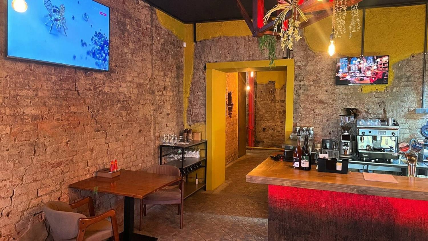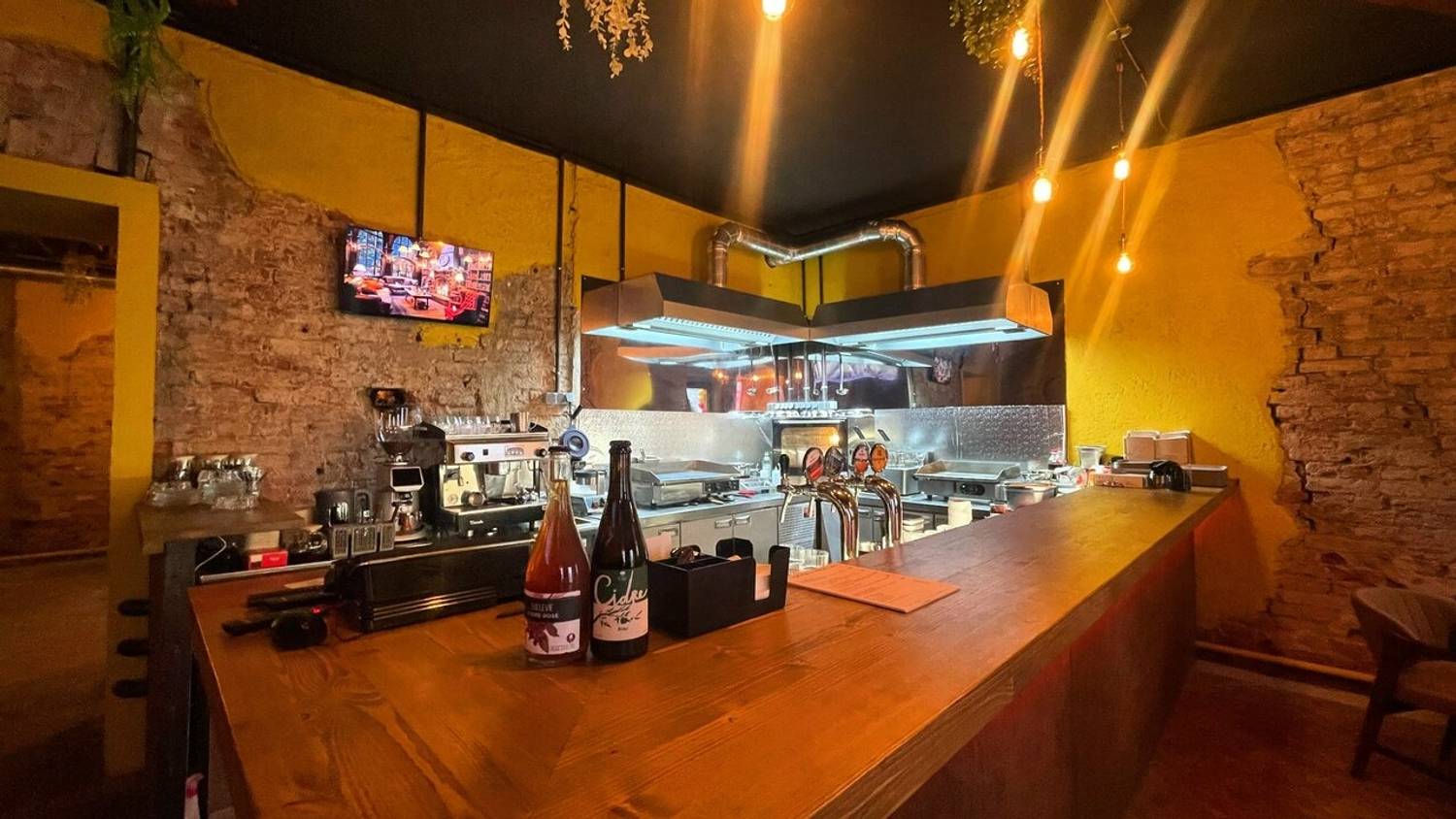 Атмосфера. Бар и кухня объединены в единое целое, и это не просто дизайнерский ход, а смысловой центр. Гости сидят так, что могут наблюдать за процессом приготовления, задавать вопросы, участвовать в диалоге. Никаких глухих стен между тем, кто готовит, и тем, кто ест. Слово «мосты» в названии — не метафора, а принцип: соединять кухни, культуры, вкусы и людей. Здесь будет шумно, живо и открыто — как и положено хорошему гастропабу.