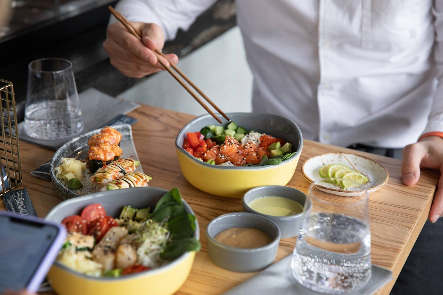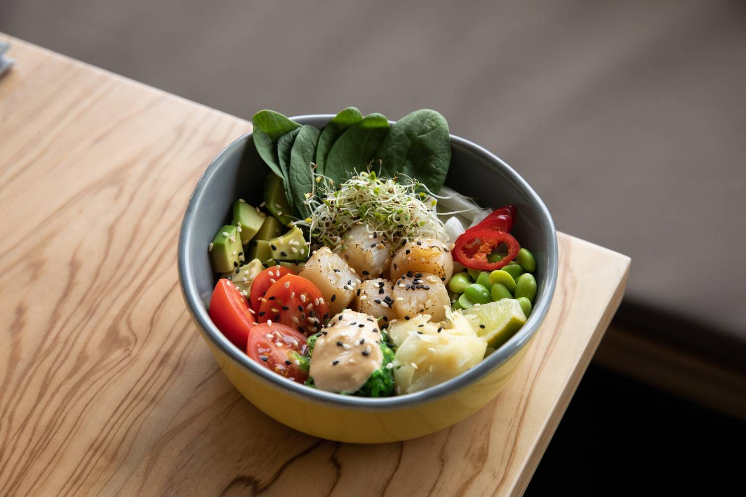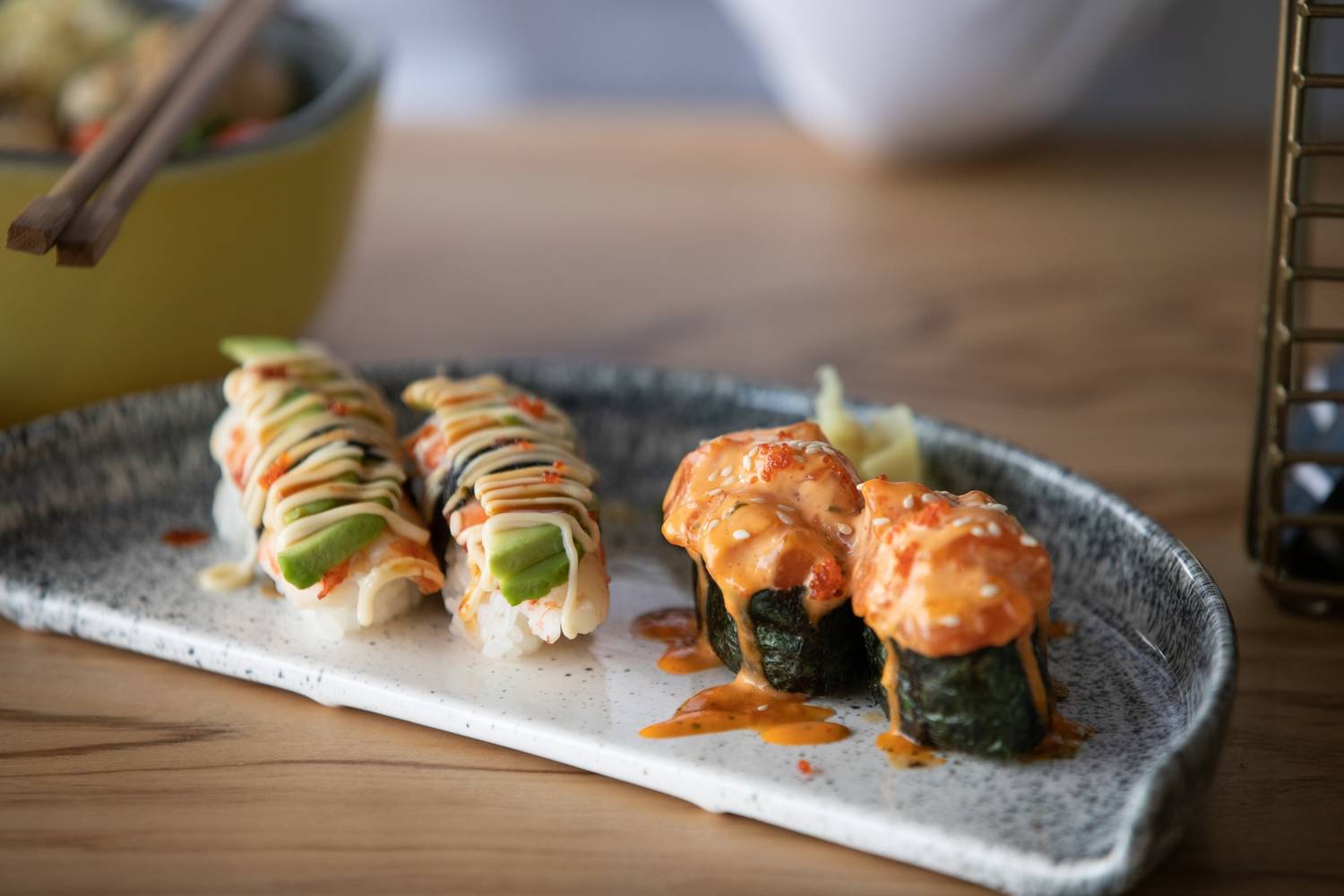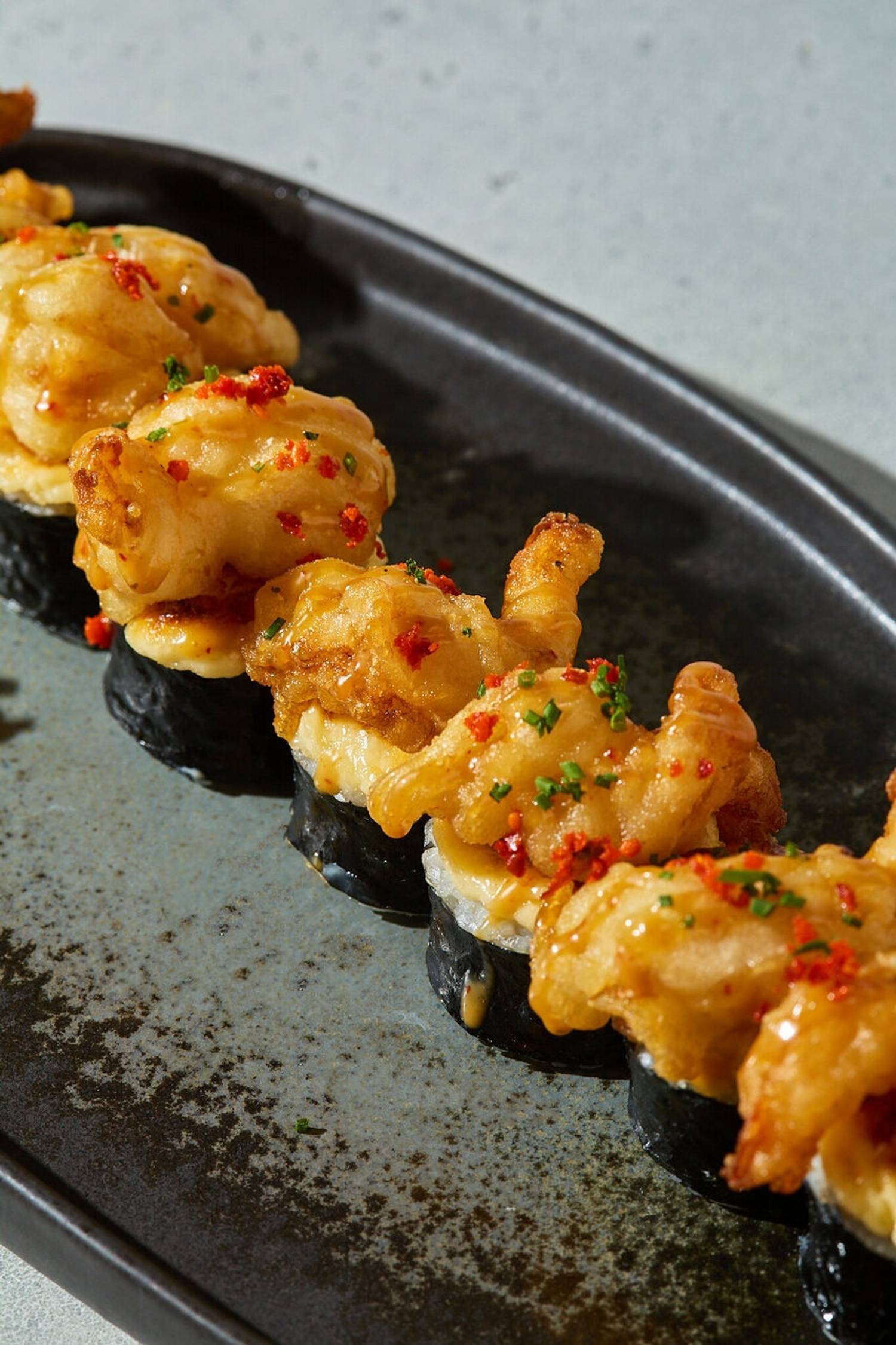 Еда и напитки. Меню объединяет классику и фьюжн. Здесь можно заказать более 60 вариантов роллов, включая запеченные и авторские, а также суши с морепродуктами — от креветок до гребешков. Из закусок представлены мидии и креветки темпура, на горячее — вок, рамен и супы вроде том-яма или фо бо. Также в меню есть поке и боулы с рыбой и овощами. На десерт подают роллы с манго и фруктовые боулы. Барная карта включает европейские вина, бельгийское и японское пиво.