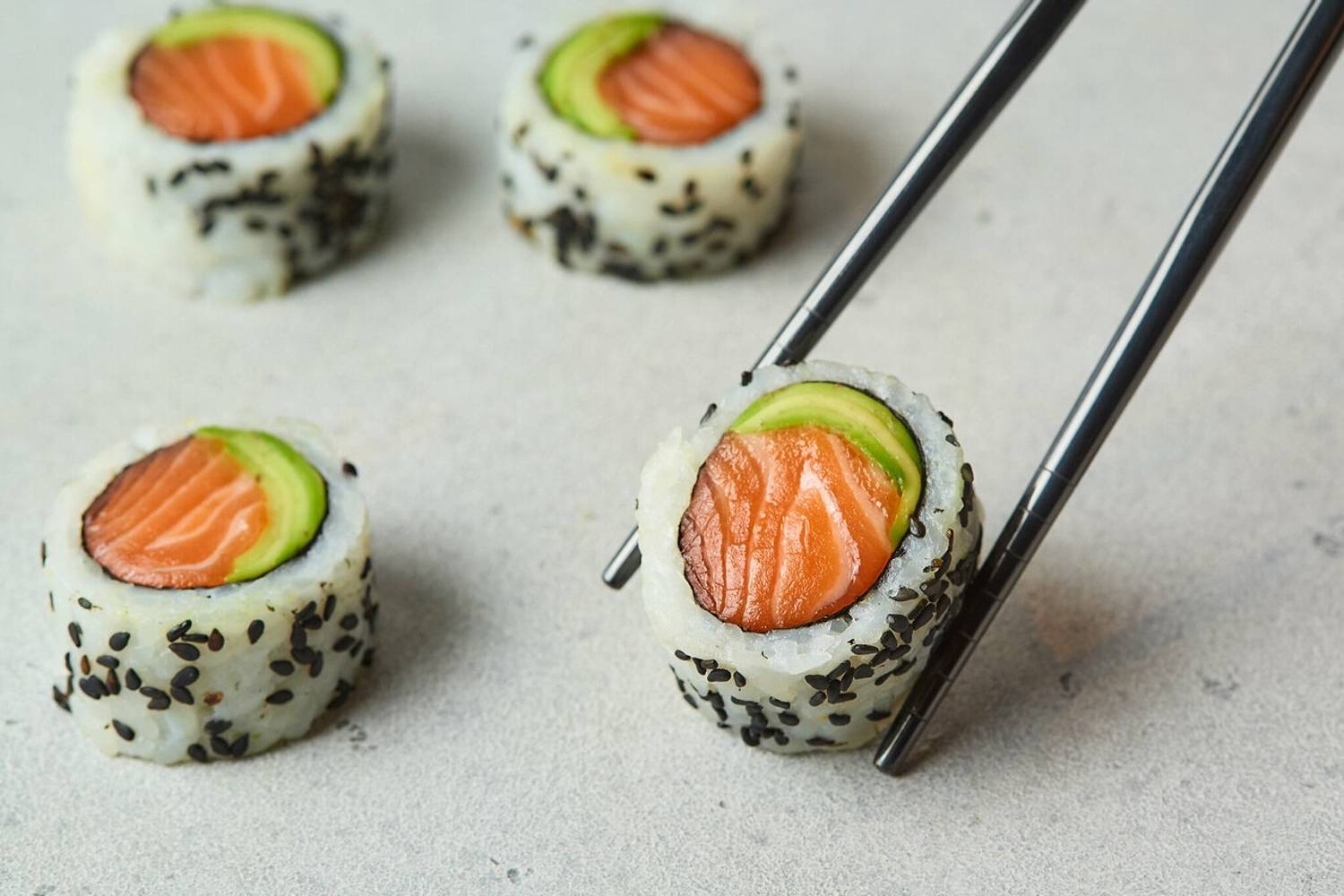 Зачем идти. Чтобы попробовать флагманские роллы сети с лососем и мандарином.
