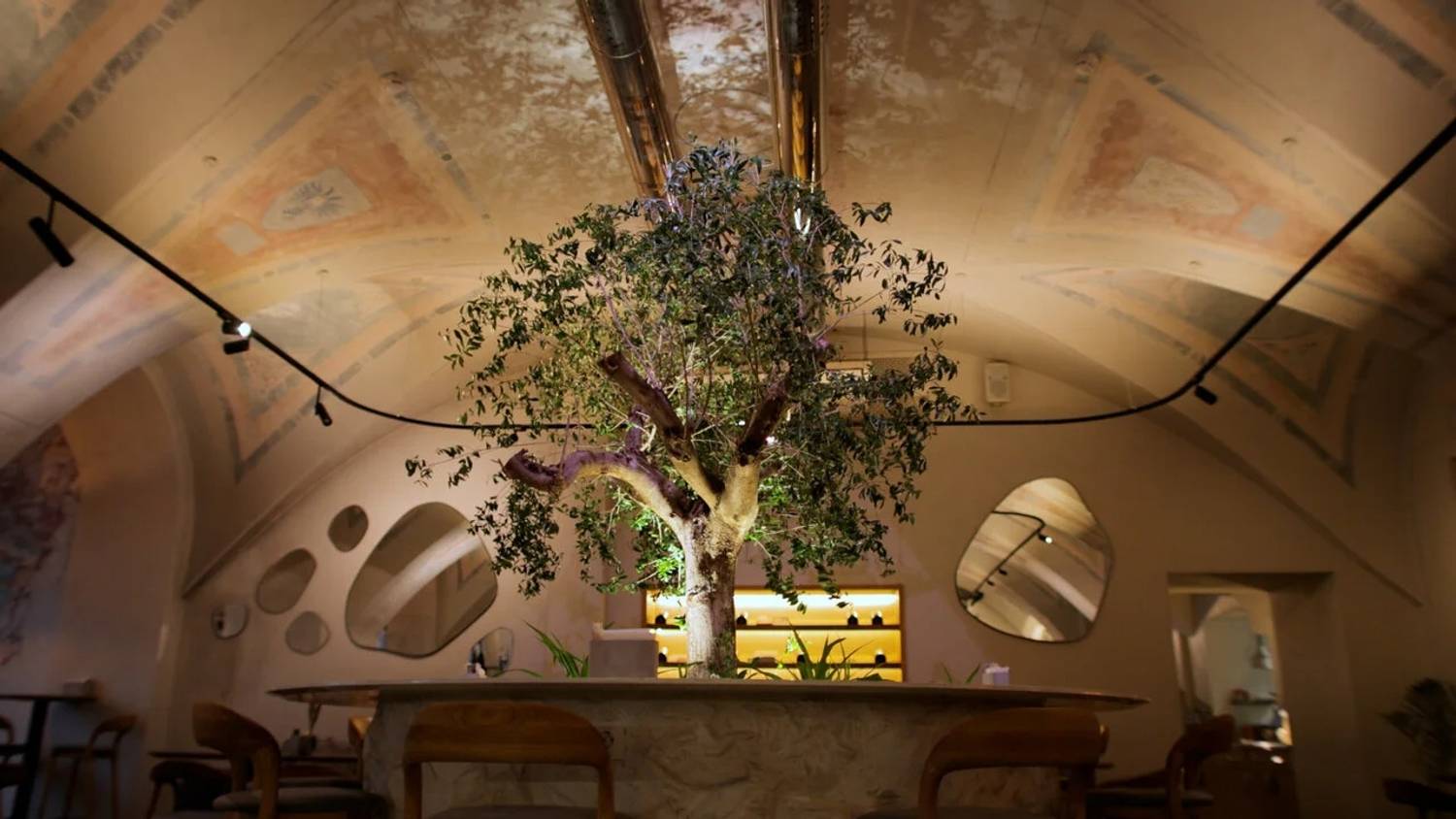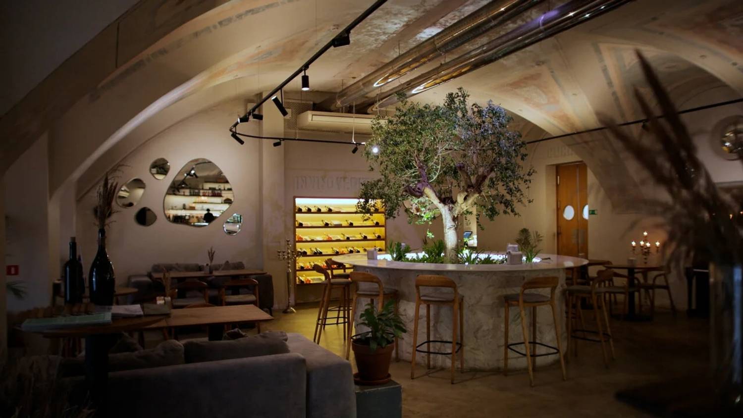 Атмосфера. Сердцем зала стало 70-летнее оливковое дерево, привезенное с Сицилии — живой символ, объединяющий вековые традиции и уют современного ресторана. Исторические сводчатые потолки, фрески на стенах, теплый приглушенный свет и аромат свежесваренного кофе погружают в расслабленную атмосферу итальянского дома. Вечером здесь зажигают свечи, создавая идеальный антураж для романтического ужина или долгих разговоров с друзьями.