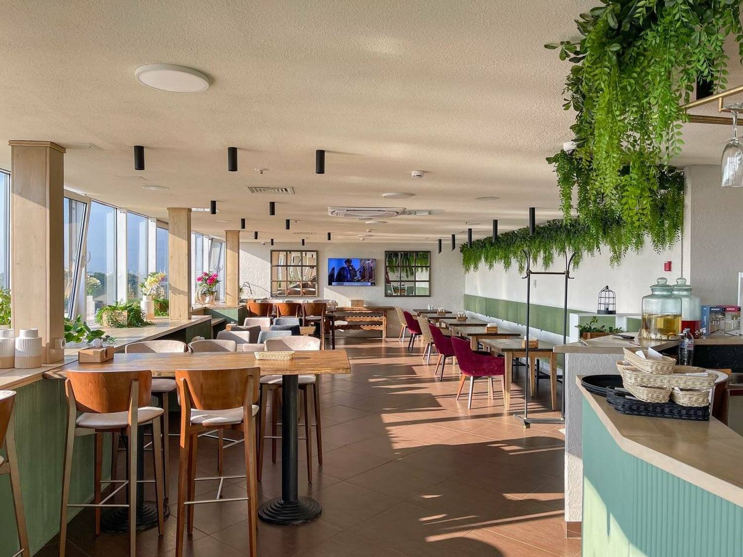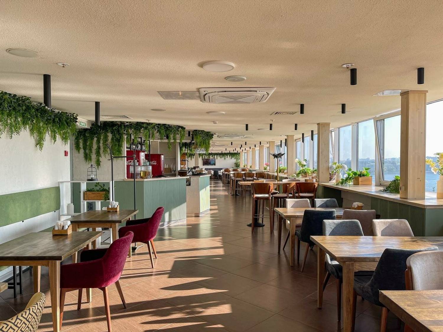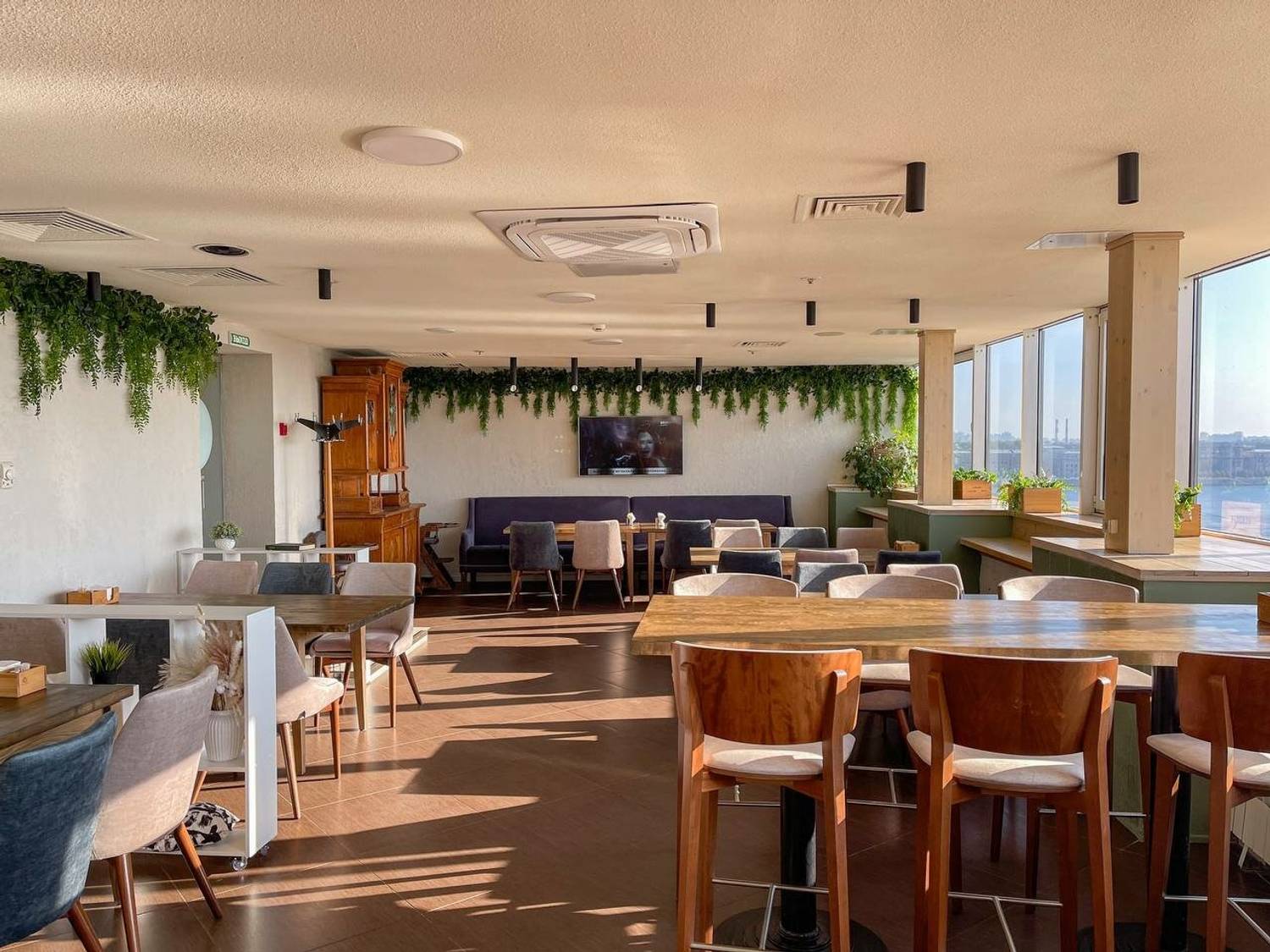 Атмосфера. Оформленное в лаконичном стиле пространство не отвлекает от главного — завораживающей красоты города за окном. Светлые тона, живые растения, стильная мебель и приветливость персонала создают ощущение уюта и комфорта, будь то ранний завтрак, деловой обед или расслабленный ужин. Иногда здесь звучит живая музыка, добавляя вечерам особую камерность.