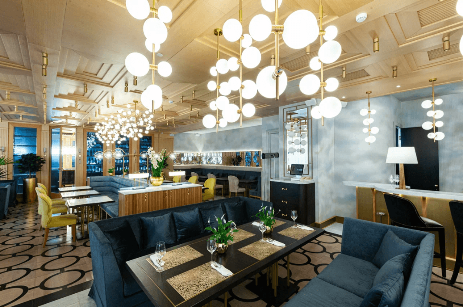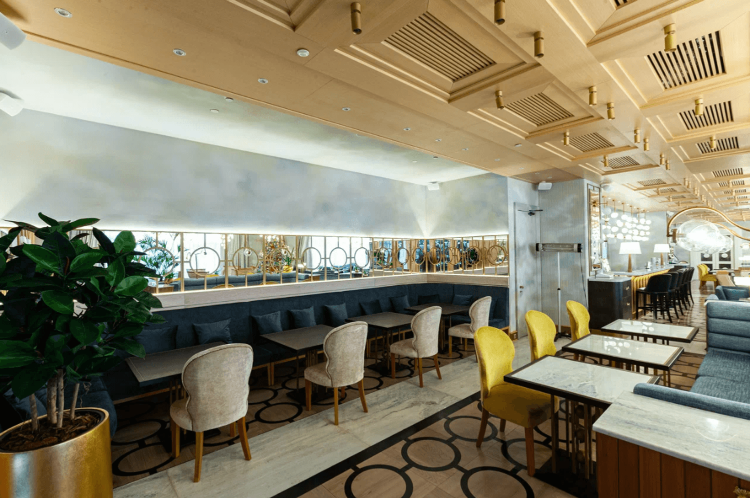 Атмосфера. С порога место ощущается как просторное и нарядное, но без лишней суеты, поэтому сюда приходят и на спокойный ужин, и на день рождения. Внутри большой общий зал с золотыми акцентами и мягким светом, есть отдельная вип-комната для небольшой компании и зал с караоке и отдельным входом. Летом открывают веранду, в отзывах ее описывают как зеленую и удобную для семейных встреч. Вечерами бывает ненавязчивая живая музыка, на фоне которой комфортно разговаривать. Из-за масштаба пространства иногда приходится подождать официанта, но обслуживание тем не менее остается оперативным.