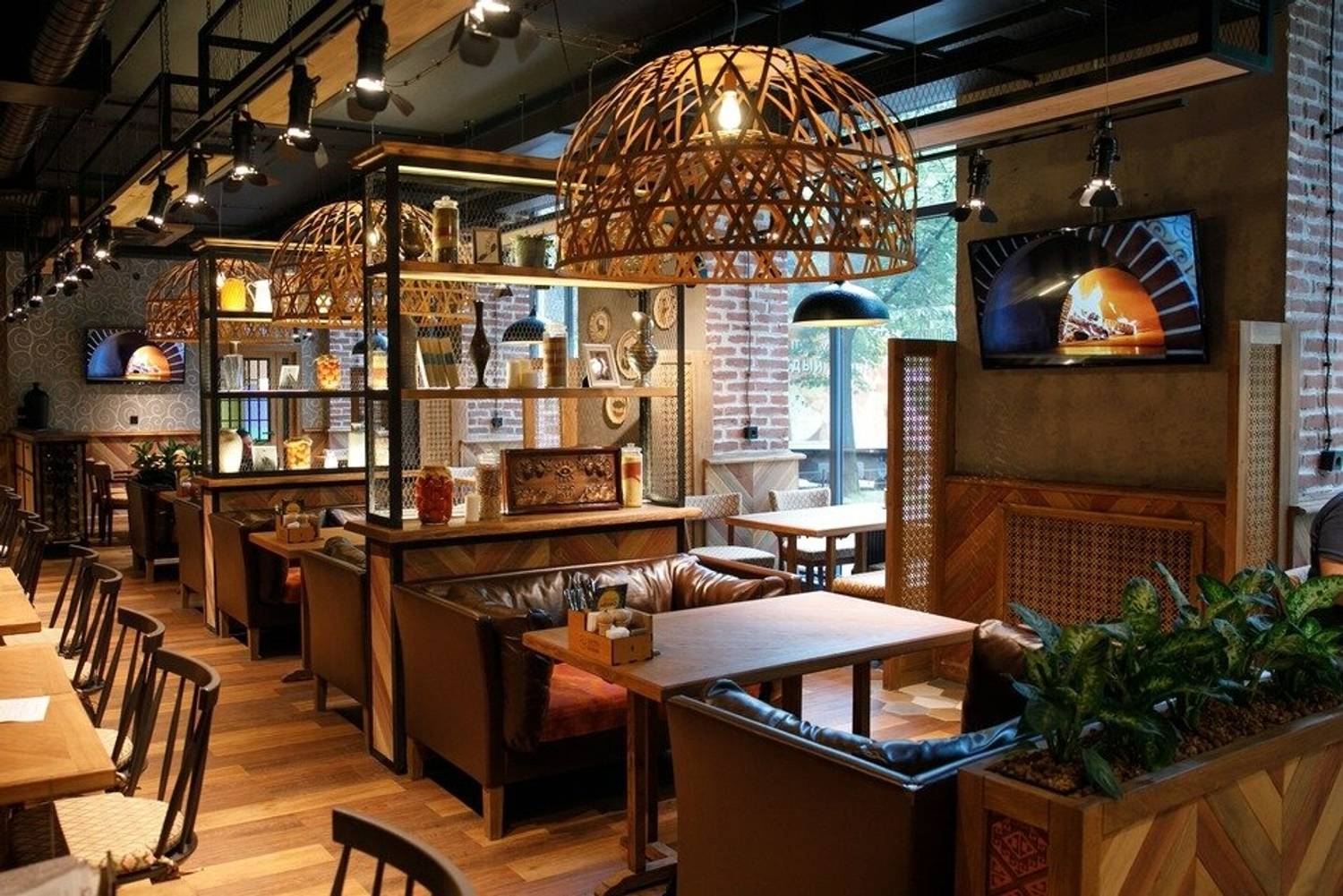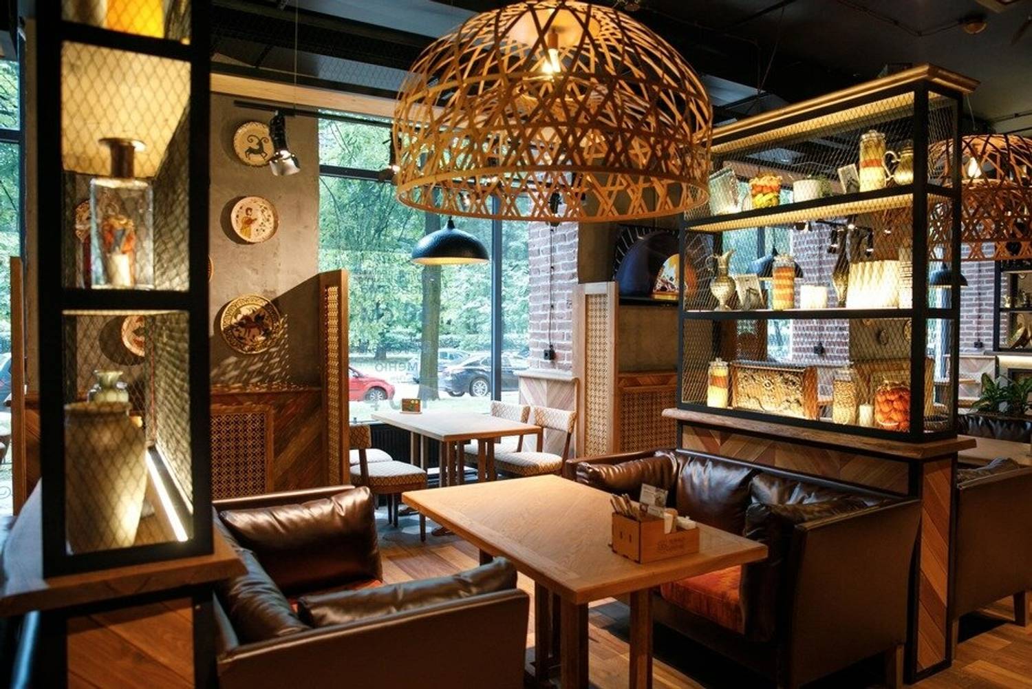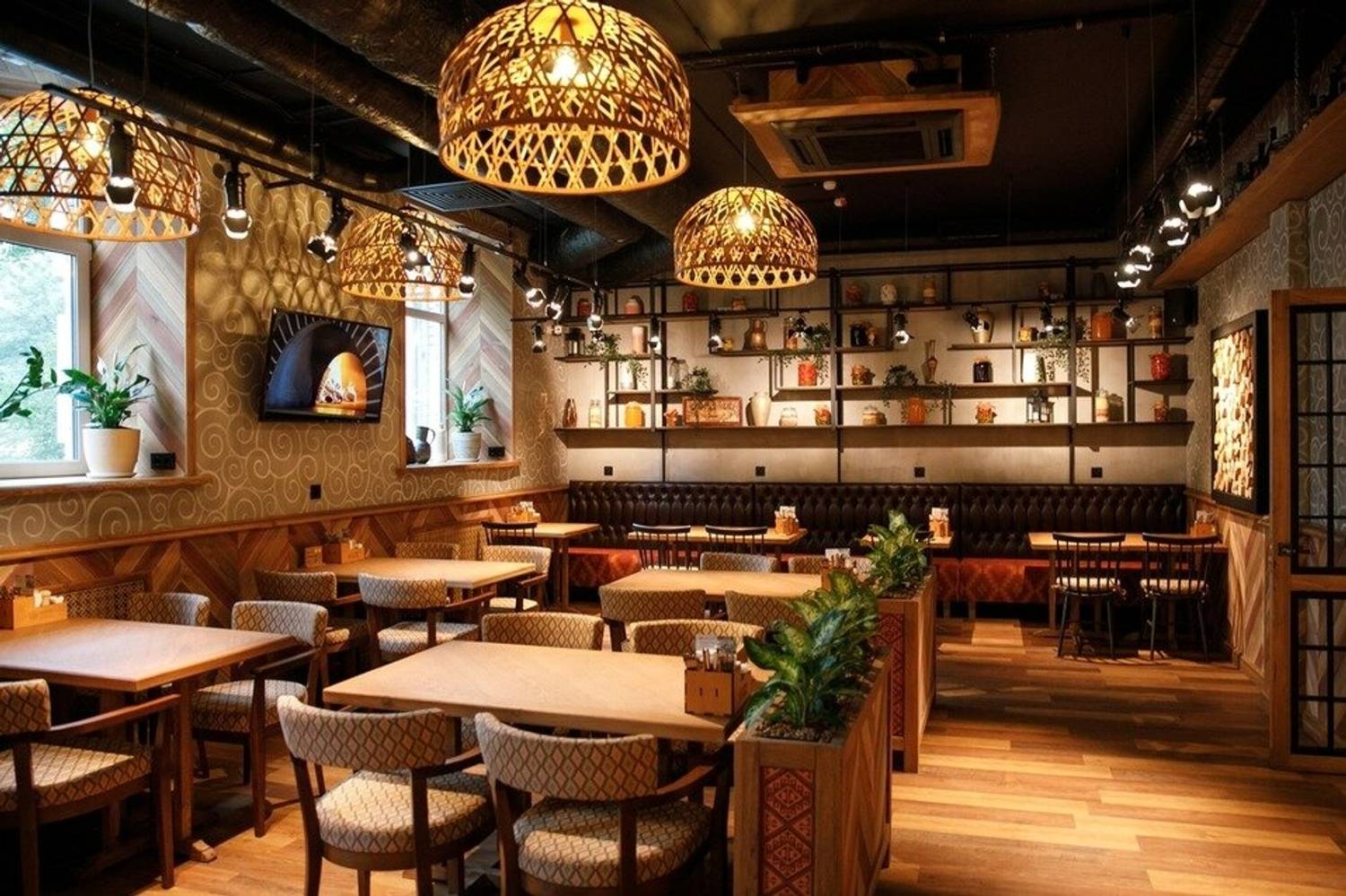Атмосфера. Главный зал венчает большая дровяная печь, где выпекаются самые разнообразные виды хачапури — от классических до региональных. На стене — большая подсвеченная карта Грузии, где каждый гость может узнать о кулинарных и винных традициях разных регионов страны. Плетеные люстры, деревянная стойка, кадки с растениями и узорами, кувшины на полках, декоративные тарелки на стенах. Для маленьких гостей — уютная детская комната, так что родители могут спокойно ужинать в спокойном темпе.