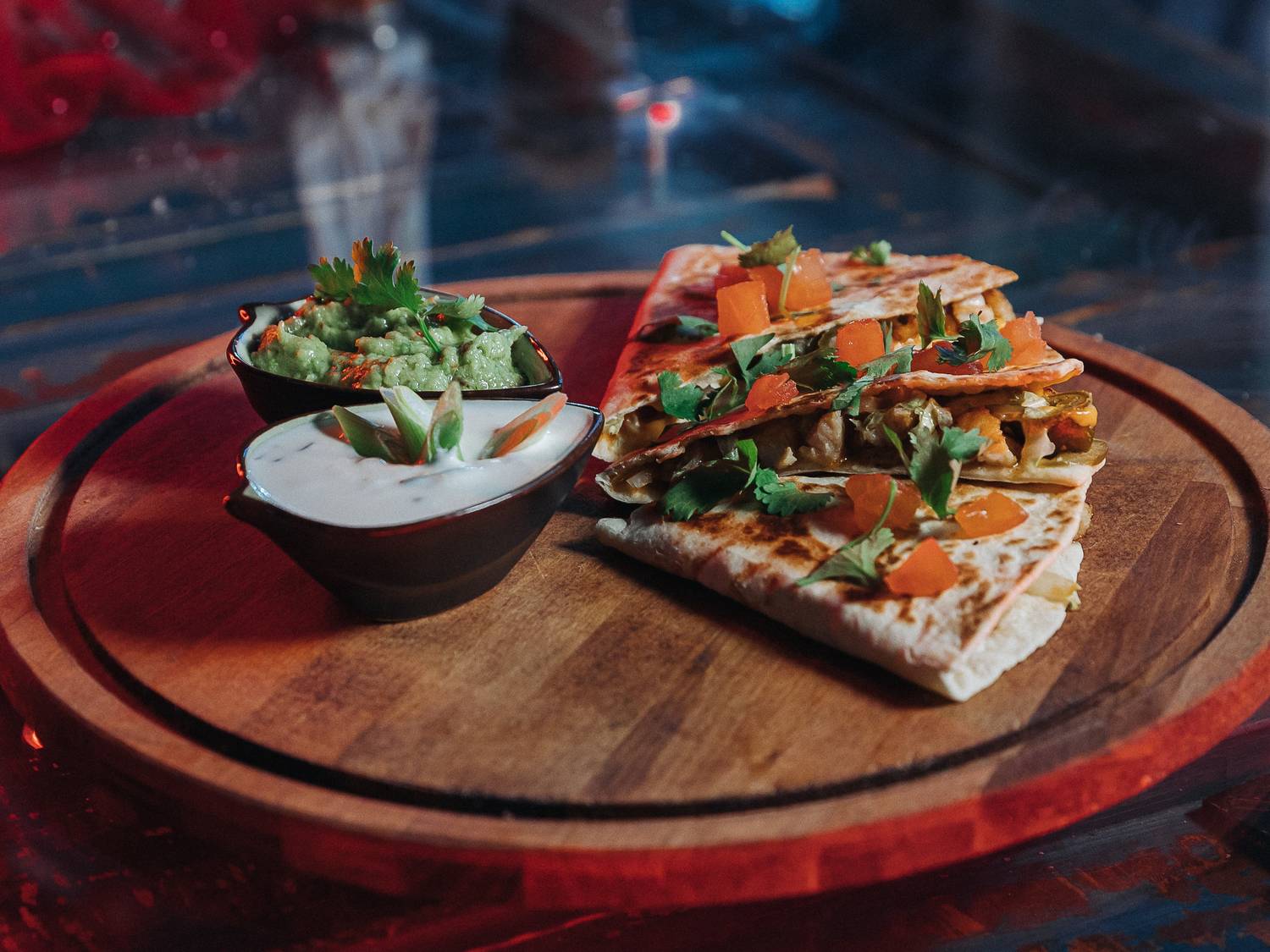 Еда и напитки. В меню — классические мексиканские блюда: кесадилься начос Чили, буррито со свининой, суп де пескадо и манговый торт. В барной карте собрали текилу и мескаль, а также фирменную клубничную Маргариту.