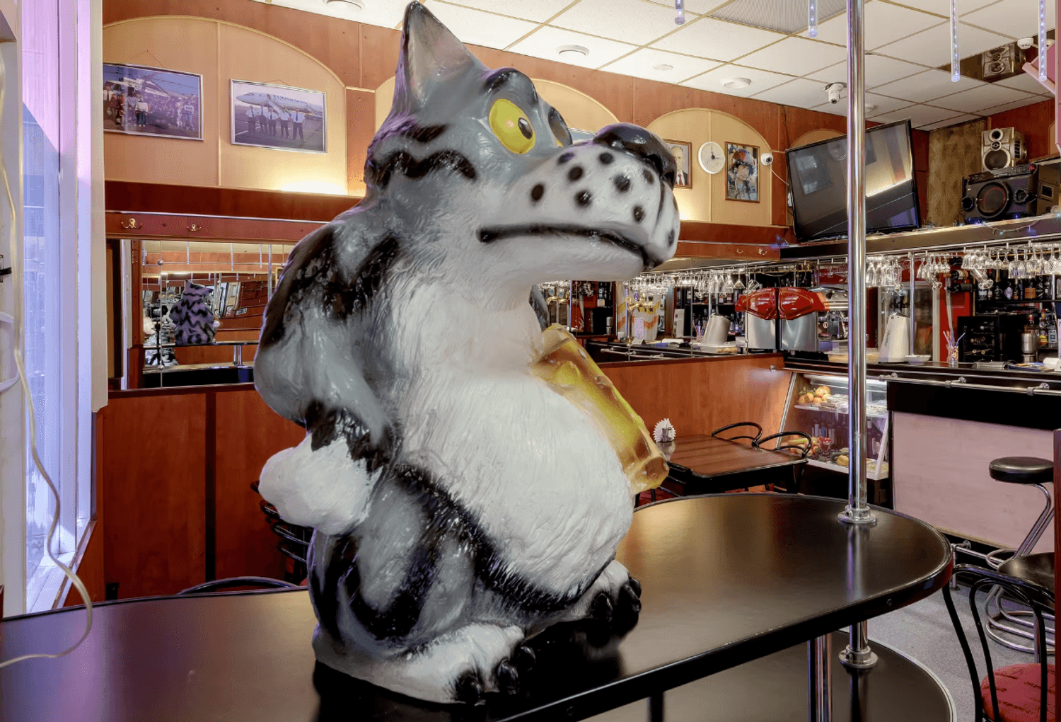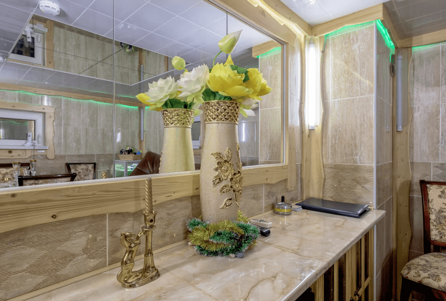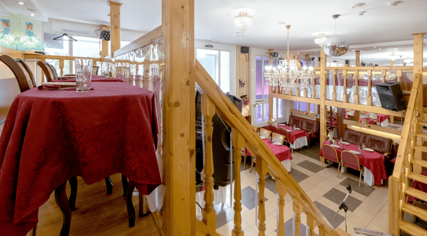 Атмосфера. Двухэтажный ресторан с домашним теплом, которое создают деревянные лестницы и стулья с цветочным принтом. На полках расставили оригинальные декоративные элементы — куклы в пышных платьях. По вечерам в ресторане проходят выступления музыкантов, а по выходным гости могут спеть в караоке и потанцевать.