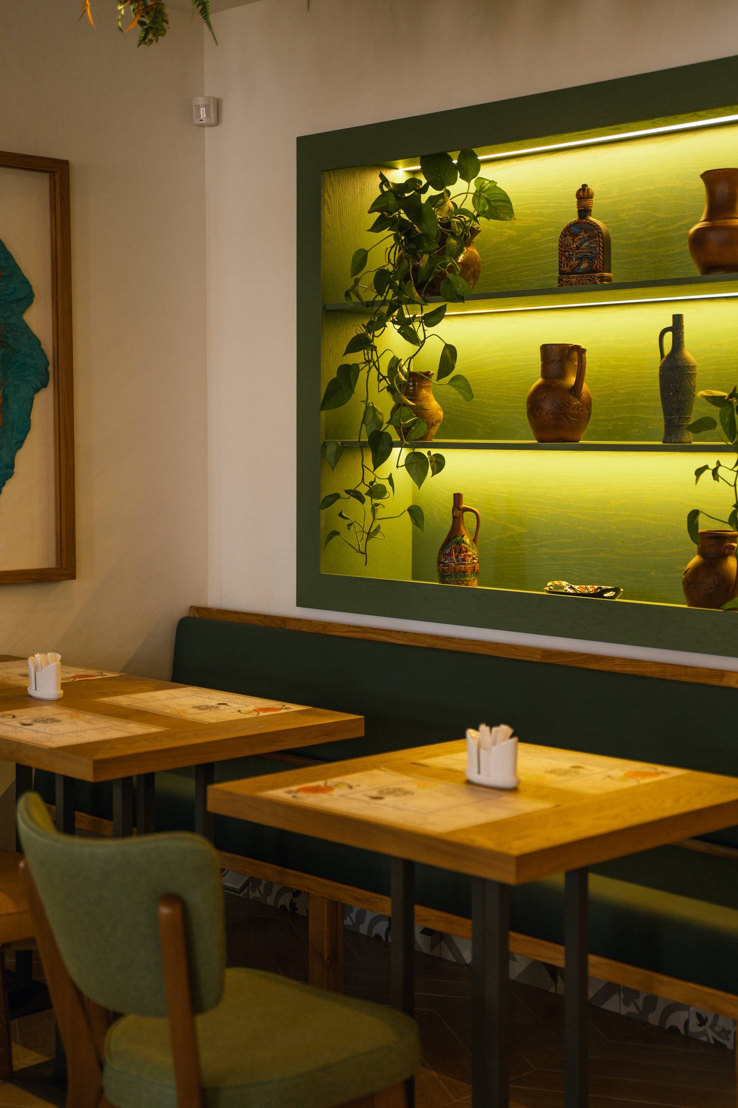 Атмосфера. Здесь сочетаются восточный колорит и лаконичность сканди- стиля. Мягкий свет, уютные столики, теплые тона и грузинские узоры создают обстановку, в которой легко забыть о делах. Здесь хочется посидеть подольше, не глядя на часы и наслаждаясь беседой и вкусом.