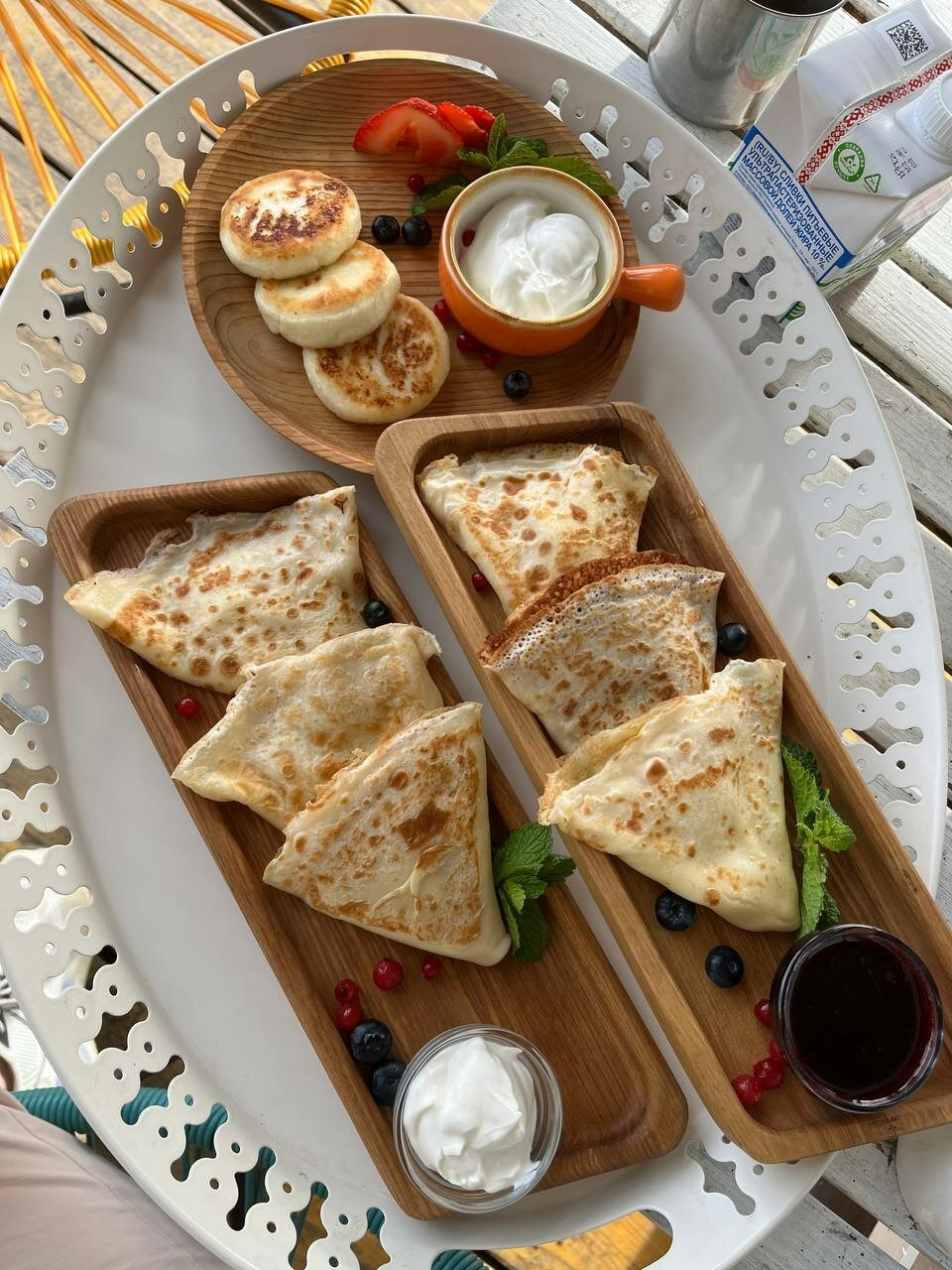 Еда и напитки. В меню — завтраки: зеленая греча с авокадо и яйцом пашот, овсяная каша с орехами и медом. На горячее готовят свиные ребрышки барбекю, стейк лосося, пельмени с индейкой и паста цыпленок песто. На сладкое подают донат с черным шоколадом и вишневый пирог.