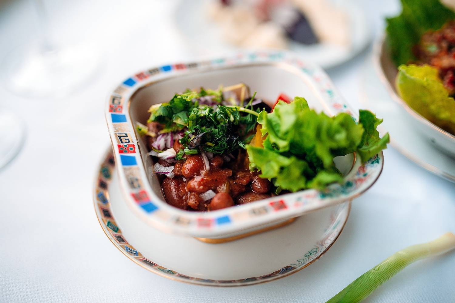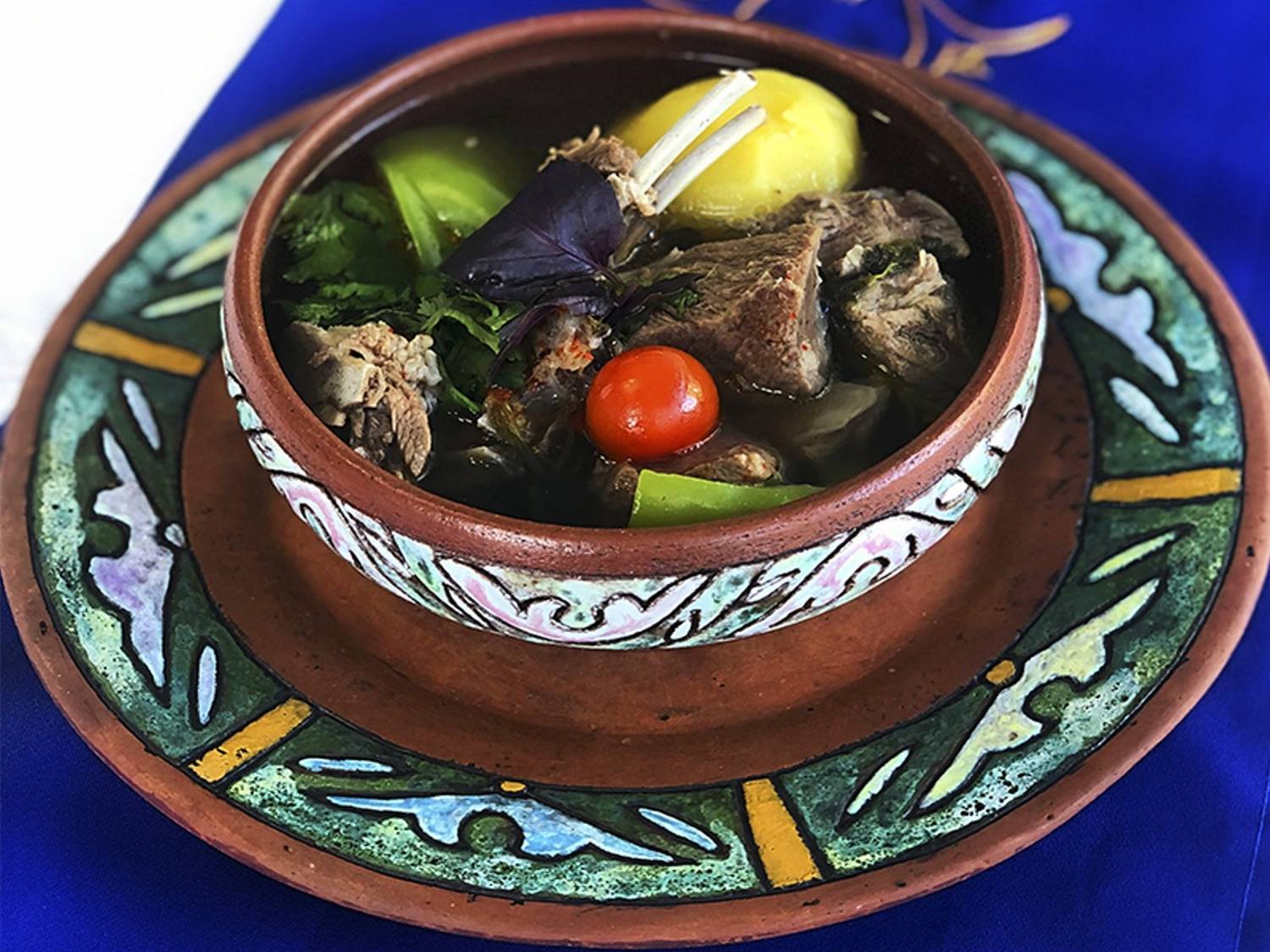 Еда и напитки. Шеф-повар Армен Пиначян готовит по старинным рецептам: есть кебабы из севанских раков, рулет из ягненка с сыром и шпинатом, толма, различные виды кюфте и ягненок по-мушски. В меню также есть грузинский раздел с хачапури и хинкали. К блюдам подают армянские вина, коньяк «Арарат» и травяные чаи.