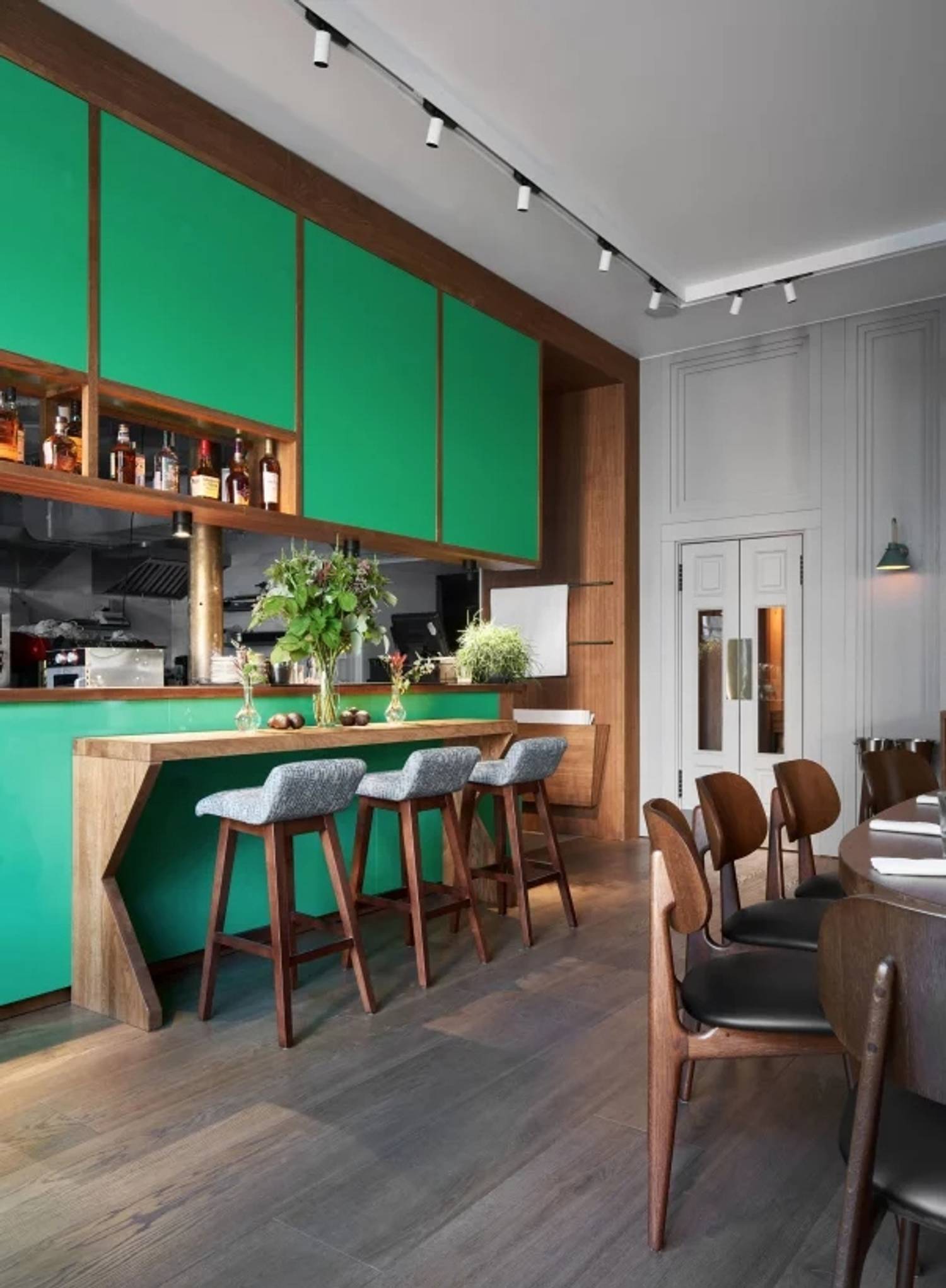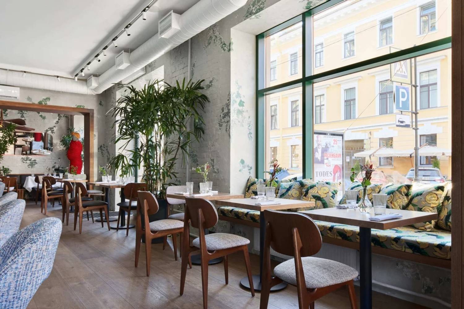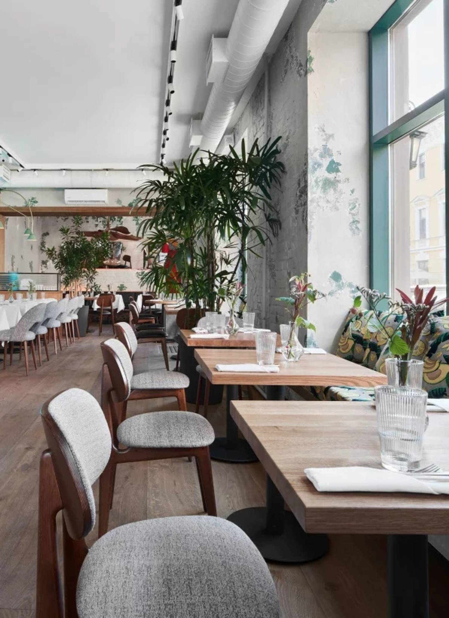 Атмосфера. Здесь царит авокадо и зеленый цвет: на стенах росписи с листьями, а вокруг цветы, дерево и воздух. Декоративная штукатурка под текстуру авокадо, винтажные элементы и обилие зелени создают свежую и эстетичную обстановку. А тропические растения, картины с тематическими образами и мягкое освещение делают интерьер одновременно ярким и уютным, идеальным для съемки в соцсетях.