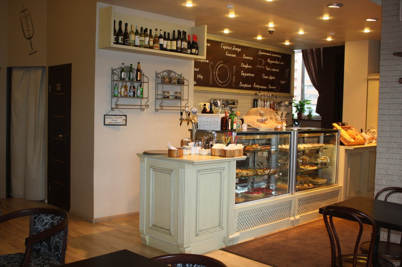 «Еда, Вино и Круассаны» по адресу пл. Привокзальная, 5Ак4 (Мурино) — кафе с европейской кухней и детской комнатой.