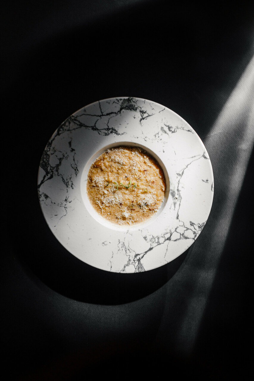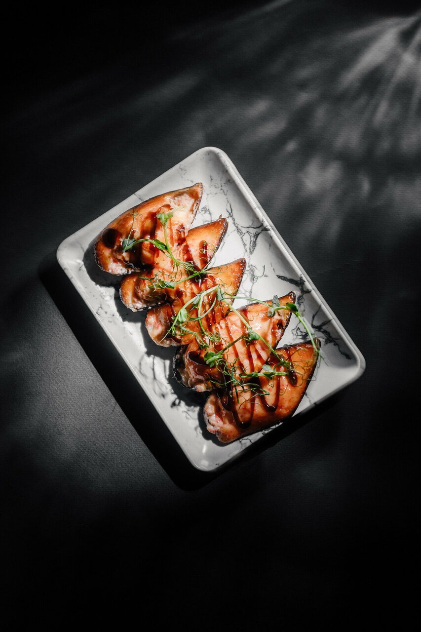 Еда и напитки. В меню — европейская кухня: запеченные мидии киви, перечная паста, мурманский гребешок и филе тилапии с соусом горгонзола. Из коктейлей подают как классические варианты, так и авторские на основе маракуйи, кордиал на основе граната и джин с лимонным фрешем.