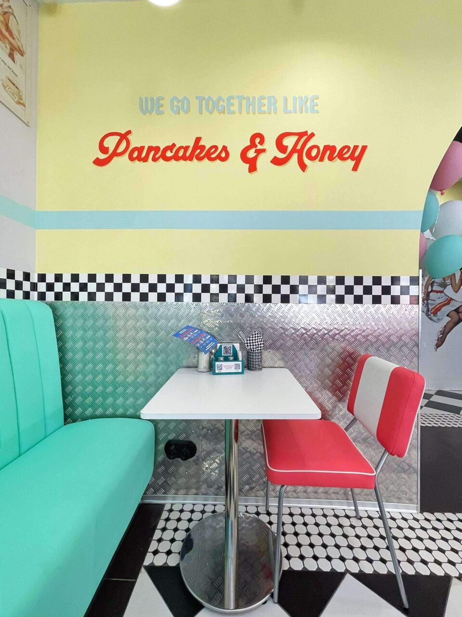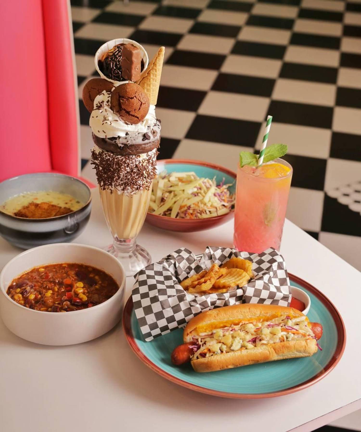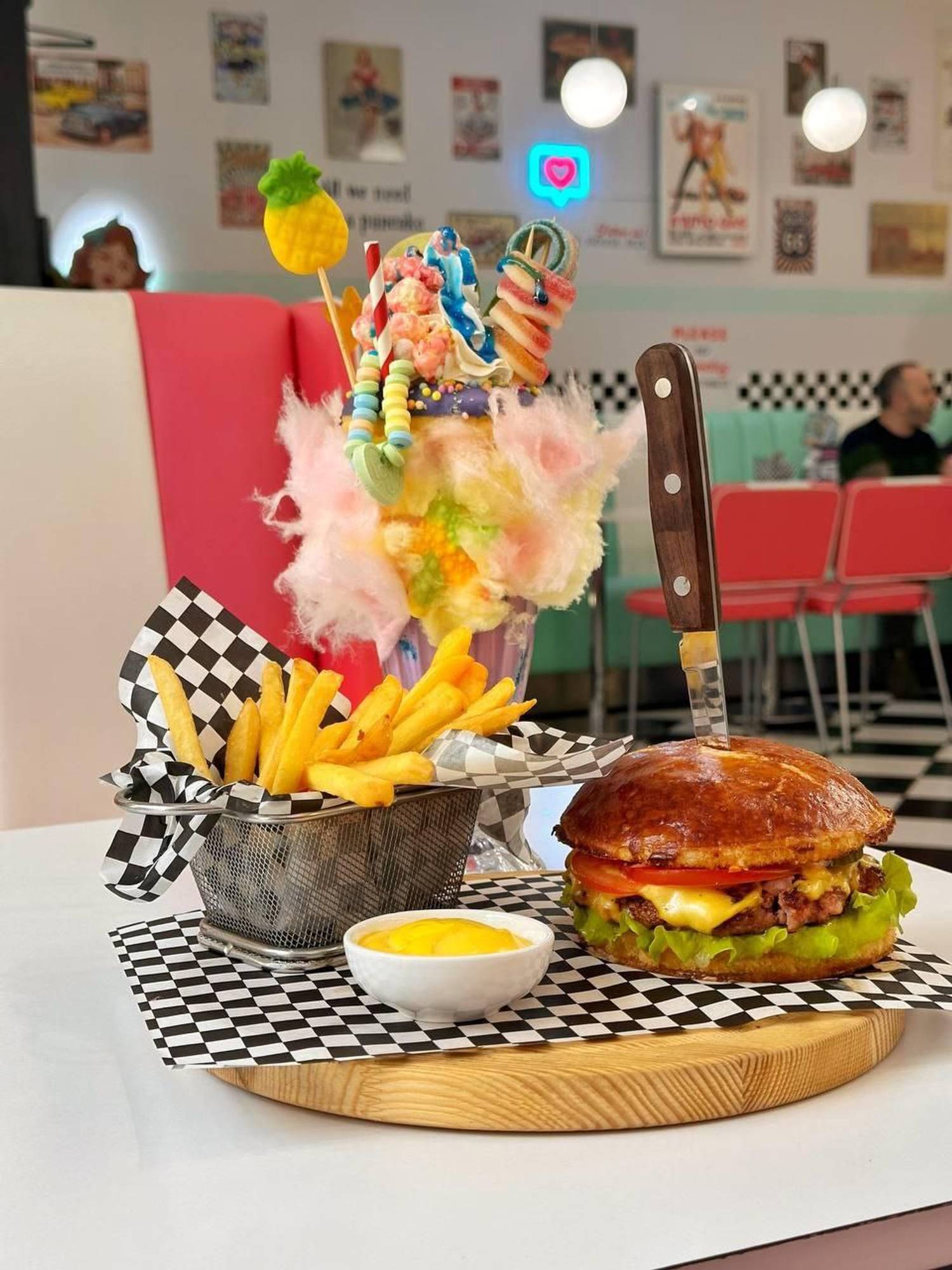 Атмосфера. Яркие неоновые вывески, винтажная стойка и сиденья в стиле ретро-автомобилей создают атмосферу классической придорожной закусочной, которую все хоть раз видели в фильмах. Динамичная музыка, открытая кухня и яркие, словно с картинки, блюда — все это добавляет ощущения того, что вы находитесь в кино.