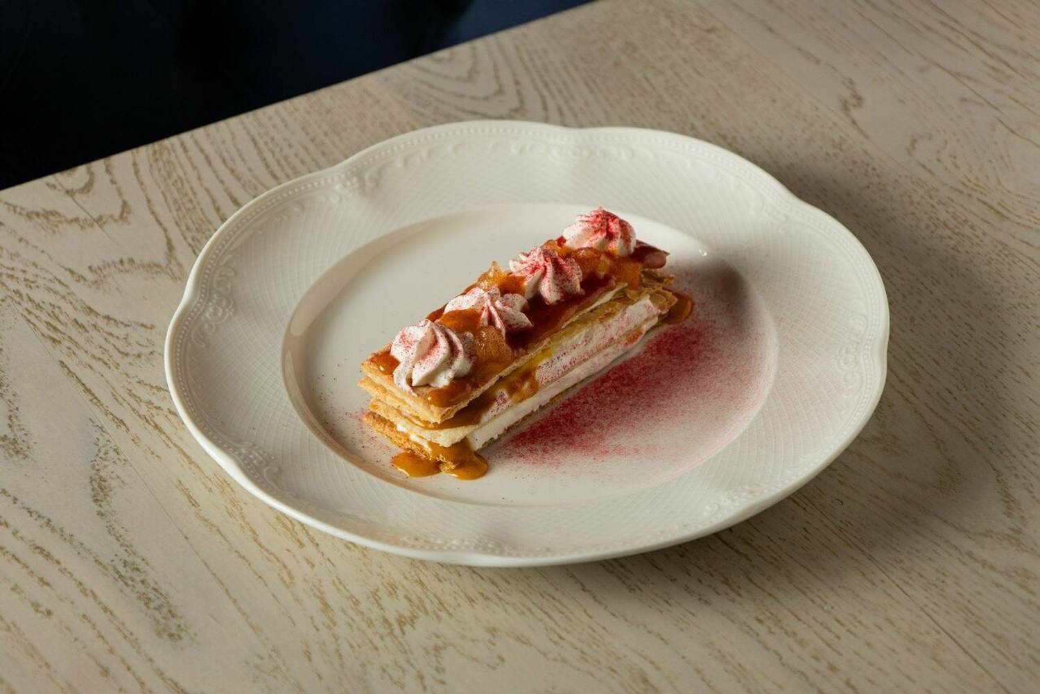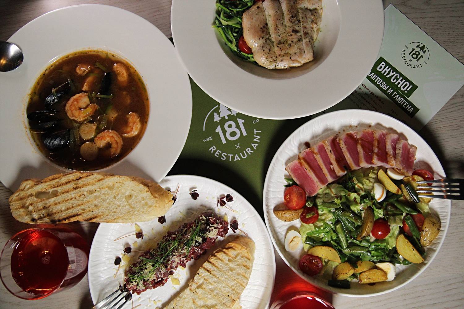 Еда и напитки. В меню — сибирские и европейские блюда, приготовленные из продуктов с собственной фермы морепродуктов из Мурманска. Здесь можно попробовать салат с креветками в заправке мисо, томатный суп с печеными перцами, каре барашка с рататуем, ладожский судак с хумусом из белой фасоли.