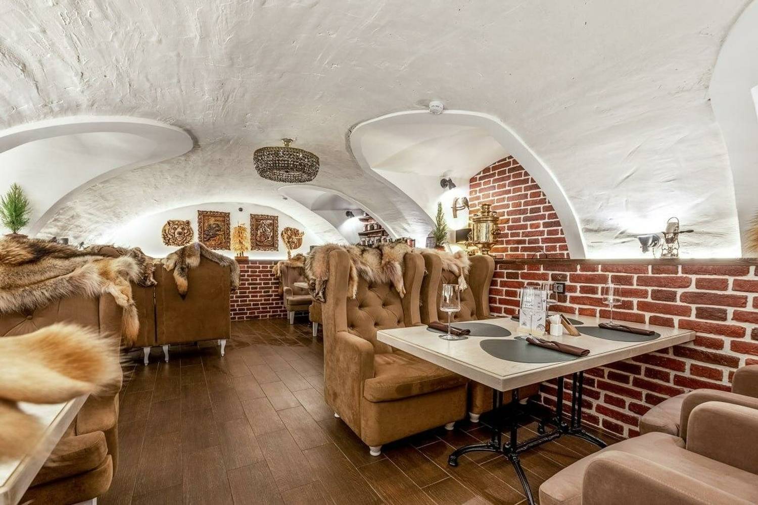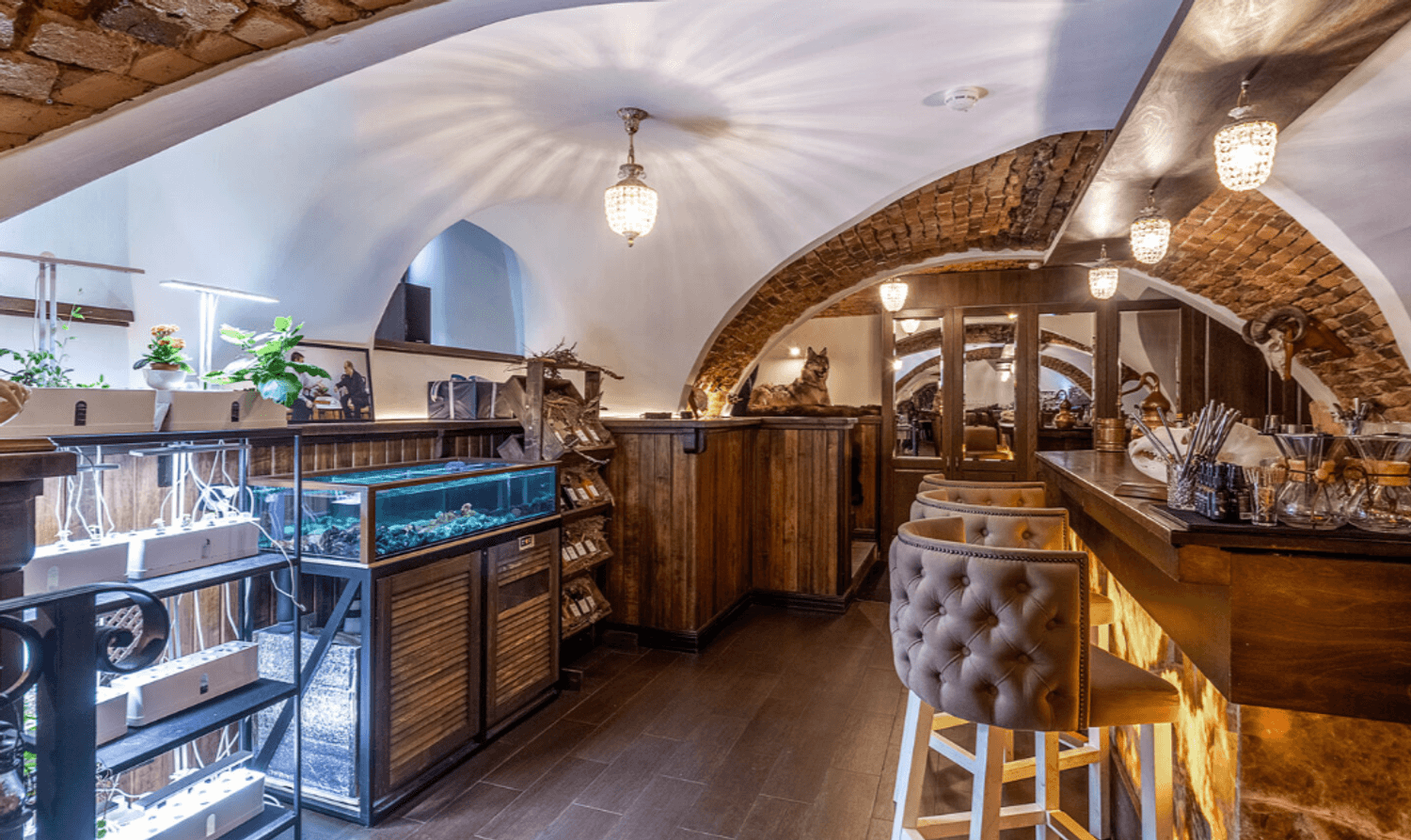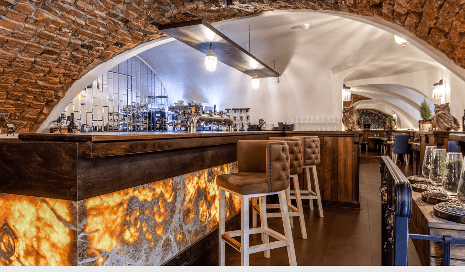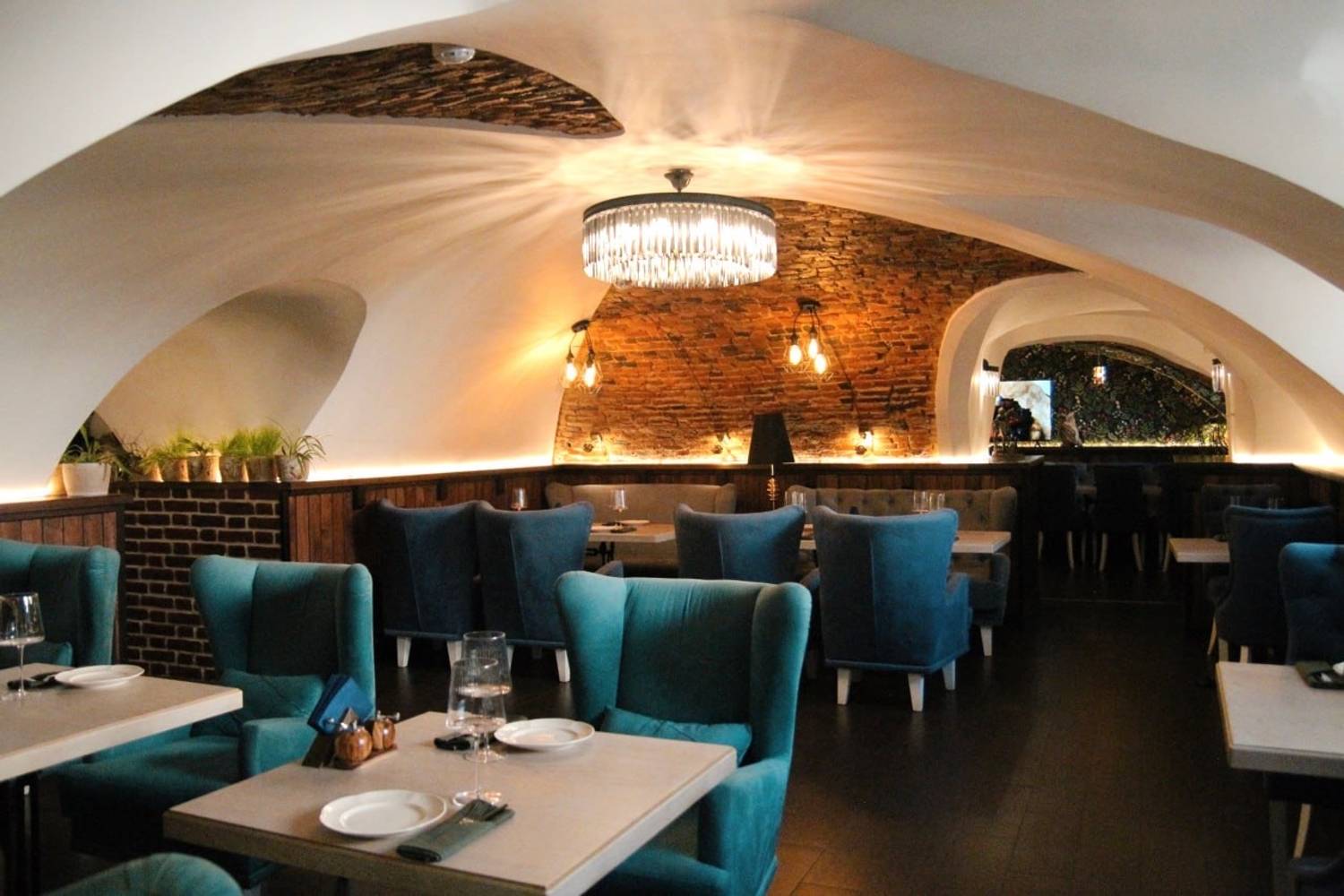 Атмосфера. Три зала с кирпичными стенами и белоснежными арочными сводами создают ощущение европейского подвала. По выходным в баре звучит живая музыка.