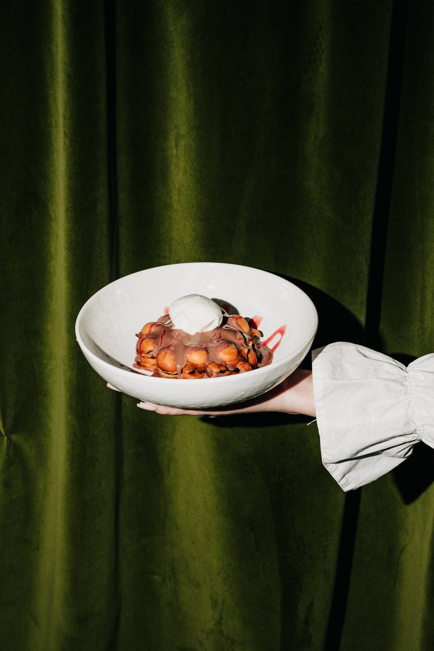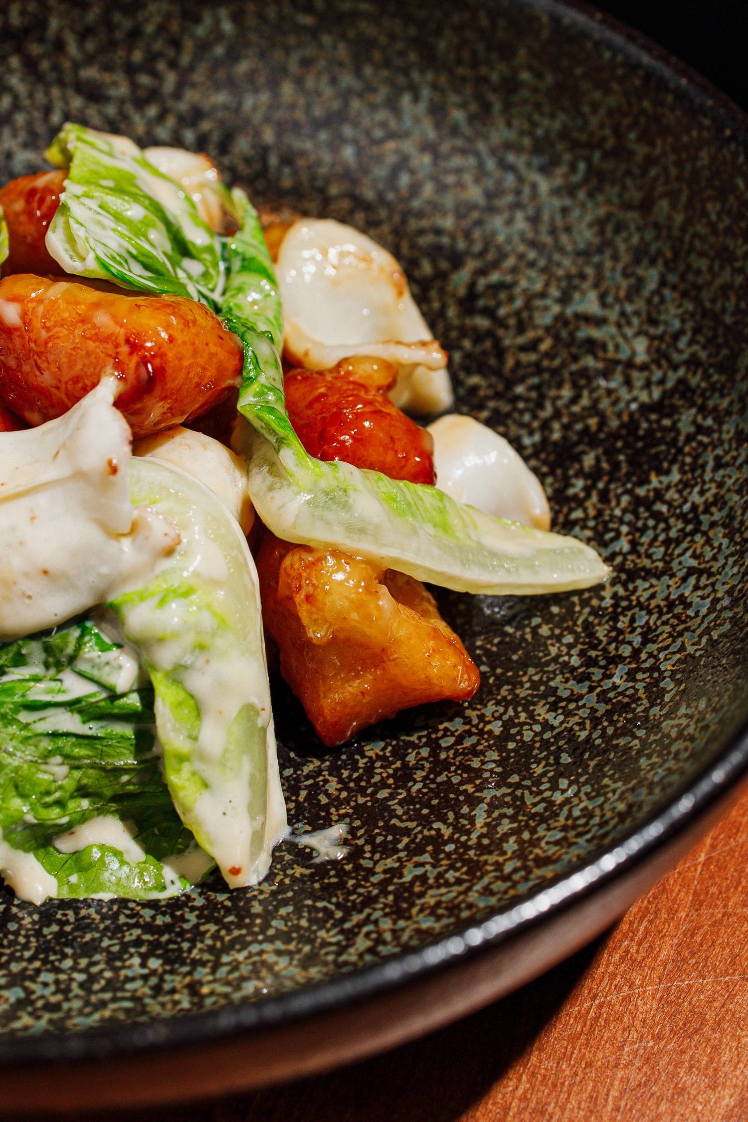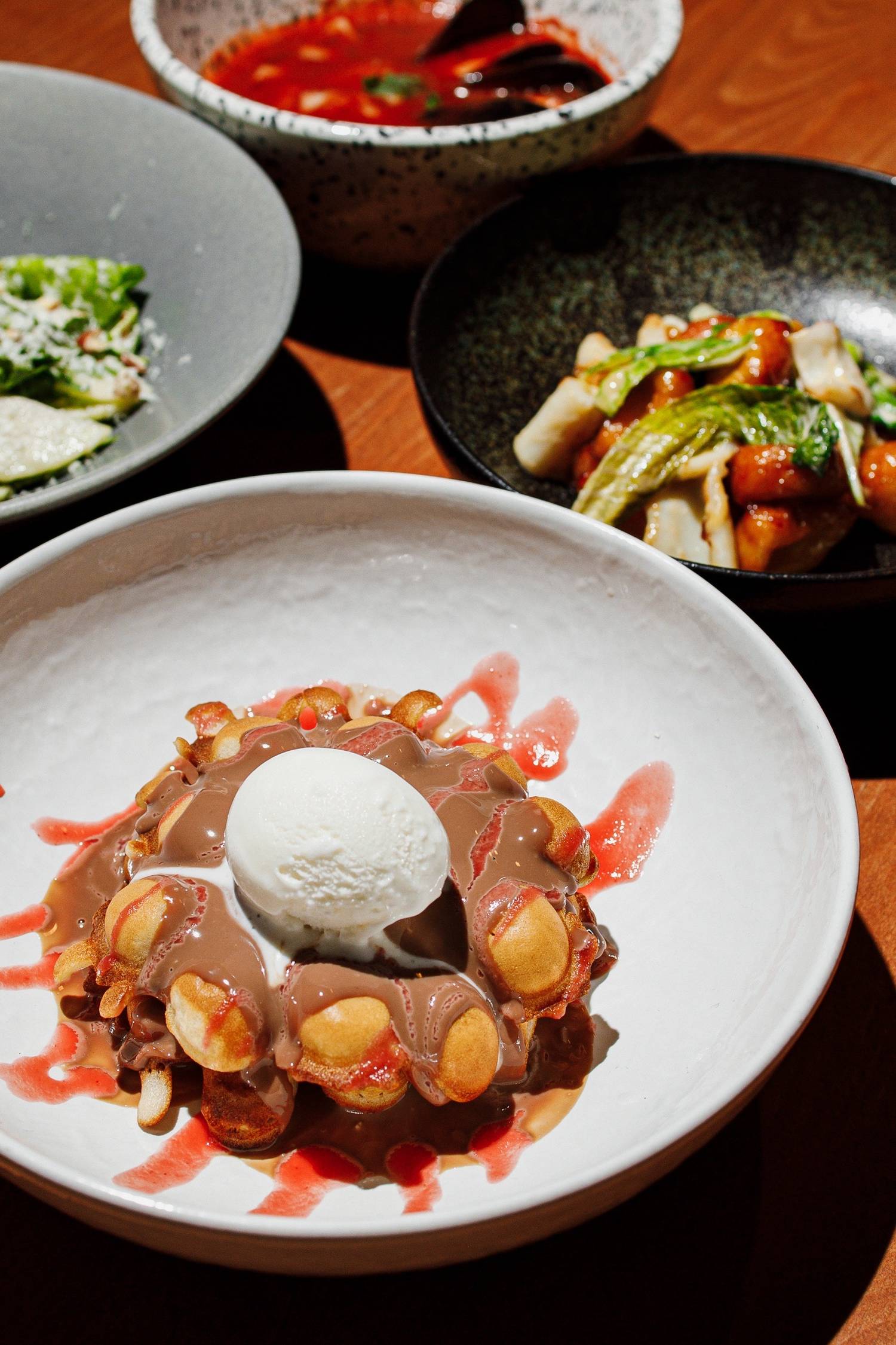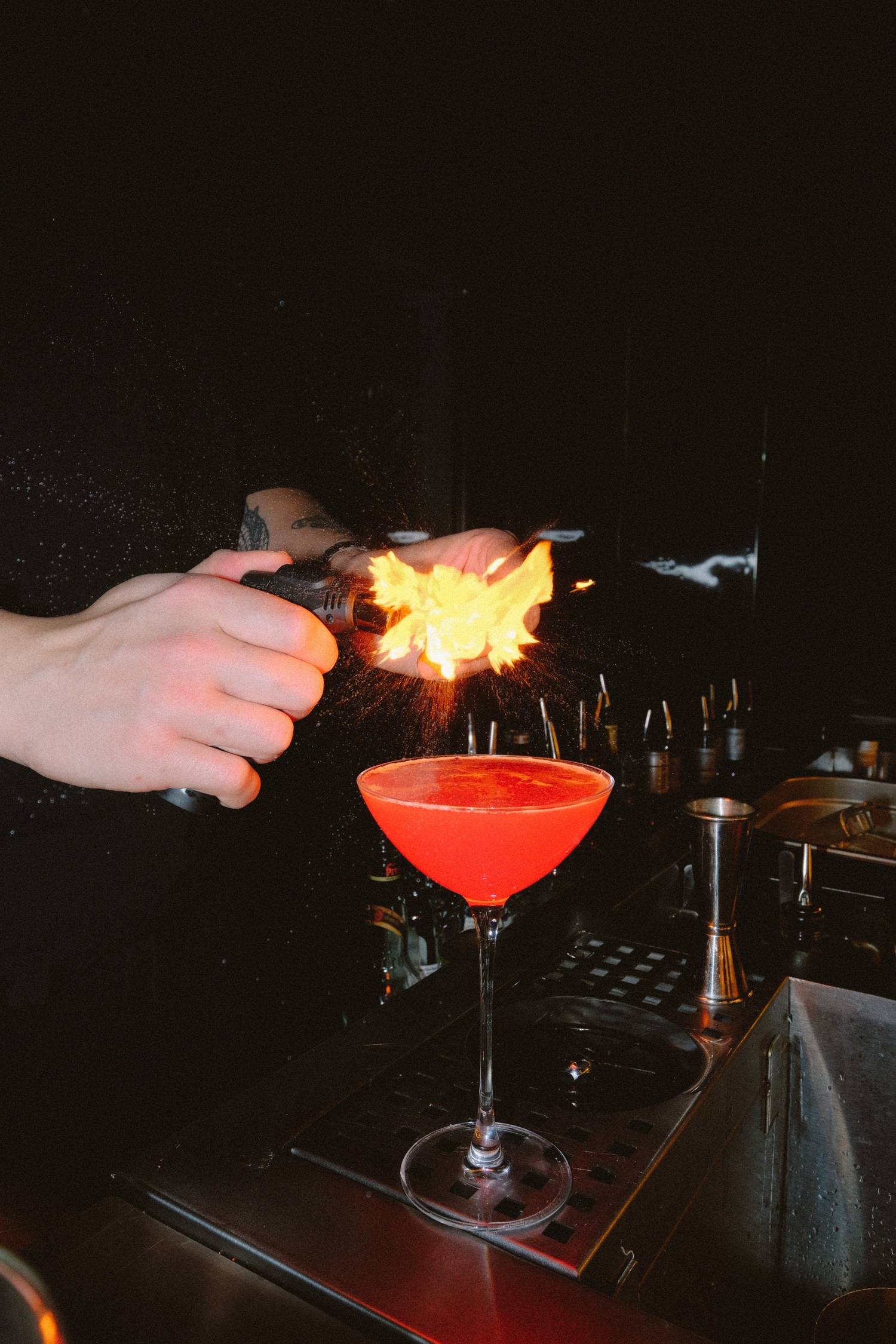 Еда и напитки. В меню — салат с грушей и горгонзолой, свекольник, ньокки с кальмаром, шаверма с креветками. Среди напитков —, авторские и классические коктейли, китайские и травяные чаи. Также есть кальяны на ананасовой, гранатовой и грейпфрутовой чашах.