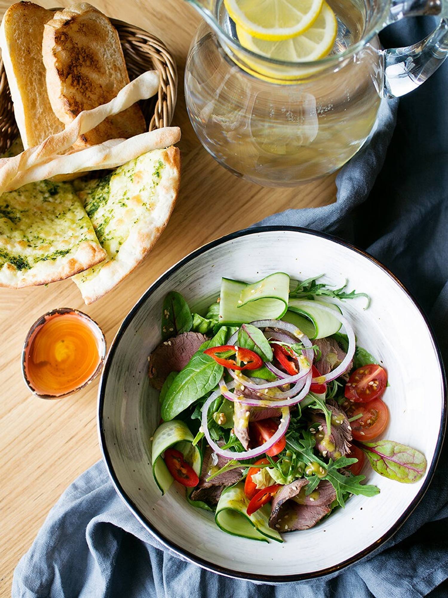 Еда и напитки. В меню — итальянская кухня: пицца с копченым лососем и цукини, кальцоне со шпинатом и грудинкой, паста фрутти ди маре, равиоли с лососем и сыром маскарпоне. Также готовят рубленый бифштекс, свиную вырезку с белыми грибами, домашнюю сальсиччу из цыпленка, а на десерт грушей тар татен с миндалем и кленовым сиропом.
