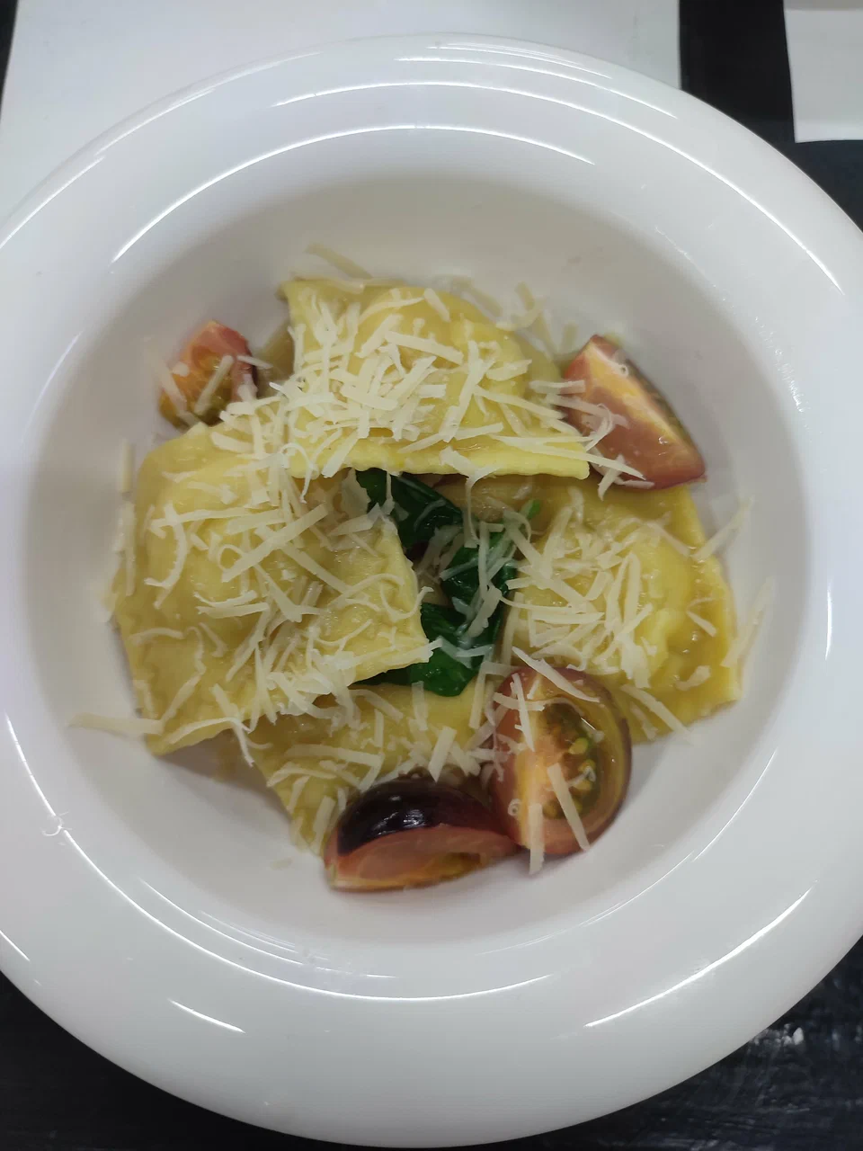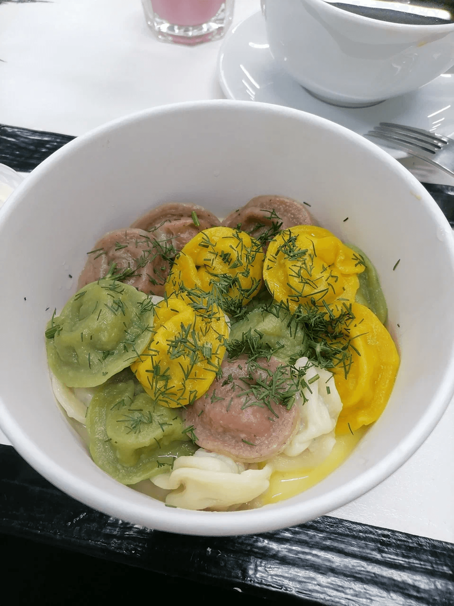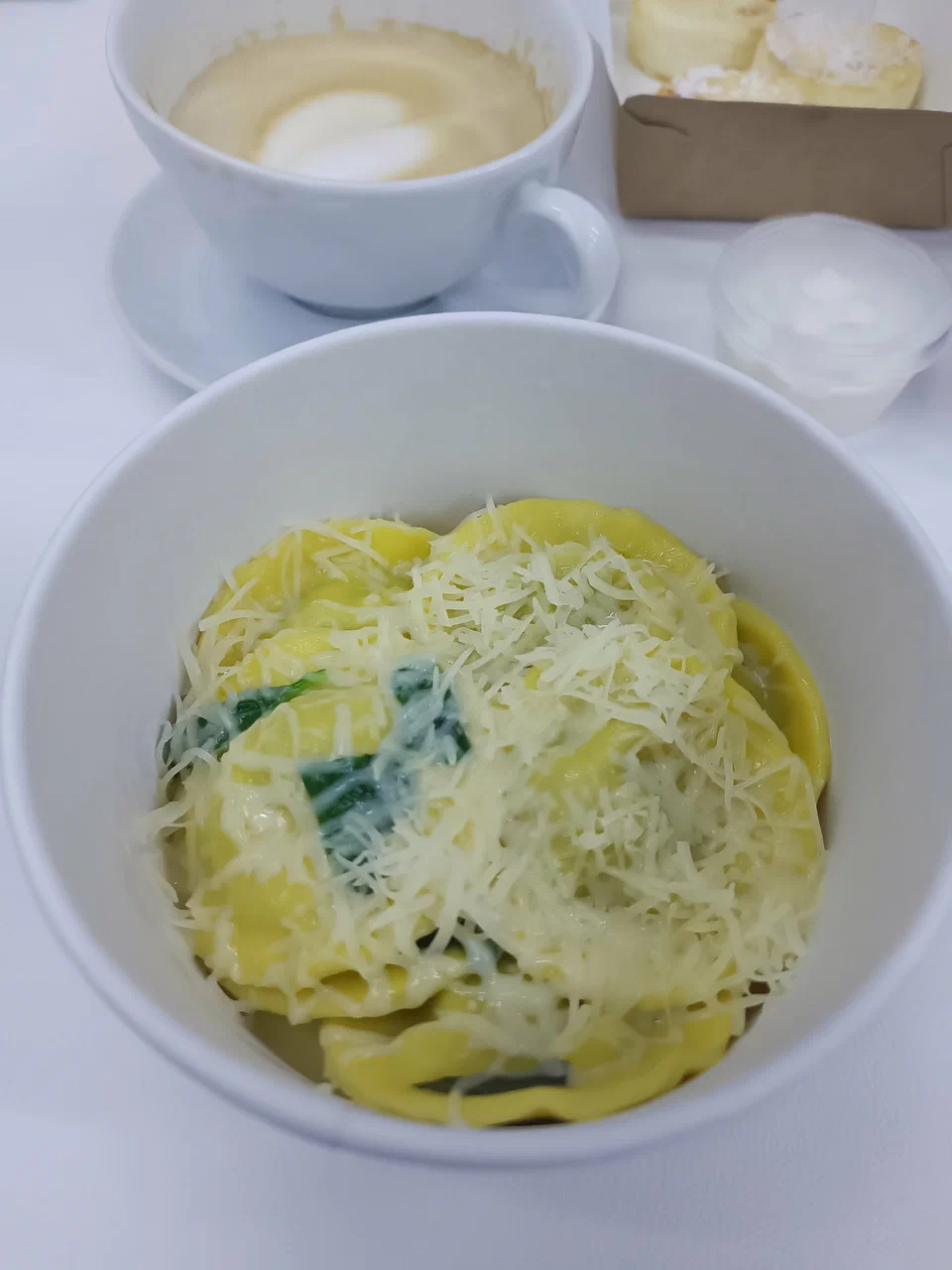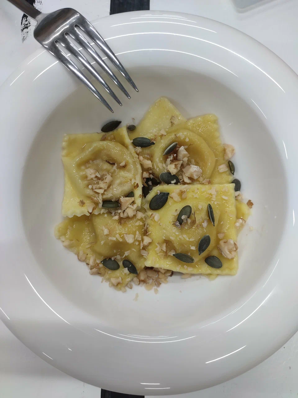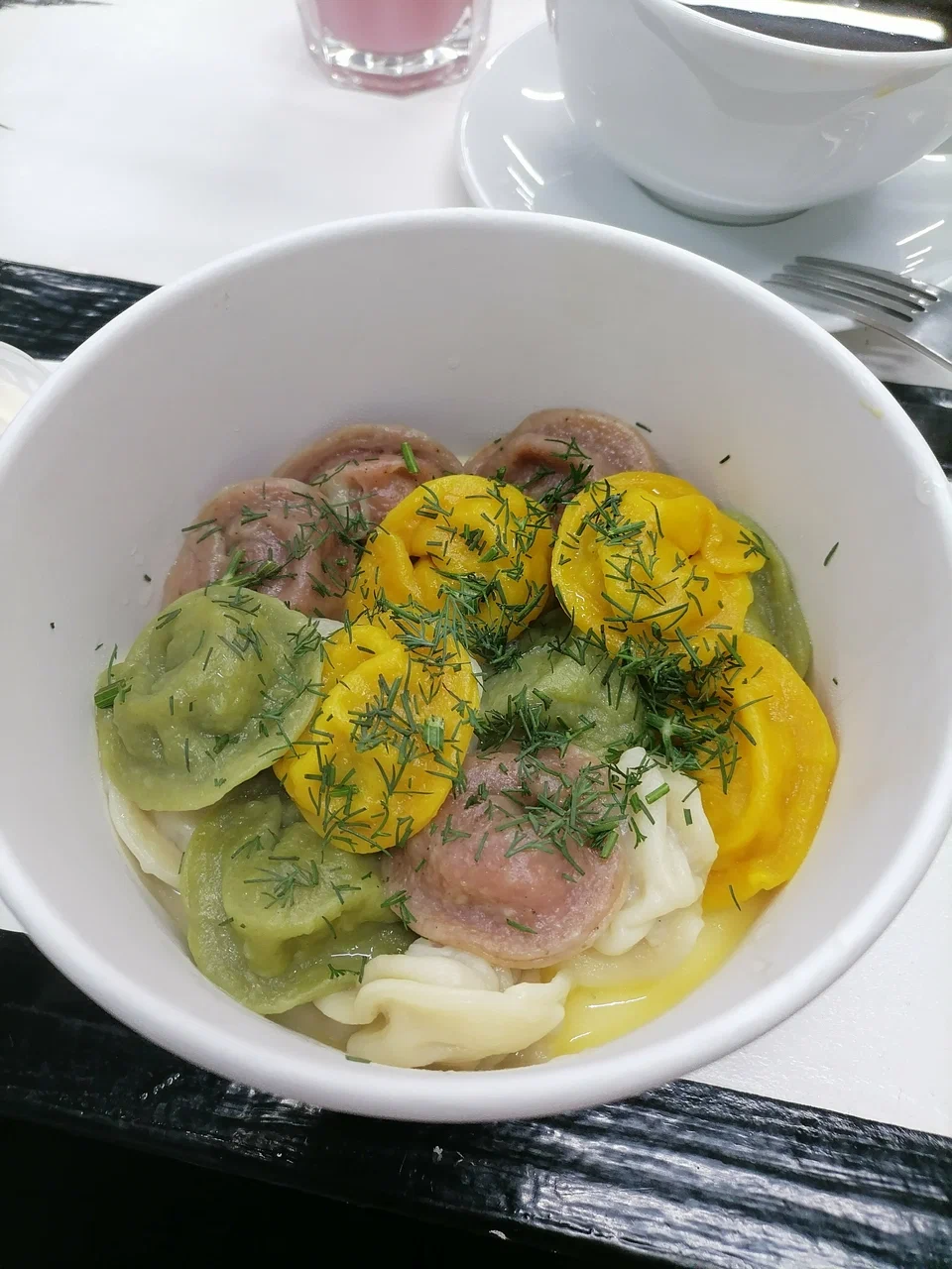 В меню — домашняя еда с акцентом на Европу. Готовят равиоли с форелью, баклажанами и цыпленком, вареники и черно-белые пельмени. Напитки интересные: маття с персиком, раф с арахисом и сырный, бамбл-кофе и крафтовые лимонады. Есть кофейная классика и китайские чаи