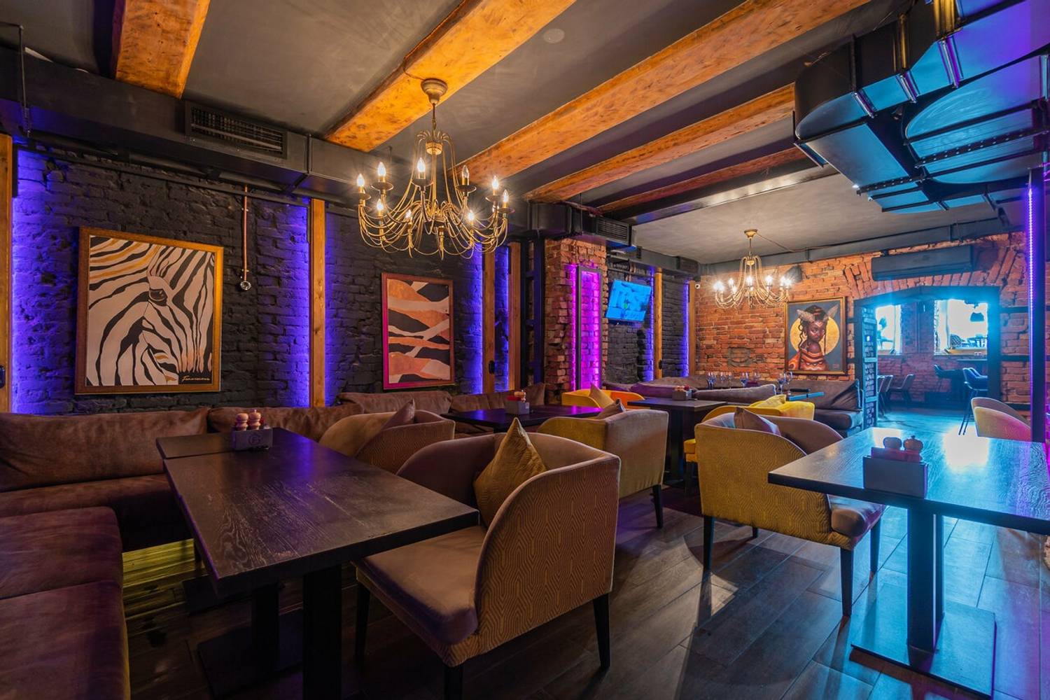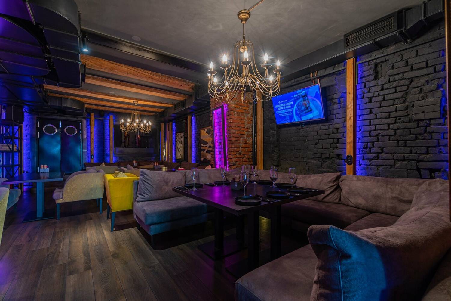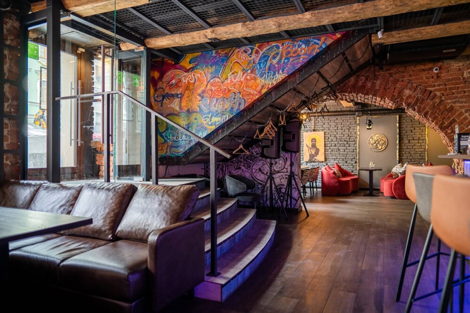 Атмосфера. В этом сетевом заведении 3 зала с кирпичными стенами и лофтовым дизайном: золотые декоративные элементы, граффити, розовые неоновые надписи и синяя барная подсветка создают. Кожаные коричневые и красные мягкие диваны и картины в стиле поп-арт формируют среду для разных сценариев — от уединенных встреч до шумных компаний.