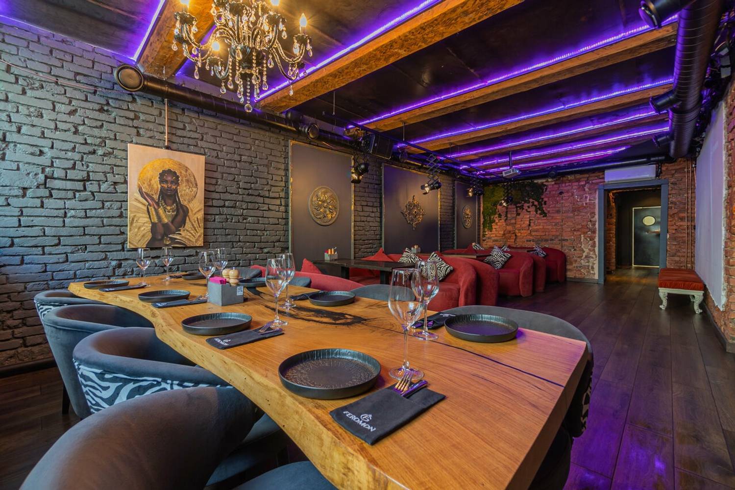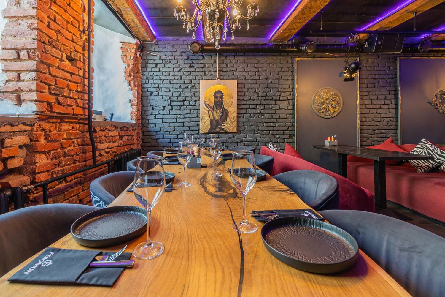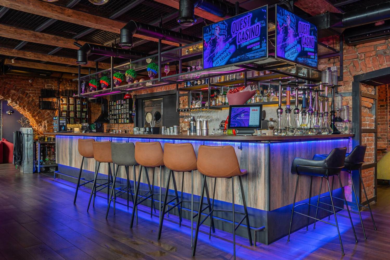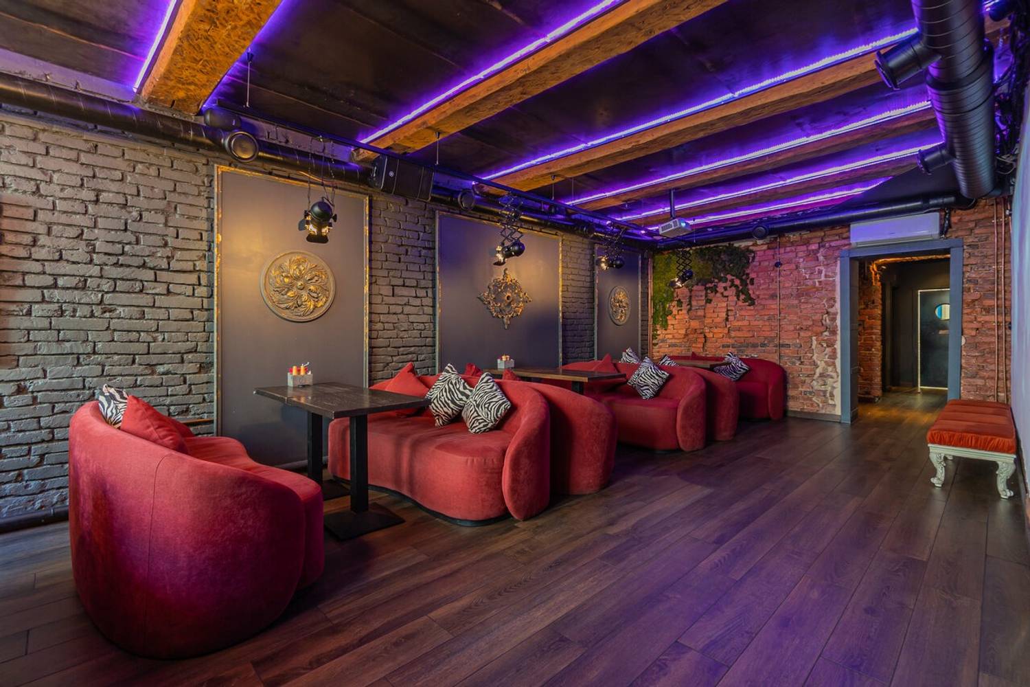 Атмосфера. В этом сетевом заведении 3 зала с кирпичными стенами и лофтовым дизайном: золотые декоративные элементы, граффити, розовые неоновые надписи и синяя барная подсветка создают. Кожаные коричневые и красные мягкие диваны и картины в стиле поп-арт формируют среду для разных сценариев — от уединенных встреч до шумных компаний.