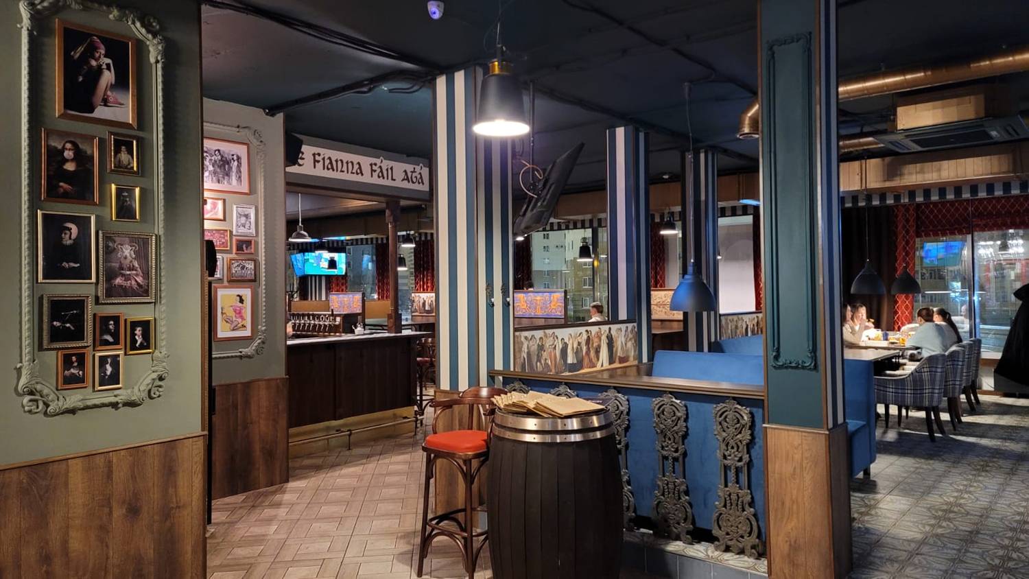 Еда и напитки. В основе барной карты — десятки сортов кранового и бутылочного пива. а также фруктовые настойки. В меню — европейские и британские блюда: дублинский коддл, свиные ребра, горячие сковородки и жареные колбаски.