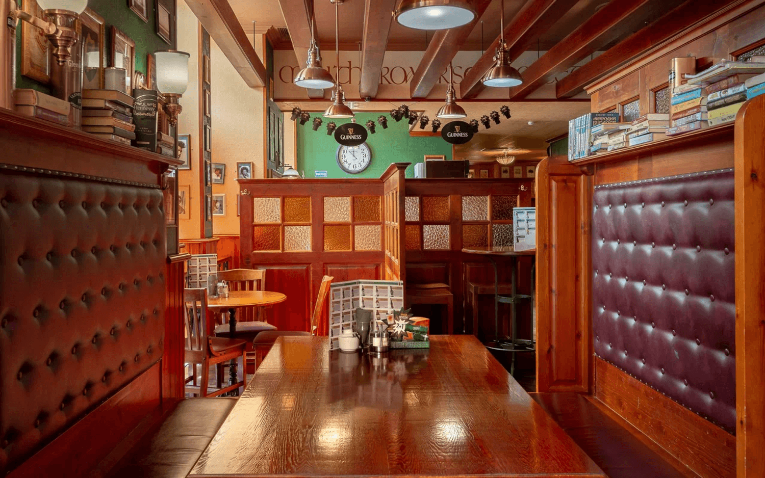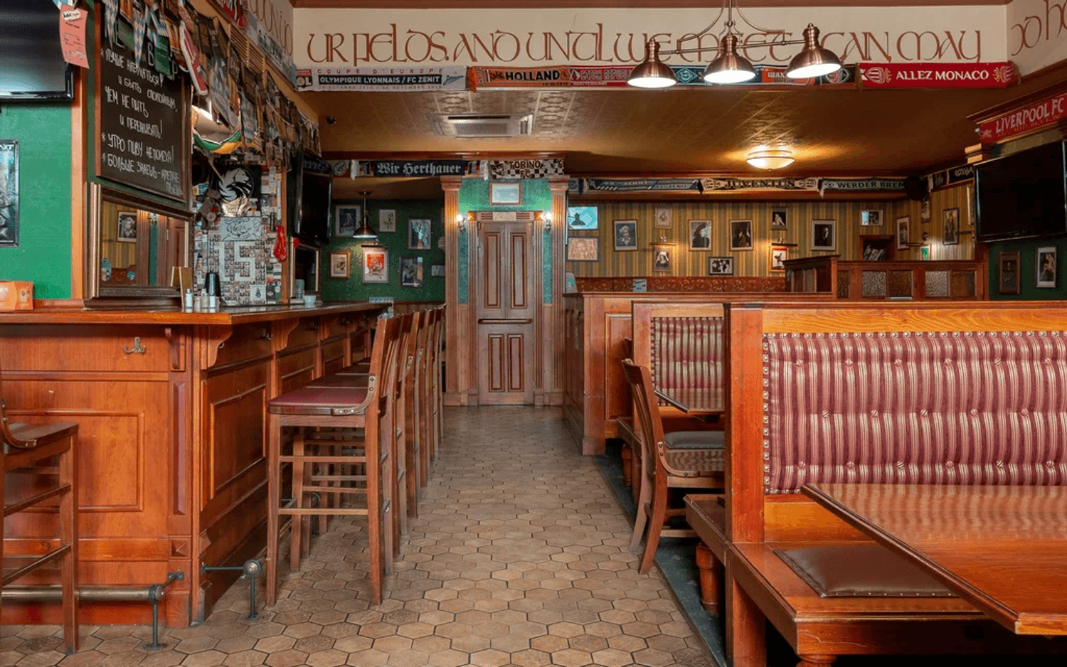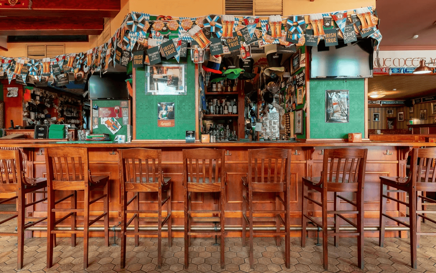 Атмосфера. Пространство с огромными витринными окнами, темным деревом и изумрудной атрибутикой будто переносит гостей в Ирландию. Здесь царит дружелюбная суета, слышны ритмы кельтской музыки, а во время спортивных матчей не стихает гул голосов болельщиков. Любители шумных компаний и веселья точно будут рады такому вечеру!