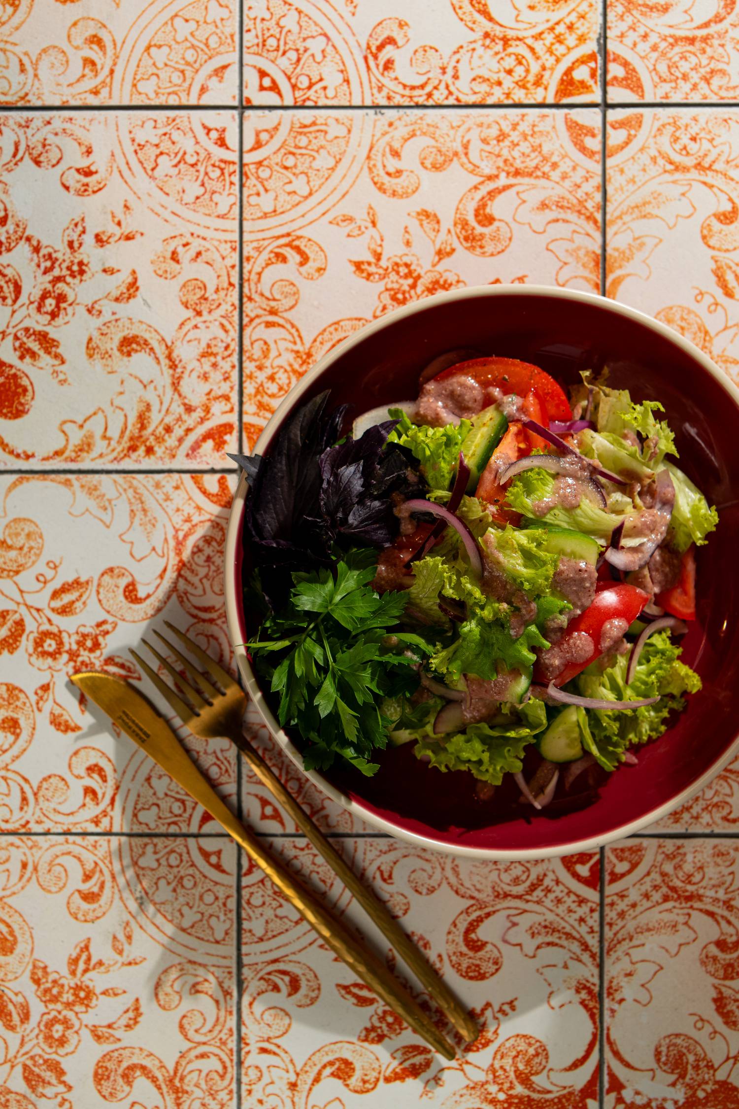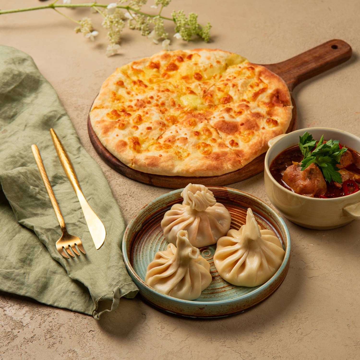 Еда и напитки. В меню — хачапури по-имеретински, по-мегрельски с зеленью и по-аджарски, а также разные виды хинкали, например, с мясом, грибами, сулугуни, вялеными томатами и креветками. Есть люля-кебабы, долма, чахохбили, плов, супы харчо и хашлама. На десерт — чурчхела, пахлава или фирменный муссовый «Лимон». К еде можно заказать домашние лимонады, травяные чаи и грузинские вина.
