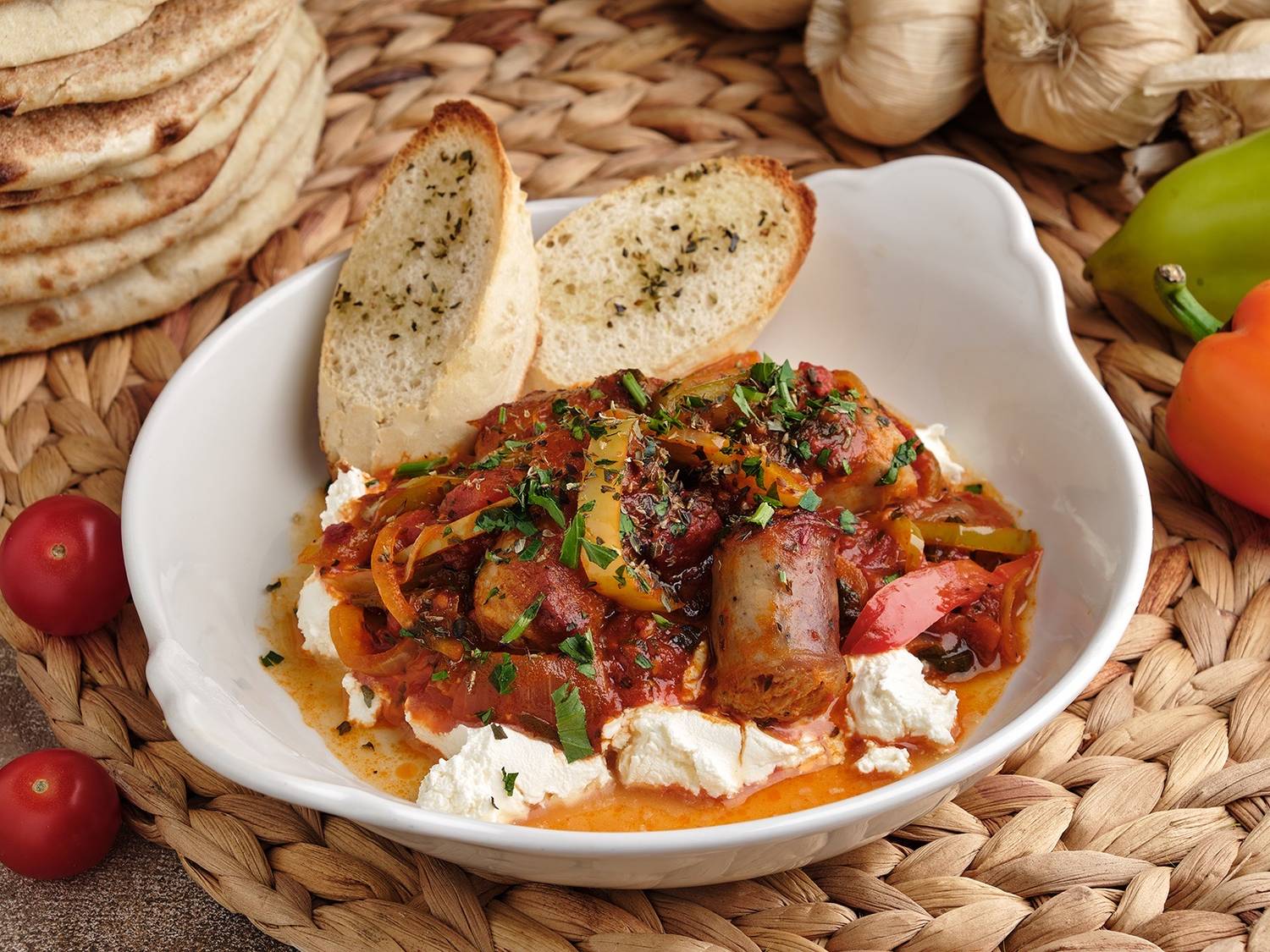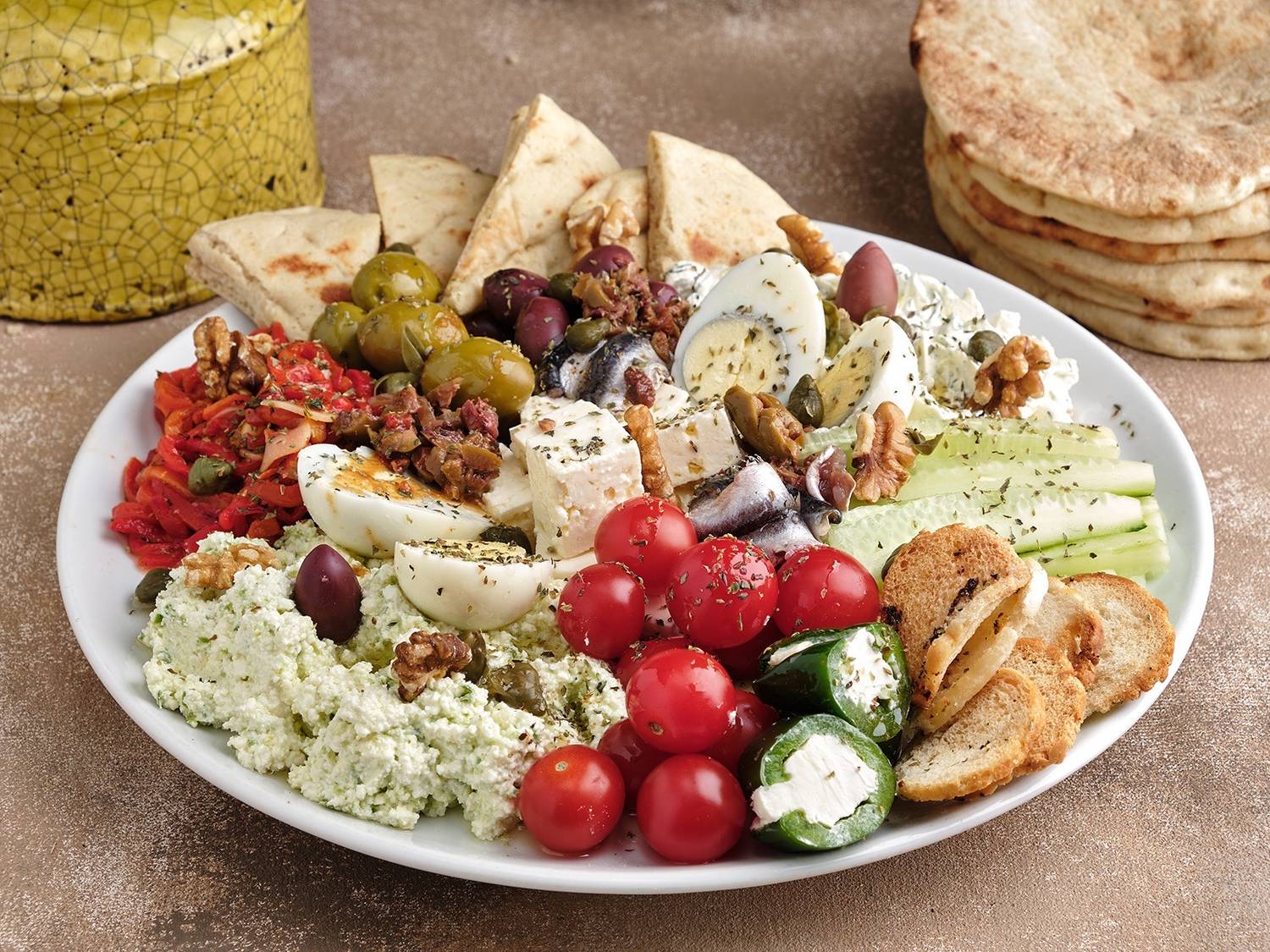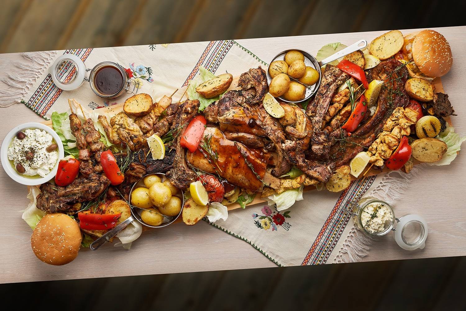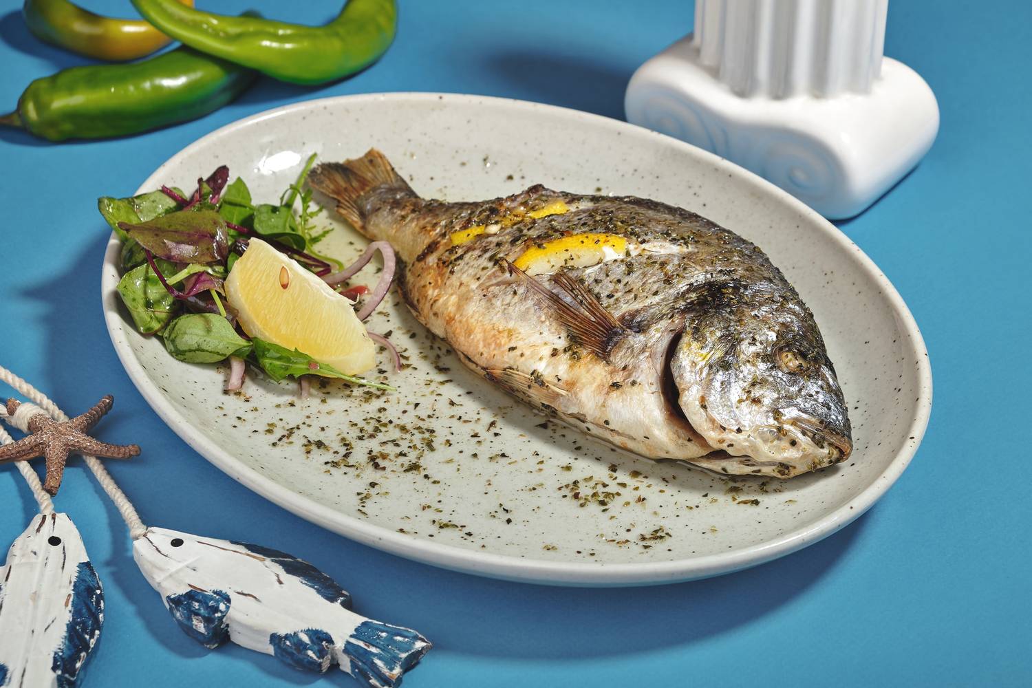 Еда и напитки. В меню — лучшие блюда греческой кухни: мезе из жареных креветок, мидий, куриных палочек, пита с фета и орегано. Из горячих блюд есть бифтеки арни, котопуло, куриная грудка по-критски с зимним соусом, судзукакья. Есть и греческие сладости: баклавас и портокалопита.