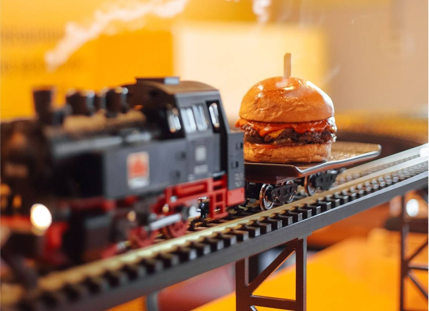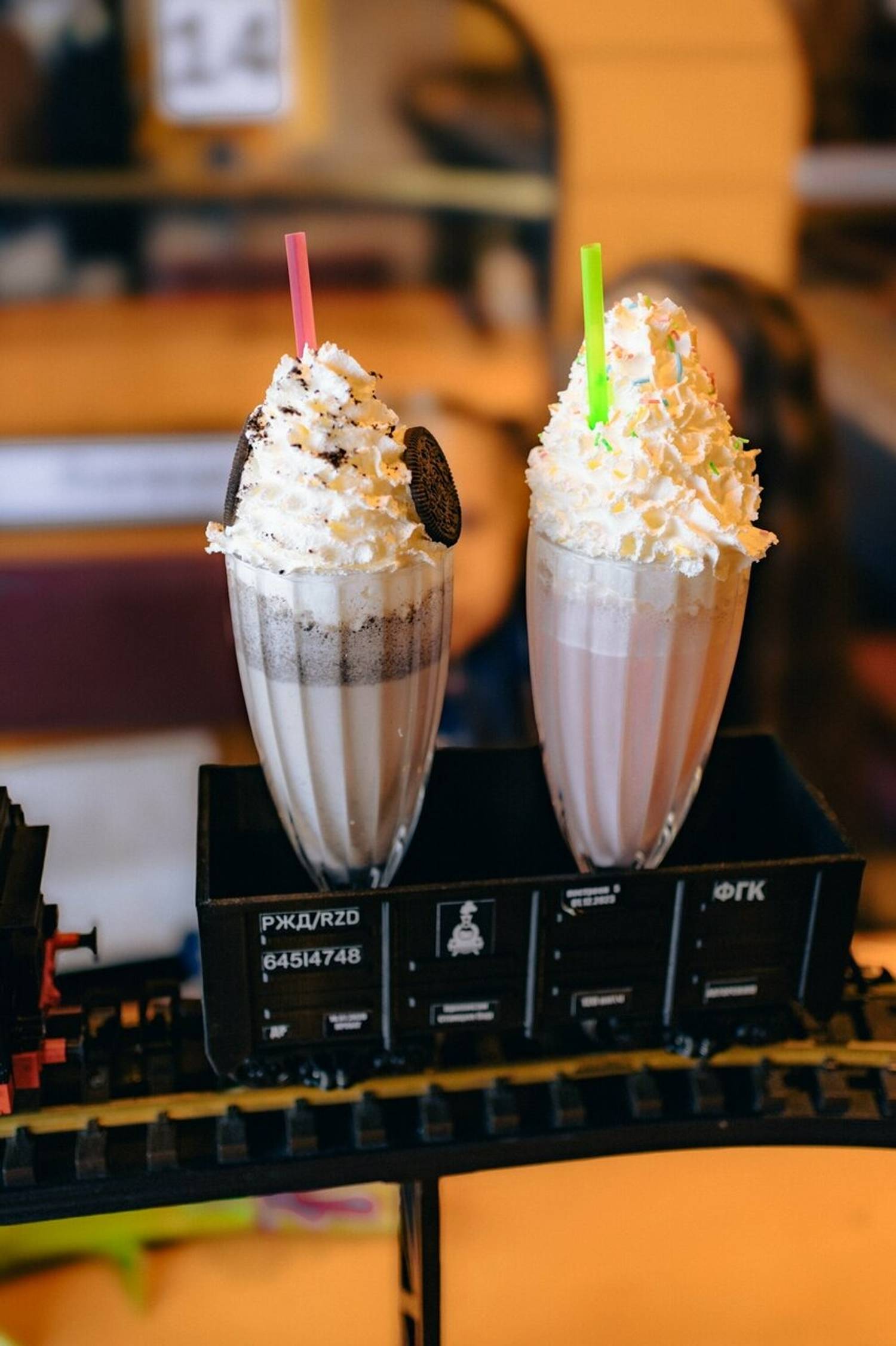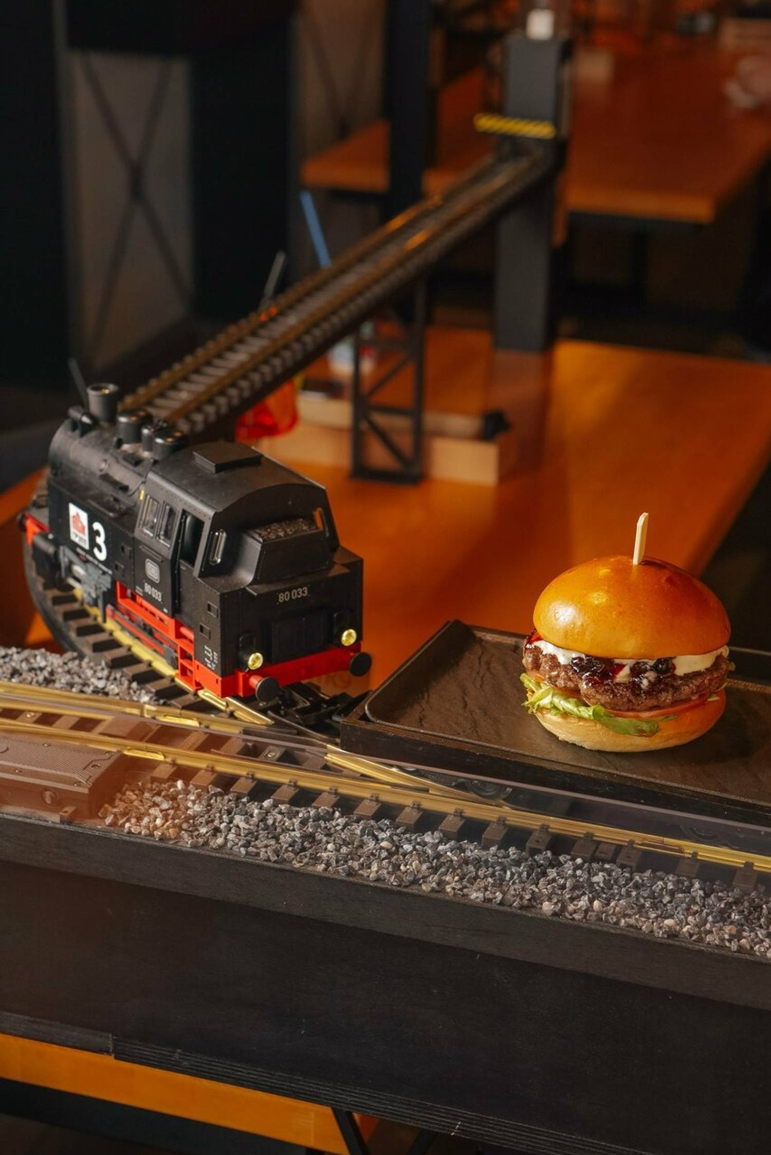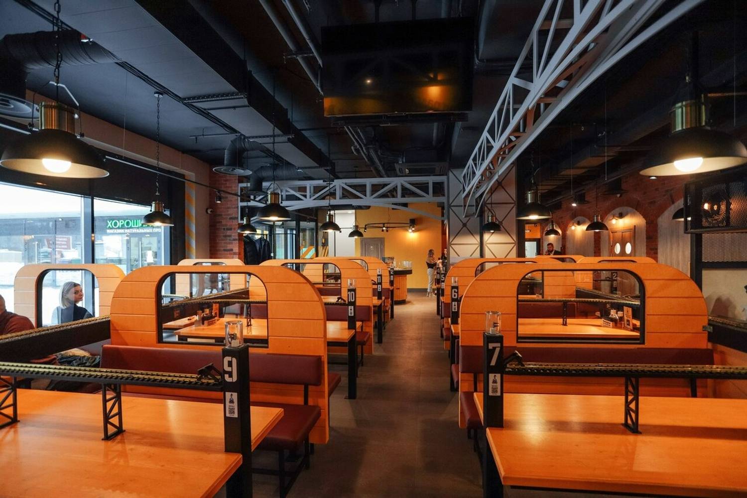 Атмосфера. Кафе стилизовано под железнодорожную станцию: миниатюрные рельсы проходят через весь зал, оранжевые цвета, стилизованные вагоны с надписью «Ленинградский экспресс». Поезда проезжают мимо мини-версий достопримечательностей Санкт-Петербурга — Балтийского вокзала, Петропавловской крепости и маяка Толбухина.