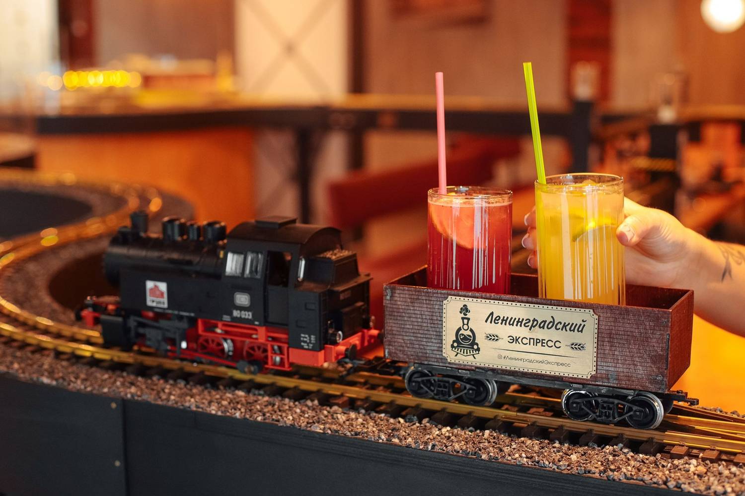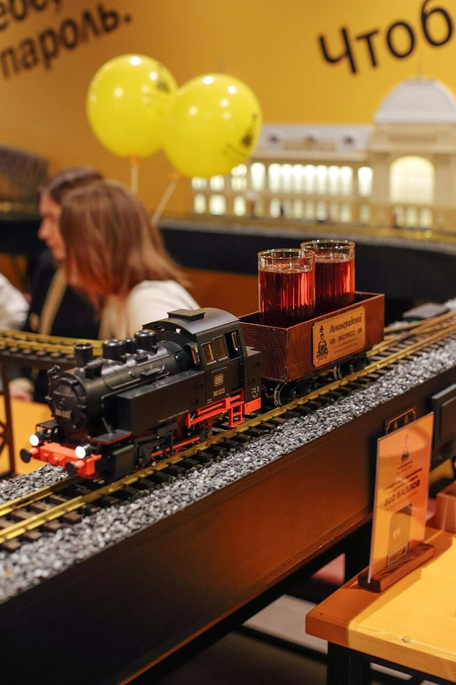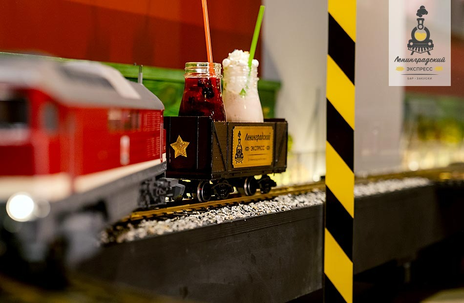 «Ленинградский экспресс» по адресу пр. Малый В.О., 54к2 — семейное кафе на Васильевском острове, где заказы приезжают прямо за столик на фирменном поезде.