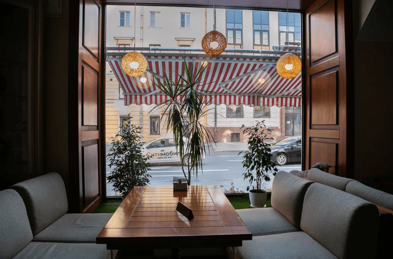 Еда и напитки. В меню представлены классические блюда кавказской кухни, приготовленные с соблюдением традиционных рецептов: шашлыки из баранины, ягненка и телятины, люля-кебаб на мангале, хачапури и хинкали. Барная карта включает грузинские вина и крепкие напитки.
