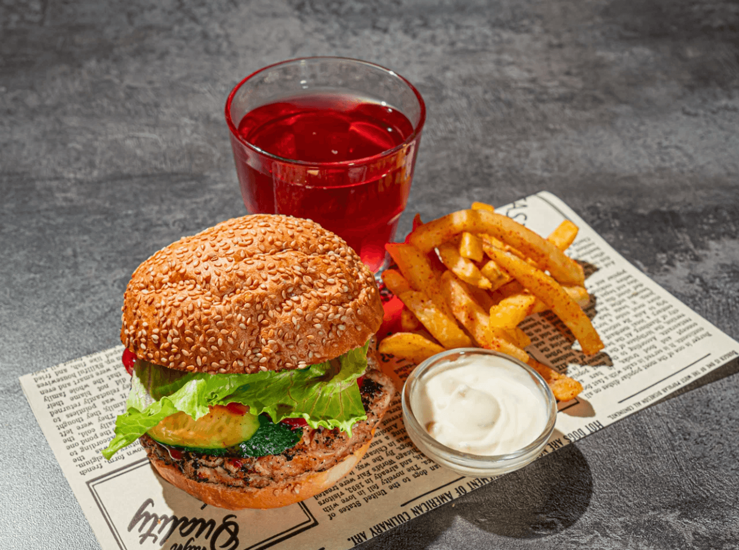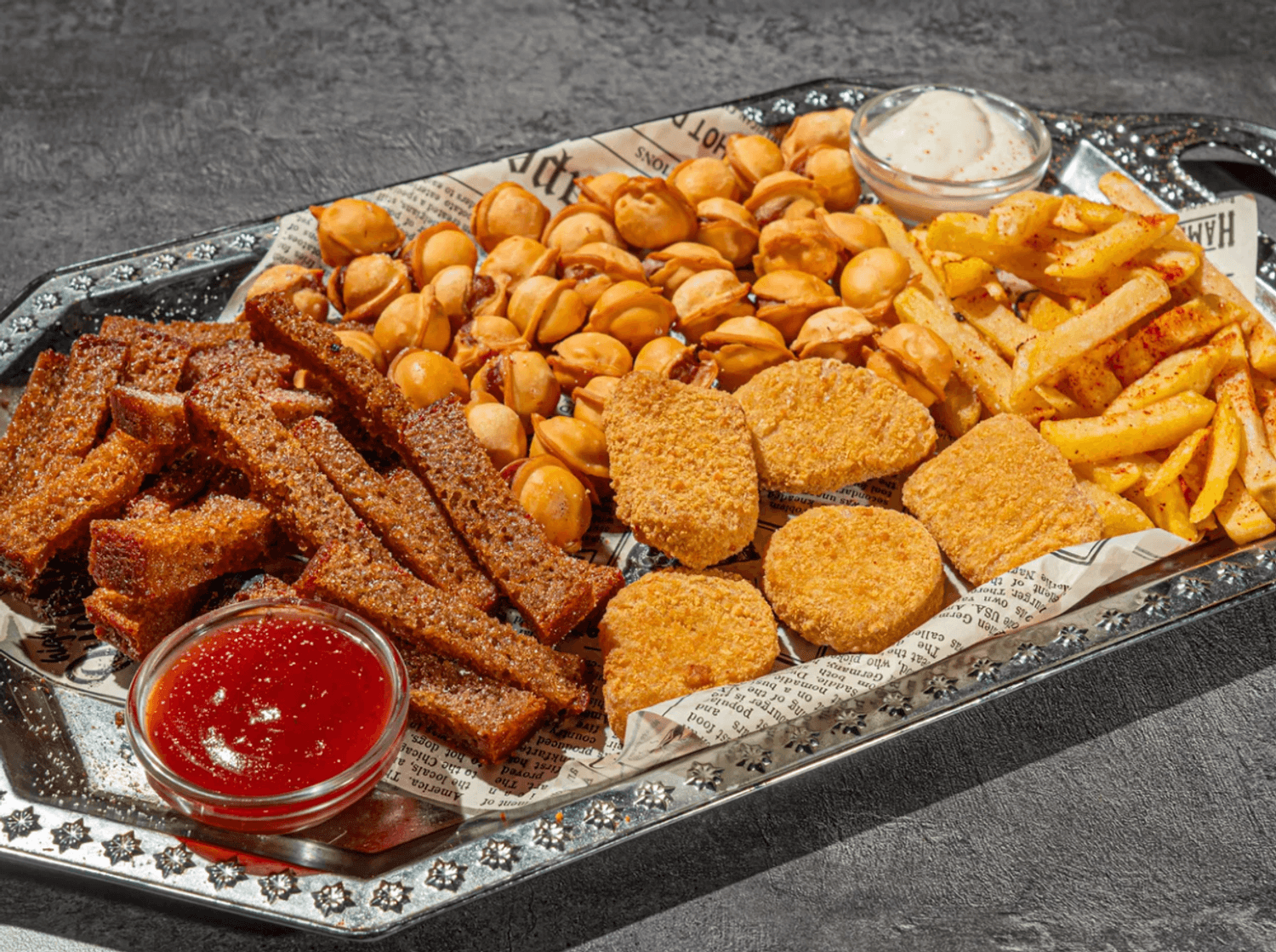 Еда и напитки. В меню представлены разнообразные сбалансированные закуски, специально подобранные к напиткам: от сырных тарелок и мясных нарезок до авторских закусок (например, «Любимые крылышки Сатаны»). Помимо этого готовят салаты, мясо на углях, шаурму и бургеры. Барная карта включает крафтовое пиво, классические и сезонные коктейли, а также разнообразные дистилляты.