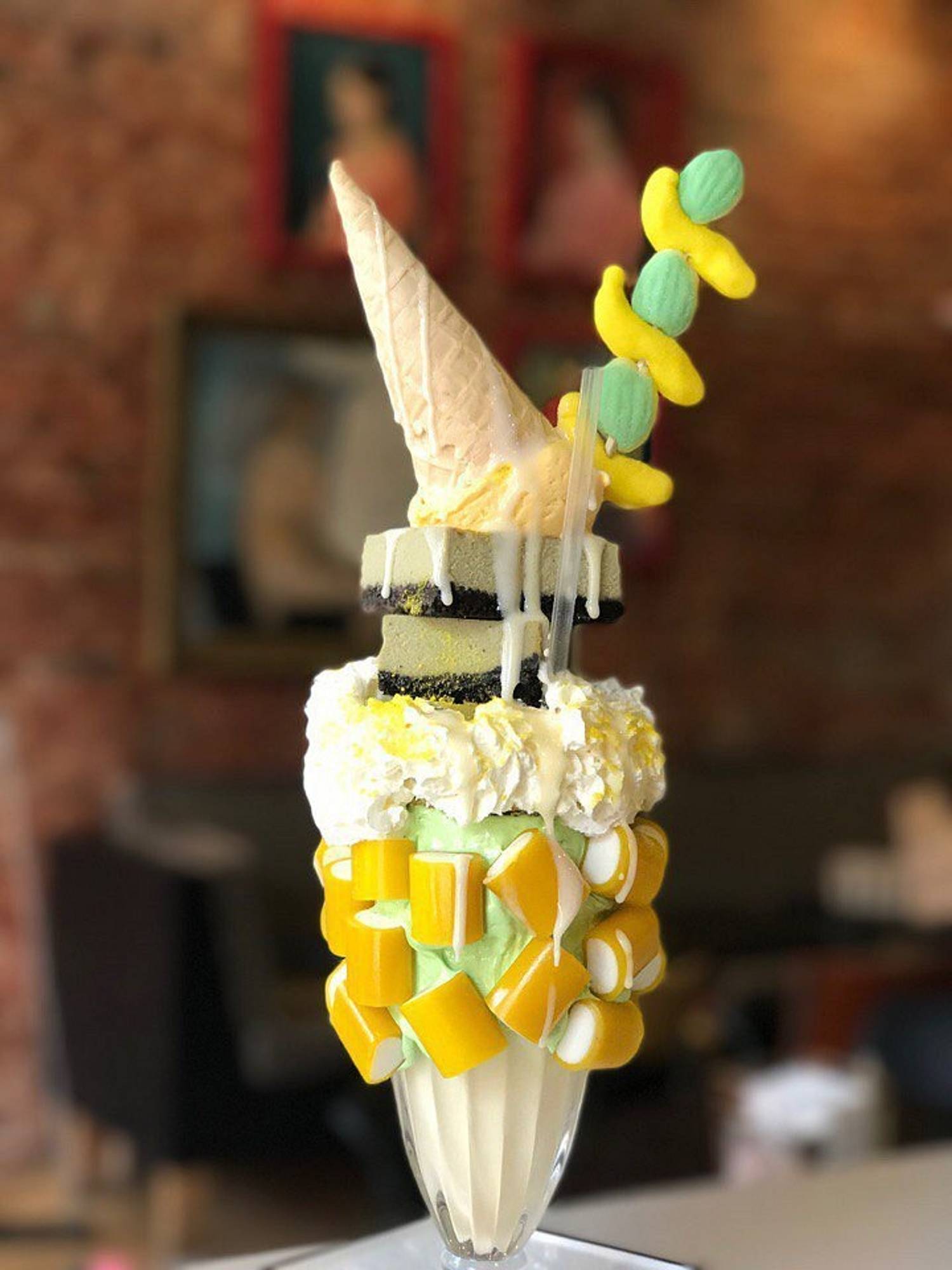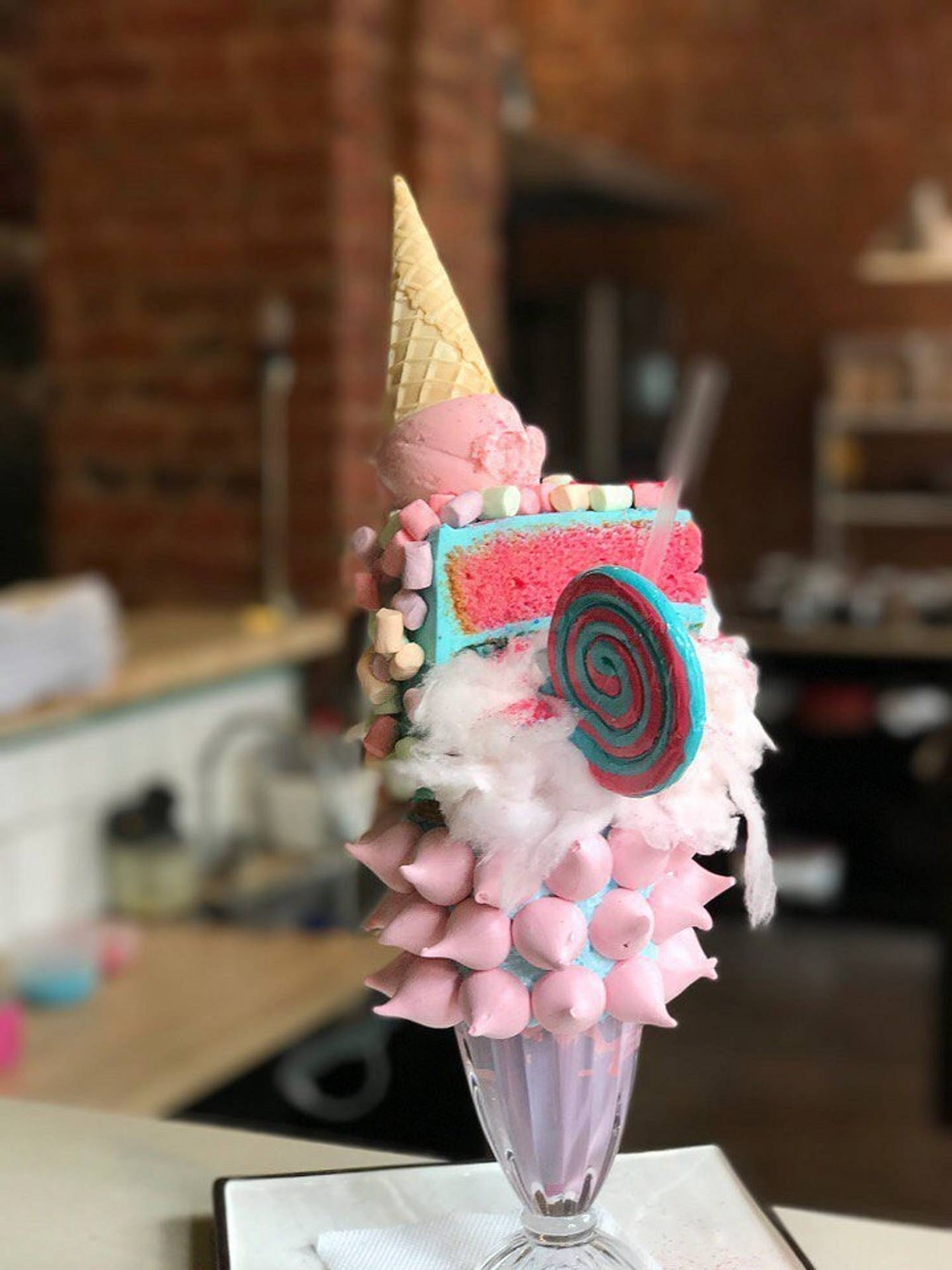 Еда и напитки. В меню — множество необычных позиций итальянской и американской кухонь: панкейки, тальятелле с грибным жюльеном, утиная ножка конфи и ромейн тоннато. Главный хит ресторана — гигантские овершейки с мармеладом, вафлями, мороженым, сахарной ватой и необычными фигурками. Такие десерты мгновенно приковывают внимание посетителей с соседних столиков и точно вызовут зависть у ваших друзей.