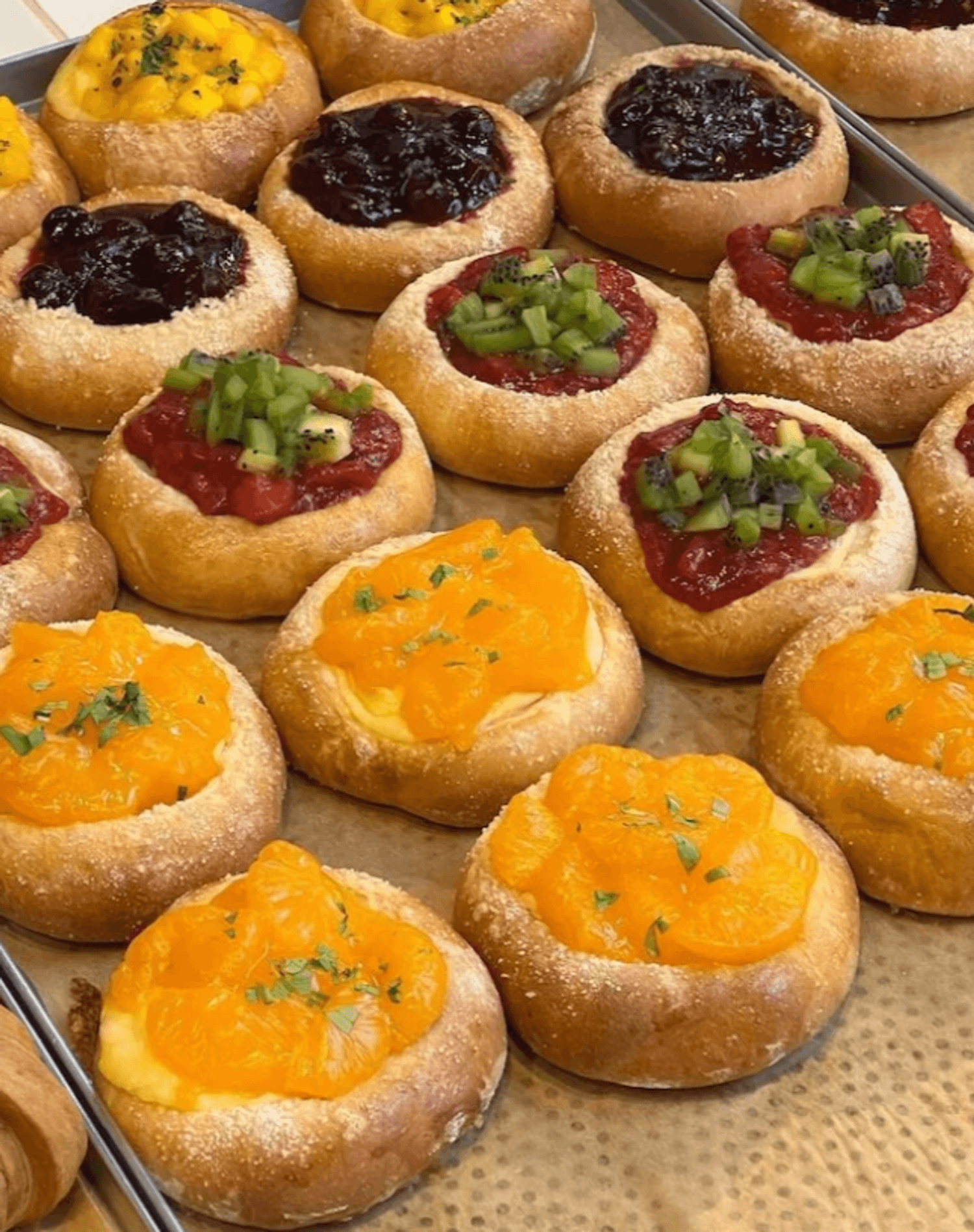 Еда и напитки. Меню построено вокруг свежей выпечки и завтраков: ватрушки с заварным кремом, яблоком, лимонным курдом или мисо-карамелью, классические и авторские круассаны, тартины, панкейки карбонара, бенедикт с лососем, скрембл с креветками. Есть также севиче, тартары и кофе спешелти — эспрессо, капучино, раф с тыквой и авторские вариации.