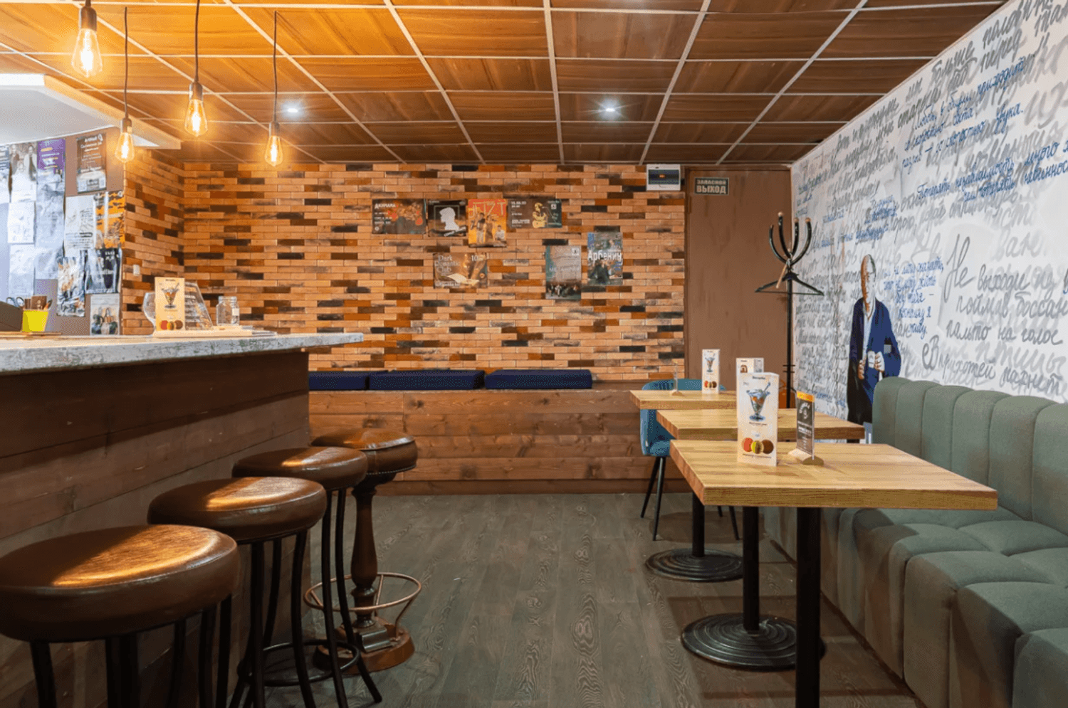 Еда и напитки. В меню — основной акцент на кофейной карте и напитках: от классического американо до горячих коктейлей баунти или сникерс. Из блюд готовят пиццу том ям, колбаски с зеленью, грелату с курицей и сыром, а на десерт брусничный торт.