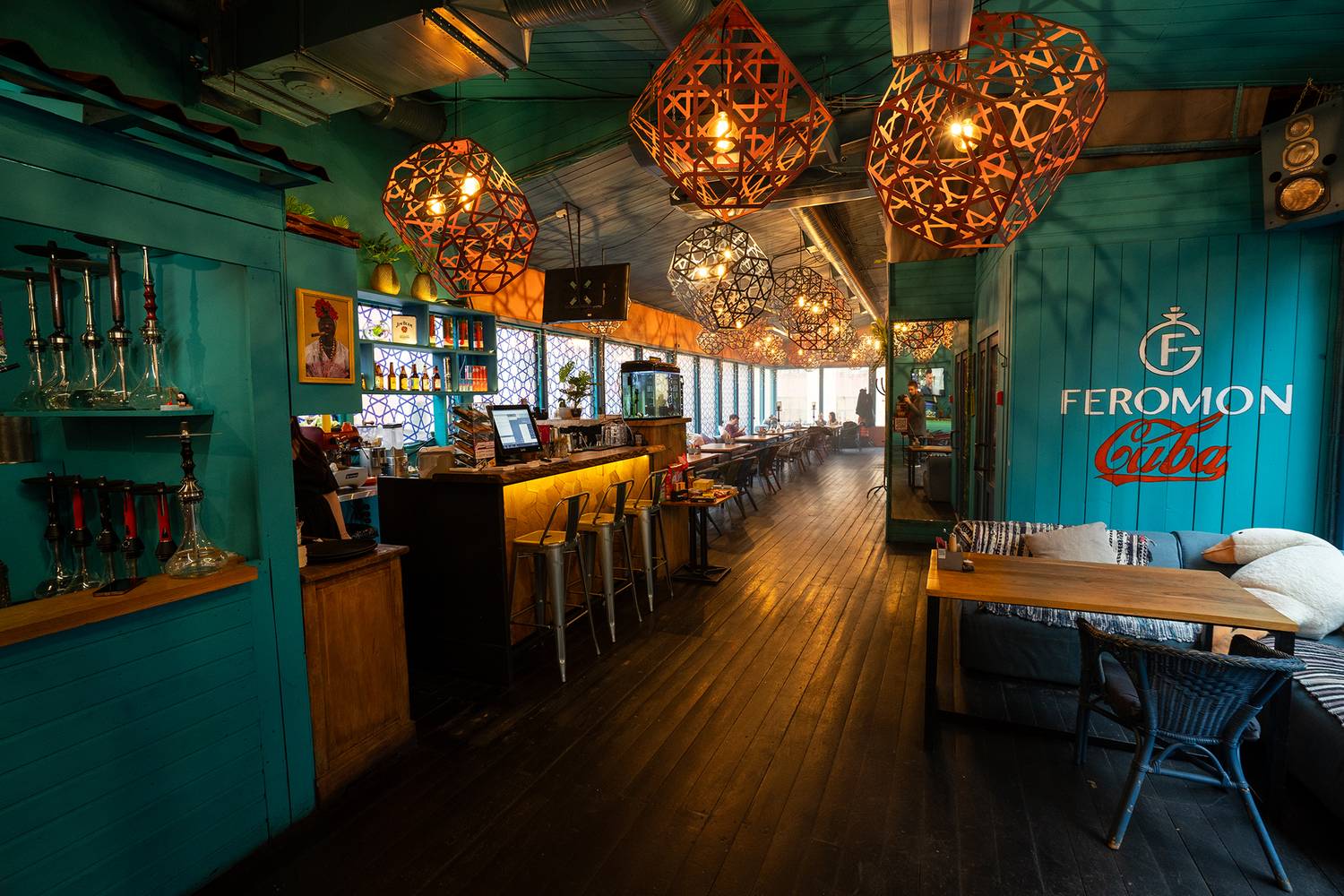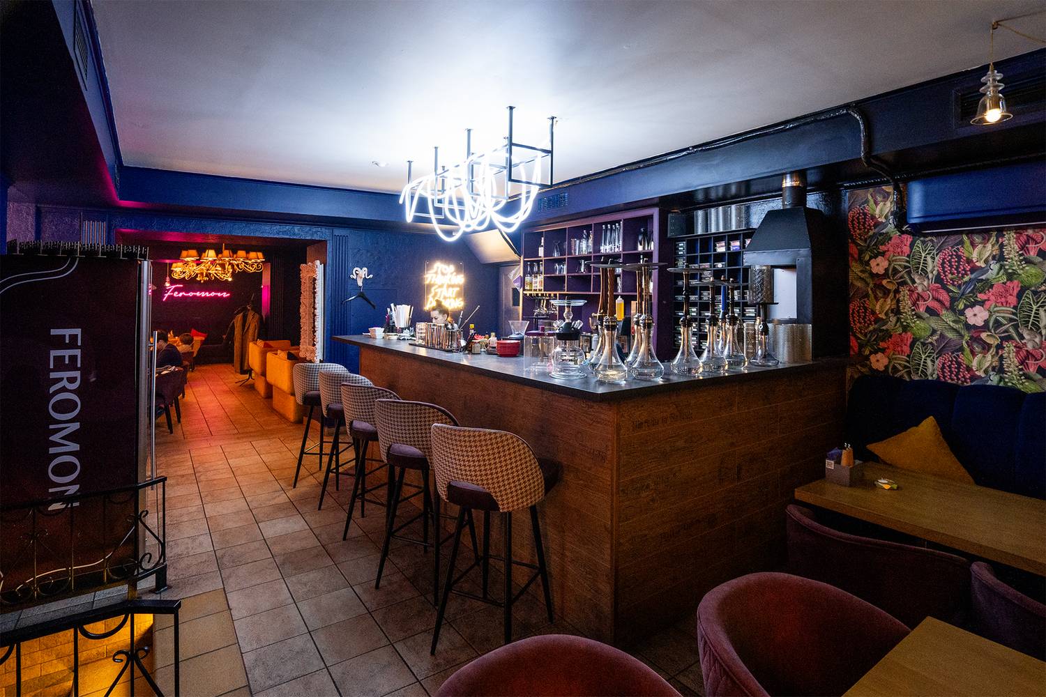 «Feromon» по адресу ул. 8-я Советская, 4А — лаунж-кальянная в кубинском стиле.